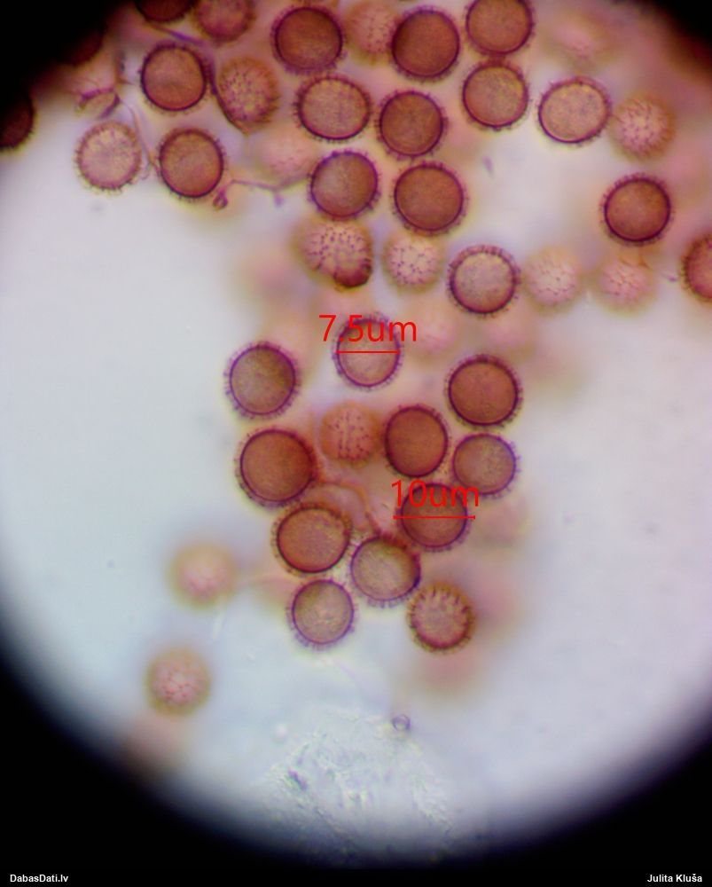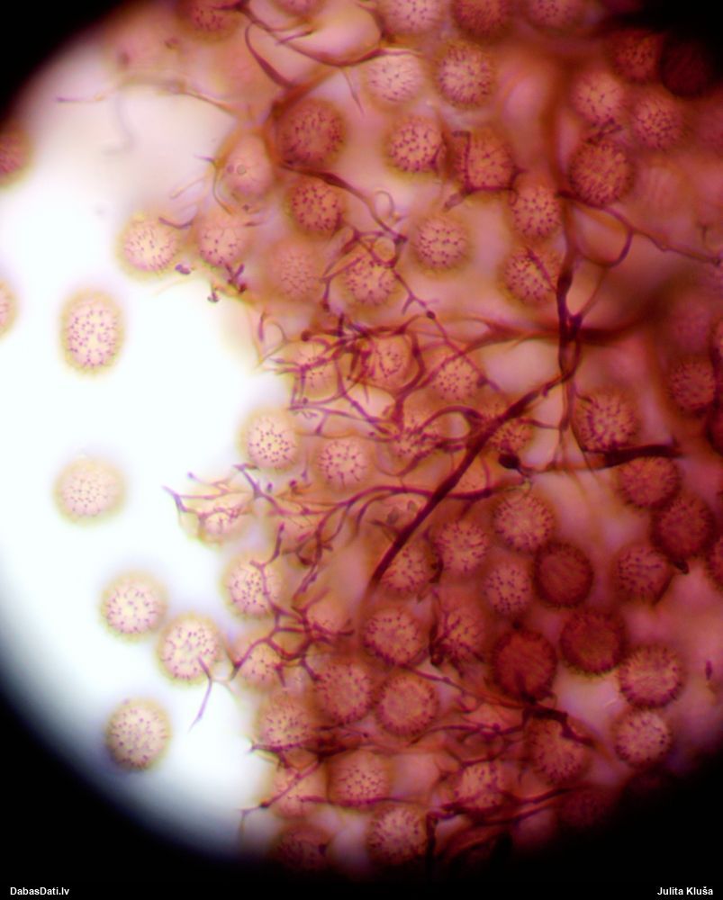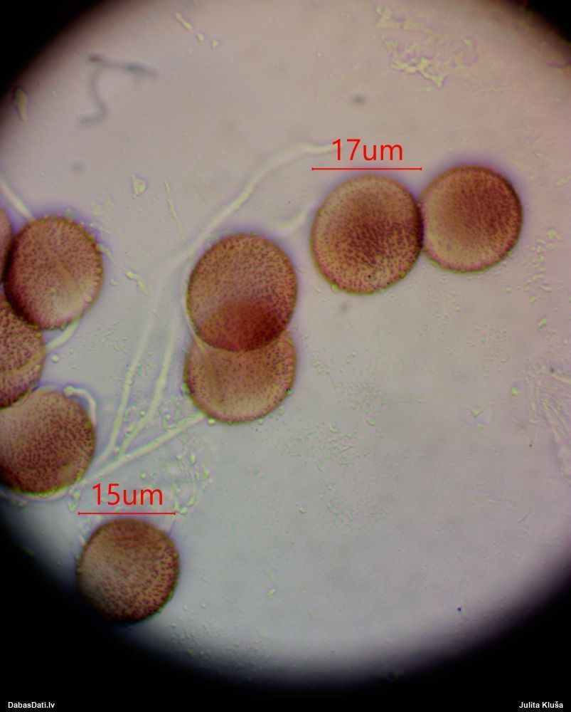 Jā, tā vajadzētu būt. Izdevās arī izķidāt kolumellu, tikai bildes gan nav diez cik veiksmīgas. Man liekas, ka nav īsti pareizi attīstījies, jo ir daudz ļoti gaišu sporu, kam arī kārpas, šķiet, nav noformējušās. Iespējams, tāpēc arī ir tās tumšās - pietrūcis kaļķa..