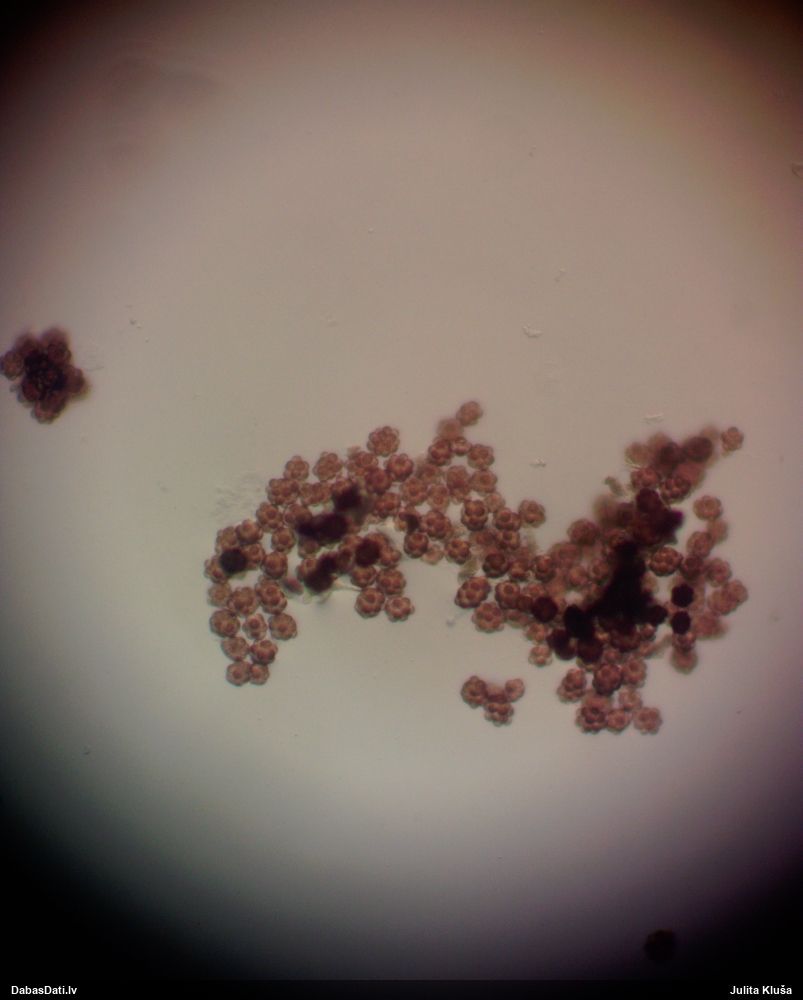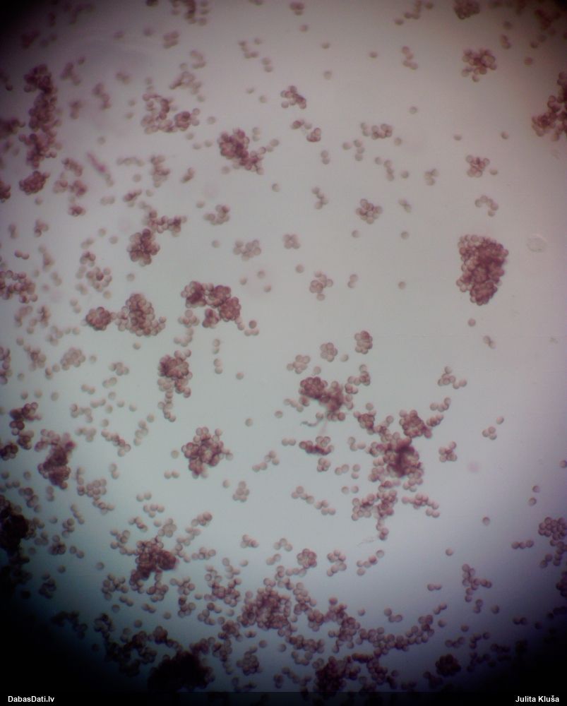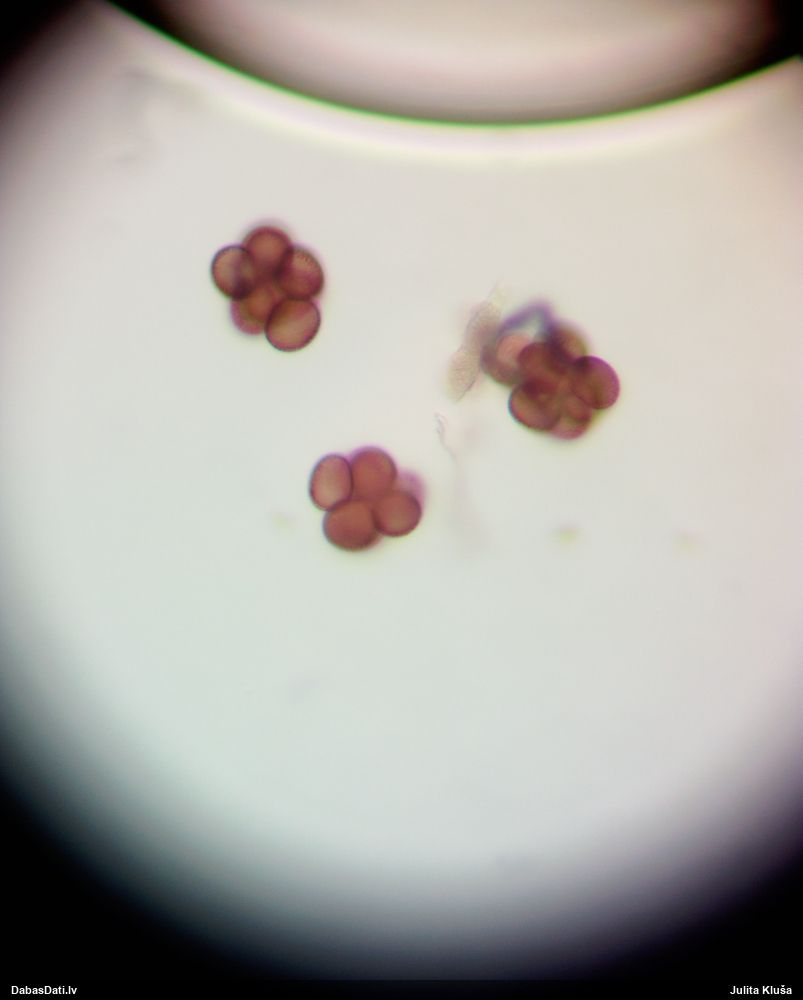 Vai sporu mākonis bija staipīgs? (tā vajadzētu būt režģa gļotsēnei) Foto vairāk līdzinās kādai no pilienītēm.