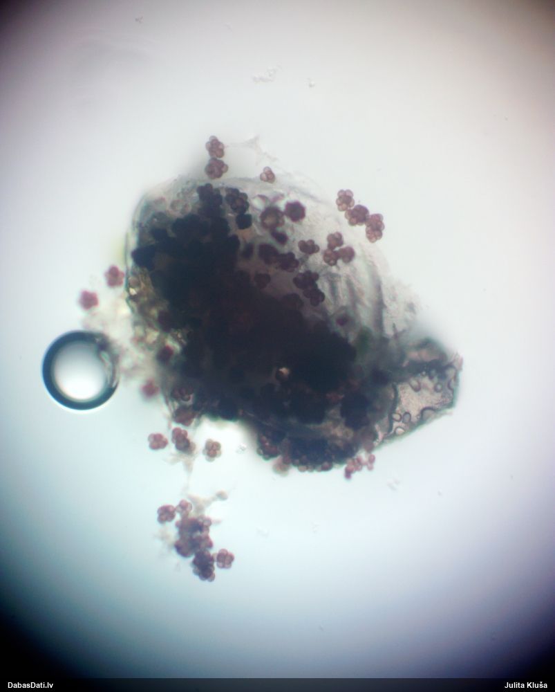Iveta, jā, ievācot man bija tāda doma, bet tur ir arī sporas, kas nav gļotsēņu. Protams, var būt nesaistīti. Doma bija, ka arī ir fragmentētais gļotpūpēdis. Var jau būt, ka ir..