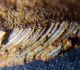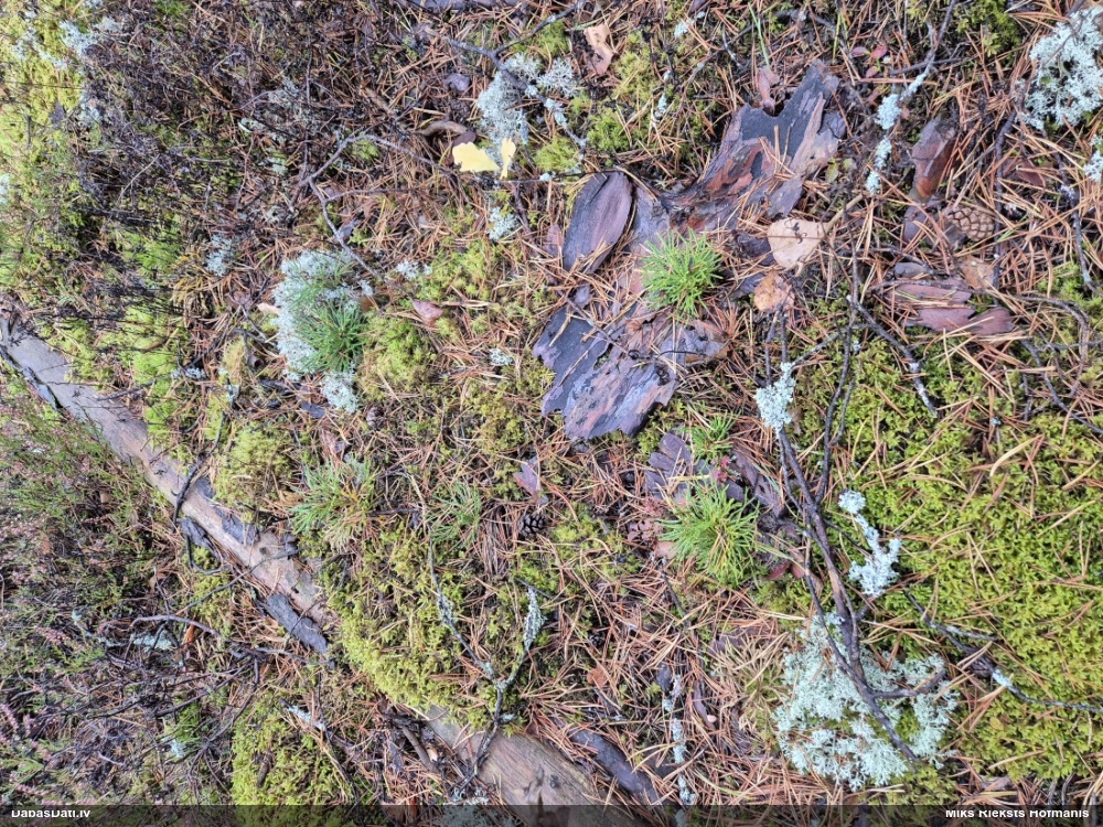 Uz trupējuša koka, pa daļai smiltīs kāpās. Piekopoju bildi. Sākumā pagāju garām, likās mandarīna miza.