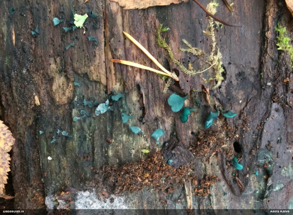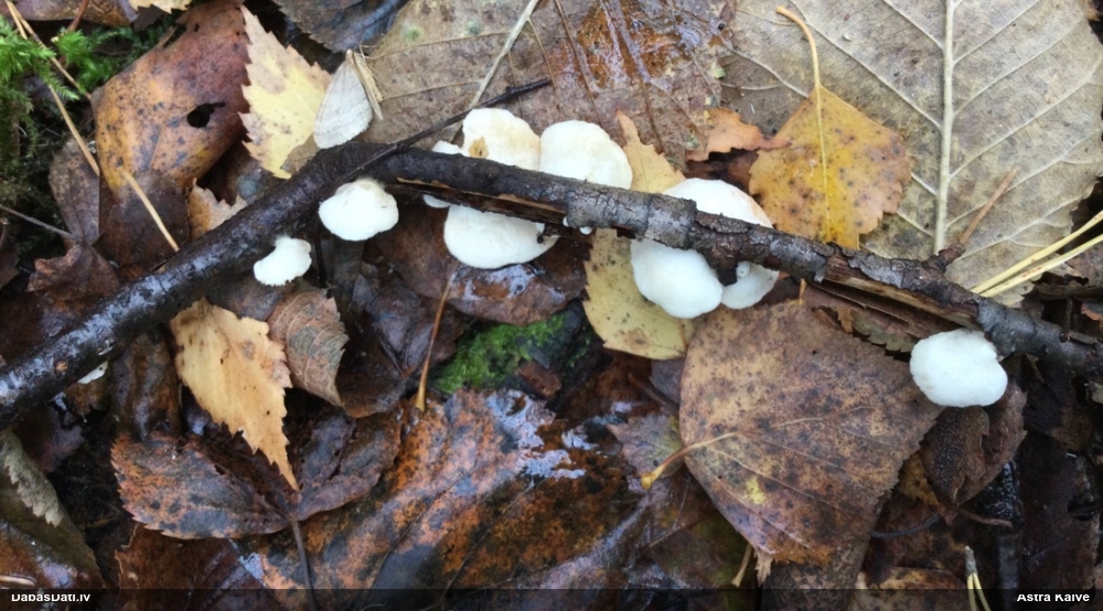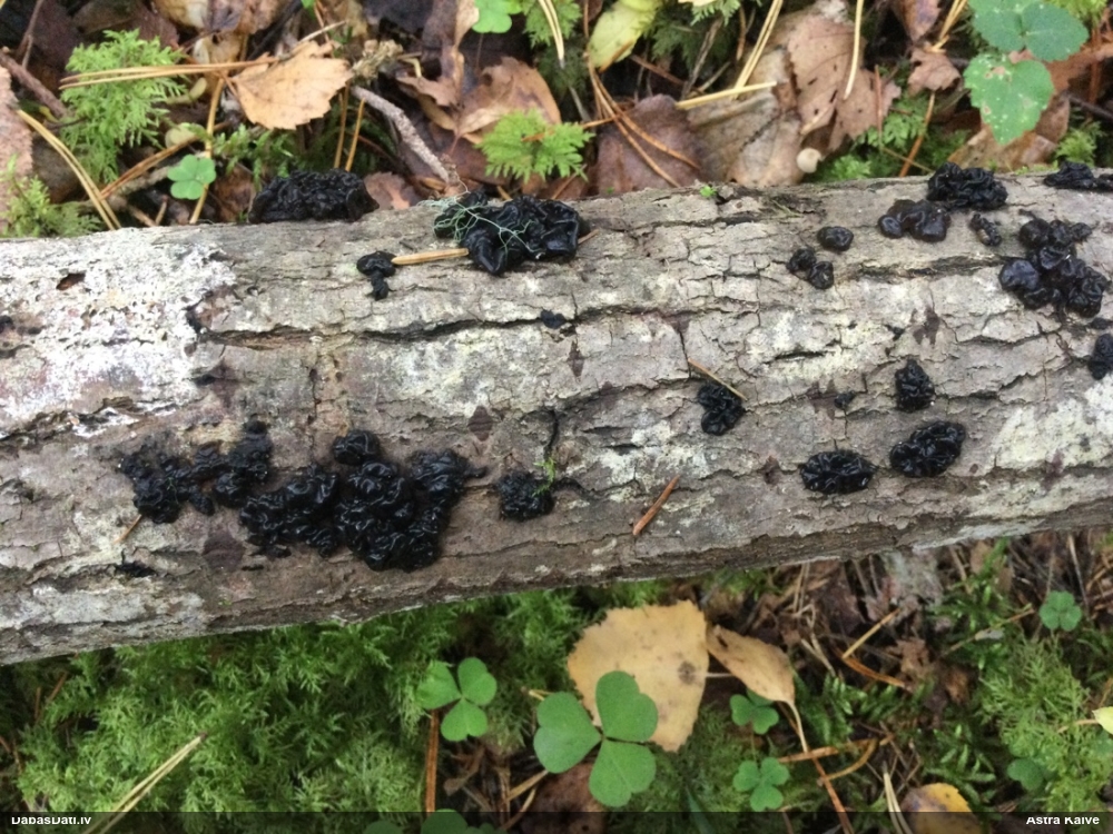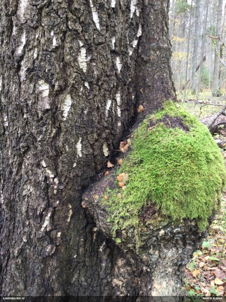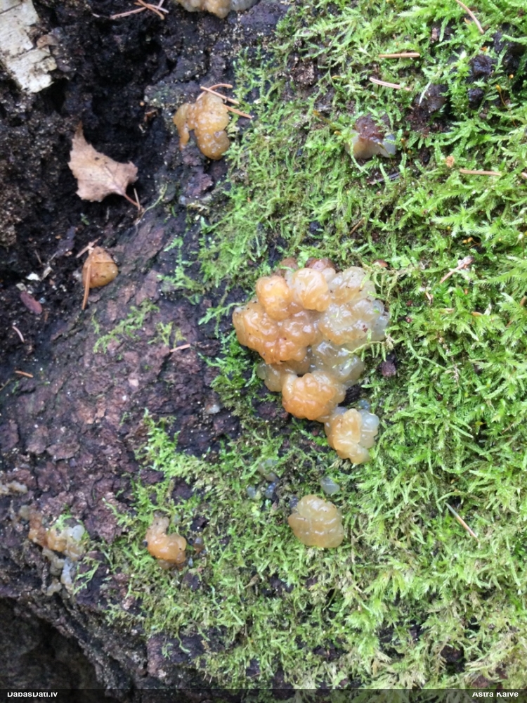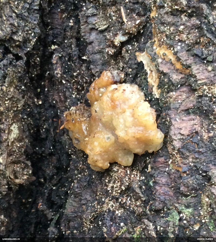 Nevar saprast, uz kā auga - vai tas ir nobirās, vai uz kritalas mizas? Abas hipotēzes ir "pa tēmu", bet man "nepatīk" kopskats, kur skaidri redzams, ka vairāki augļķermeņi ir cieši kopā, bet tas nav raksturīgs ne vienai, ne otrai hipotēzei, kur augļķermeņi tipiski ir nodalīti. Ļoti interesanti, ja ir paraugs, tad kāds tas izskatās tagad, un vispār to vajadzētu mikroskopēt.