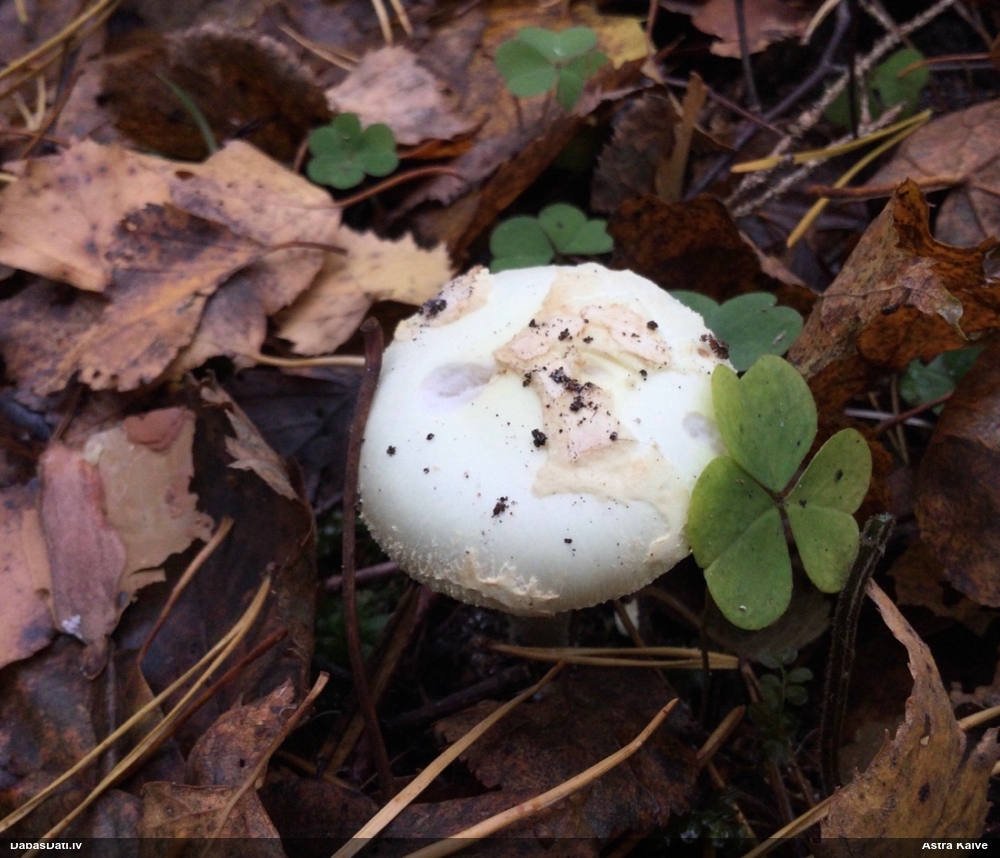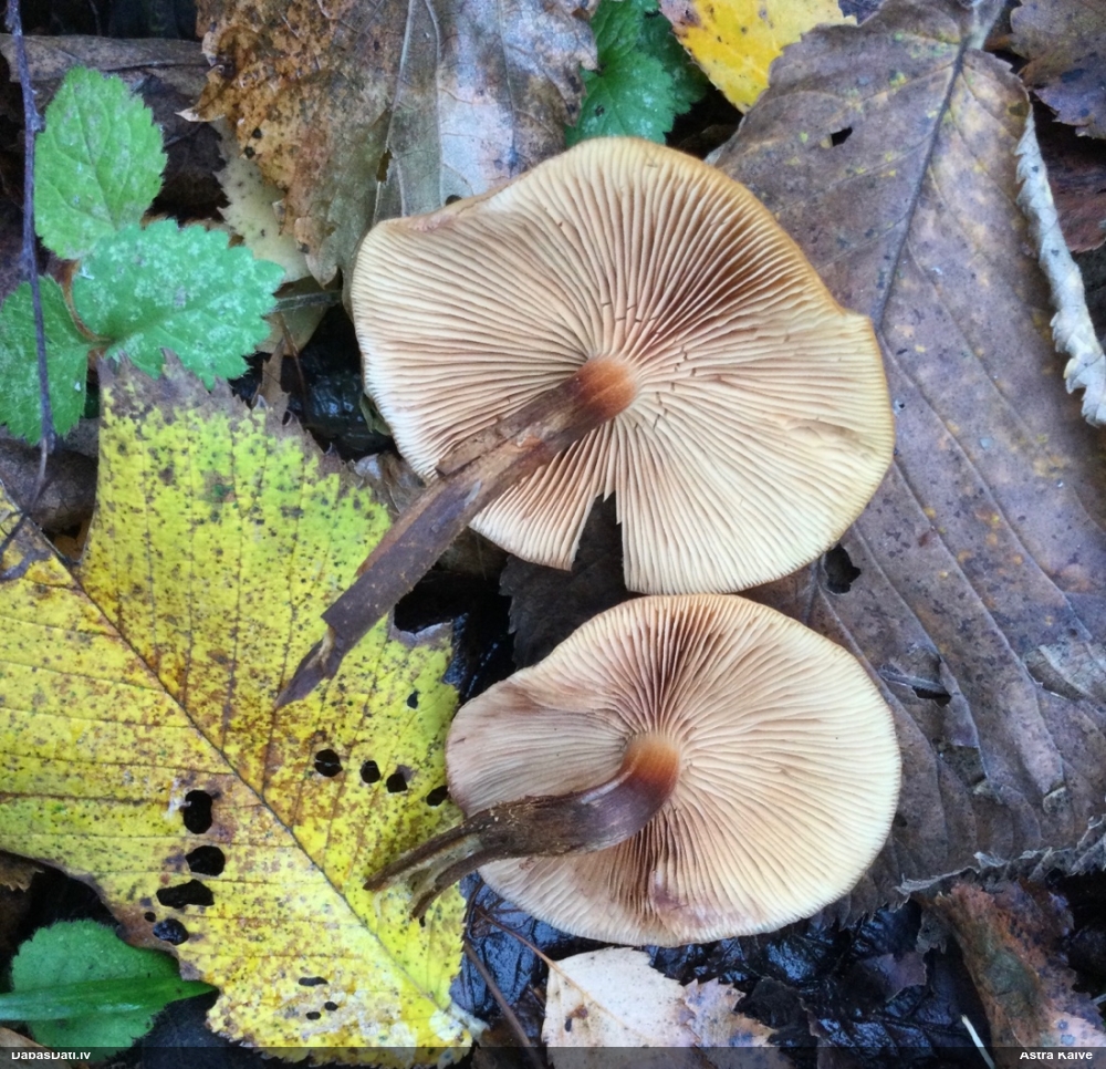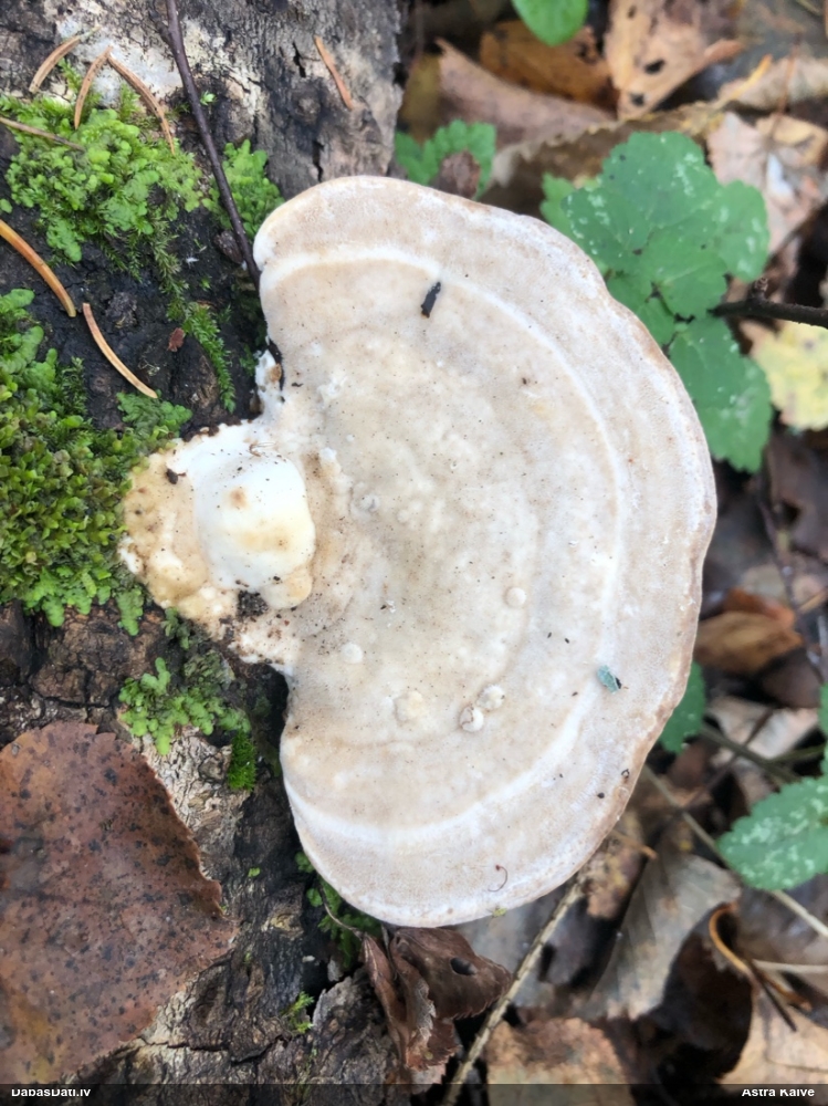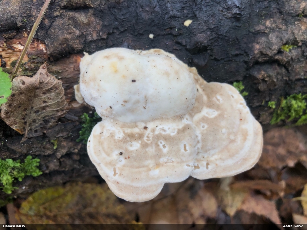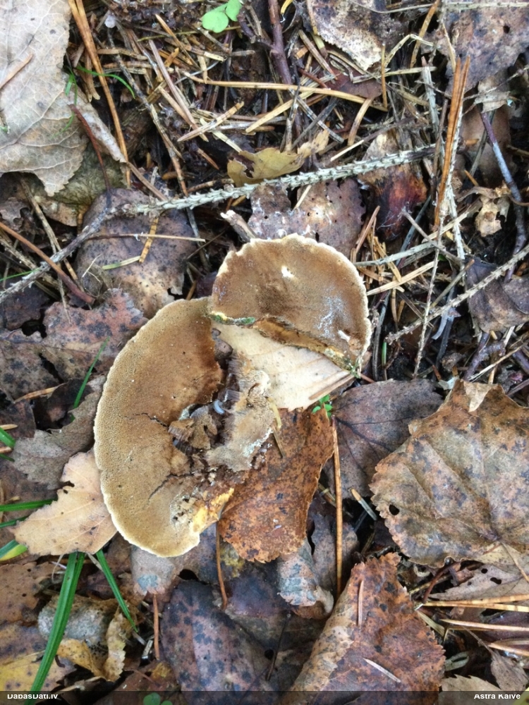 Nevar saprast, uz kā auga - vai tas ir nobirās, vai uz kritalas mizas? Abas hipotēzes ir "pa tēmu", bet man "nepatīk" kopskats, kur skaidri redzams, ka vairāki augļķermeņi ir cieši kopā, bet tas nav raksturīgs ne vienai, ne otrai hipotēzei, kur augļķermeņi tipiski ir nodalīti. Ļoti interesanti, ja ir paraugs, tad kāds tas izskatās tagad, un vispār to vajadzētu mikroskopēt.