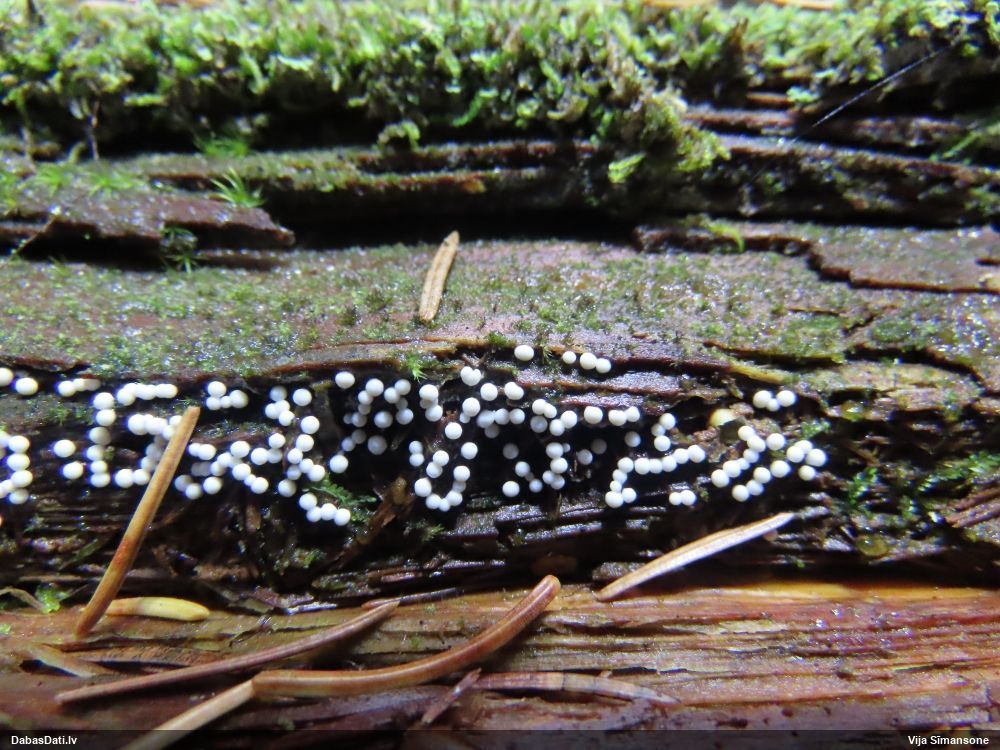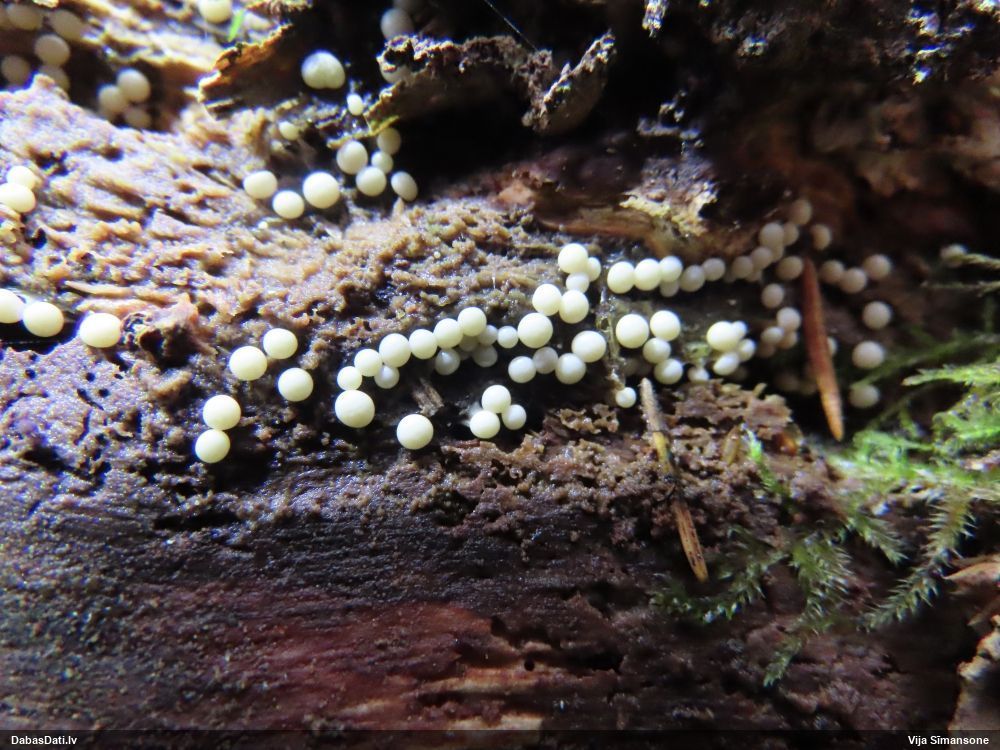Skatoties uz nelīdzeno virsmu, var būt grubuļainais Fuligo luteonitens, bet droši to varētu pateikt mikroskopijā pēc sporām