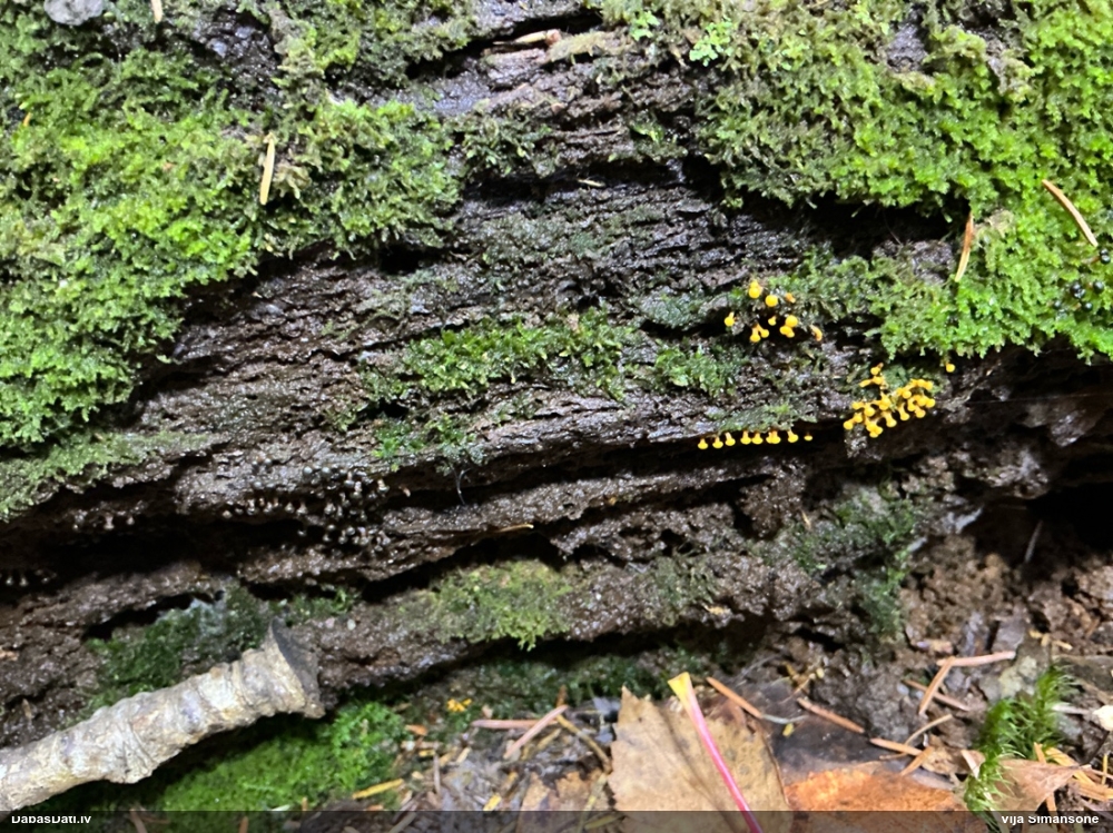 Skatoties uz nelīdzeno virsmu, var būt grubuļainais Fuligo luteonitens, bet droši to varētu pateikt mikroskopijā pēc sporām