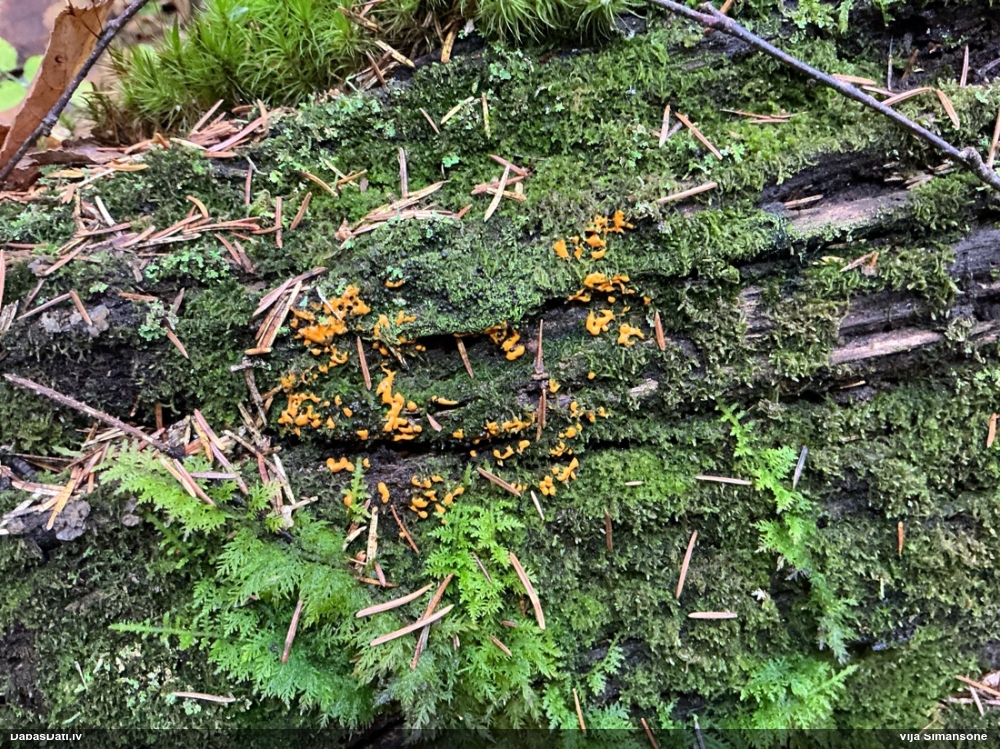 Foto diemžēl nav, bet , cik atceros, auga uz horizontāla paveca nozāģēta celma virsmas. Mežs - jauktu koku, tāda reljefaina vieta :)