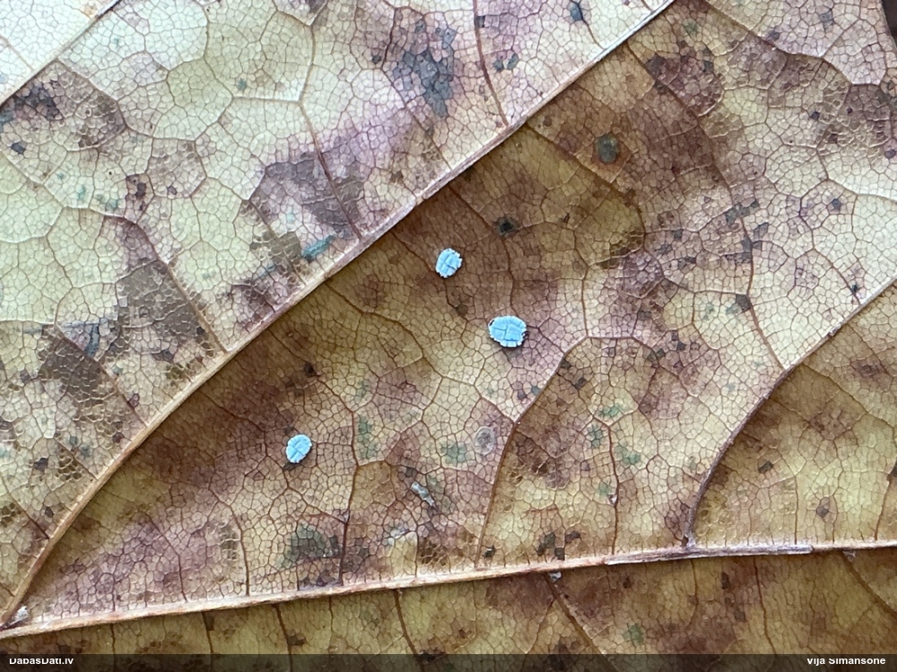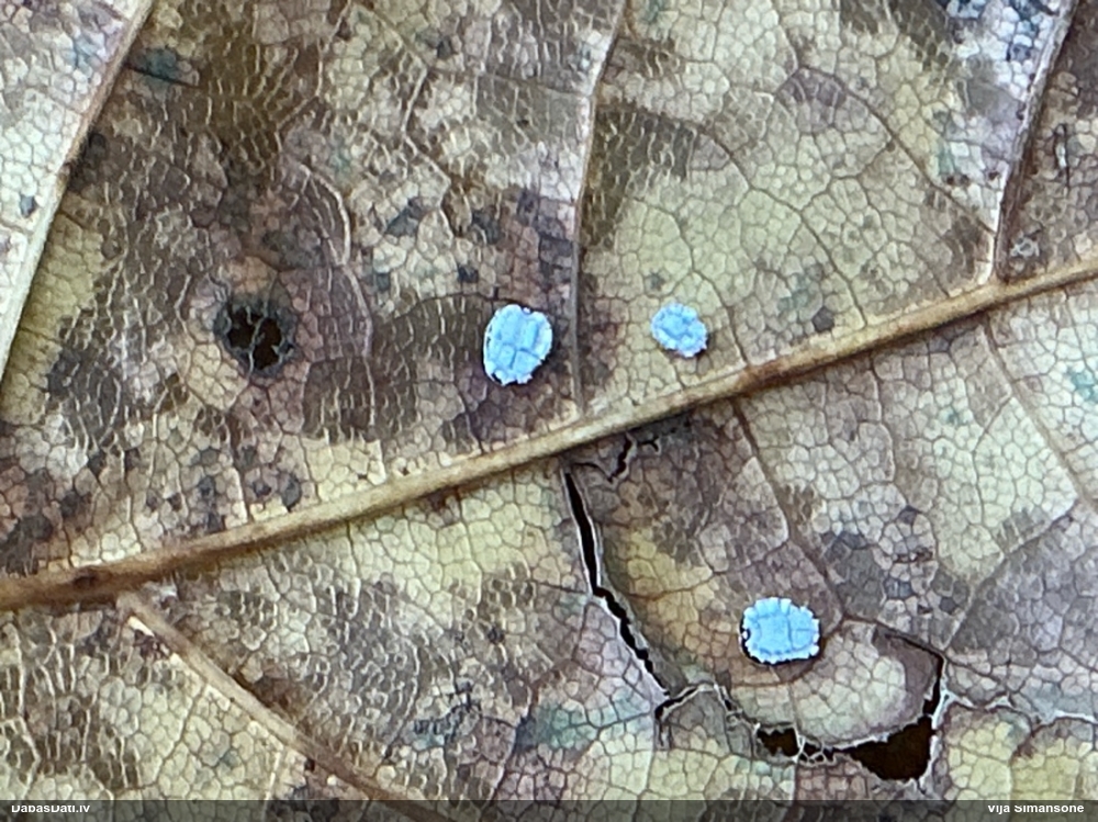 Nu jāā.. Pēc kopskata domājams, ka ļoti reti novērota suga, pēc pašreizējām zināšanām - Badhamia foliicola vai Physarum cinereum. Bet dikti agri! Varētu šogad papētīt, vai tur kas līdzīgs neuzaug. :D