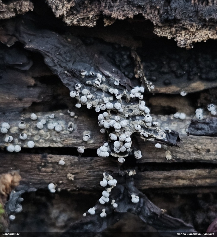 Skatoties uz nelīdzeno virsmu, var būt grubuļainais Fuligo luteonitens, bet droši to varētu pateikt mikroskopijā pēc sporām