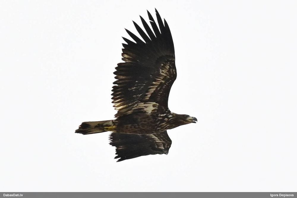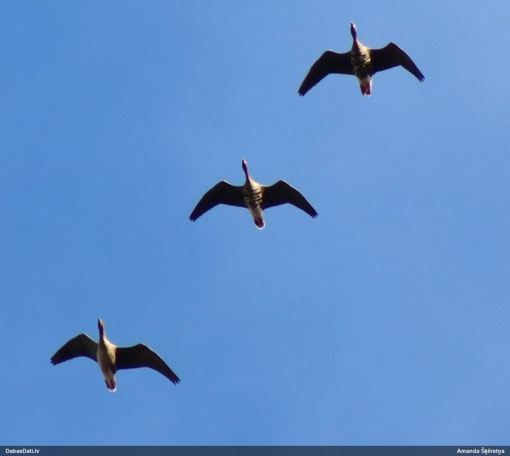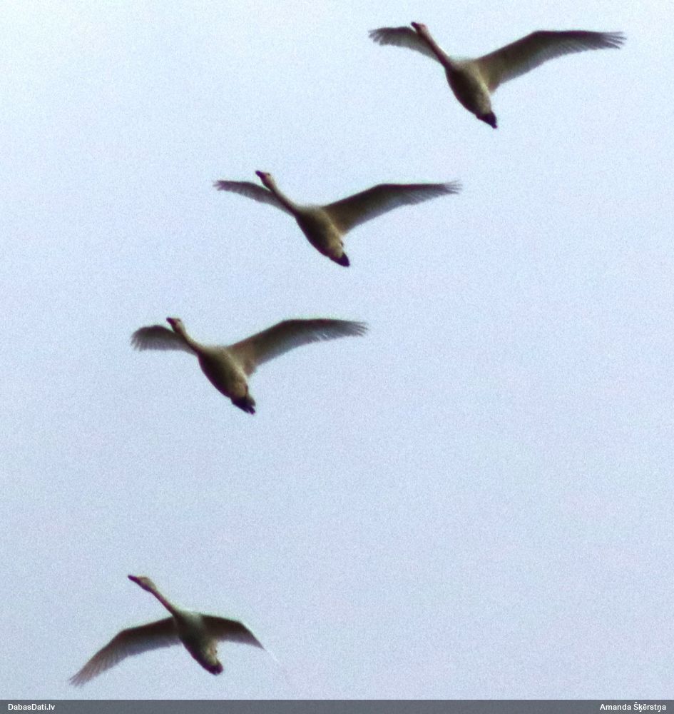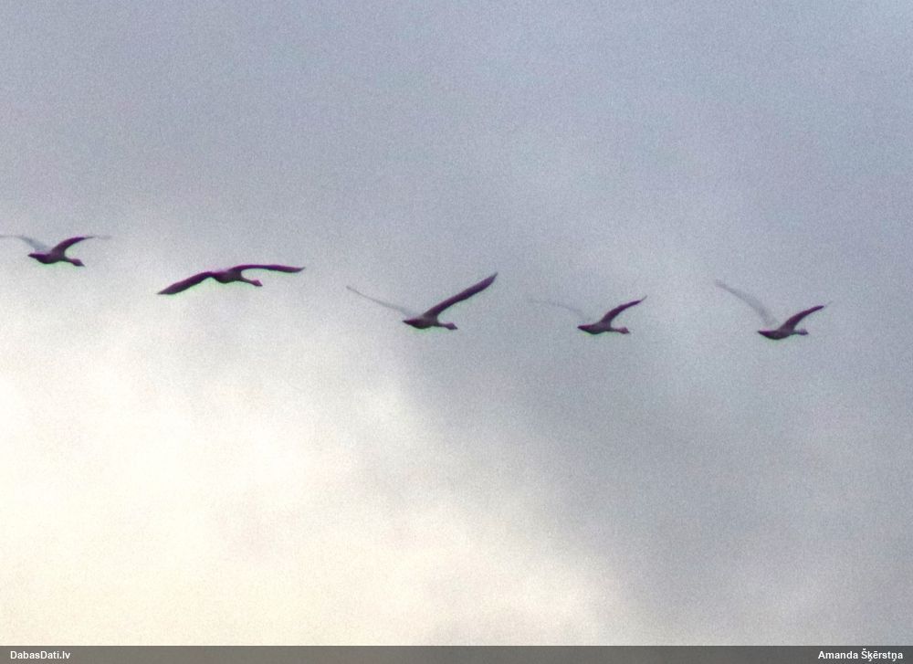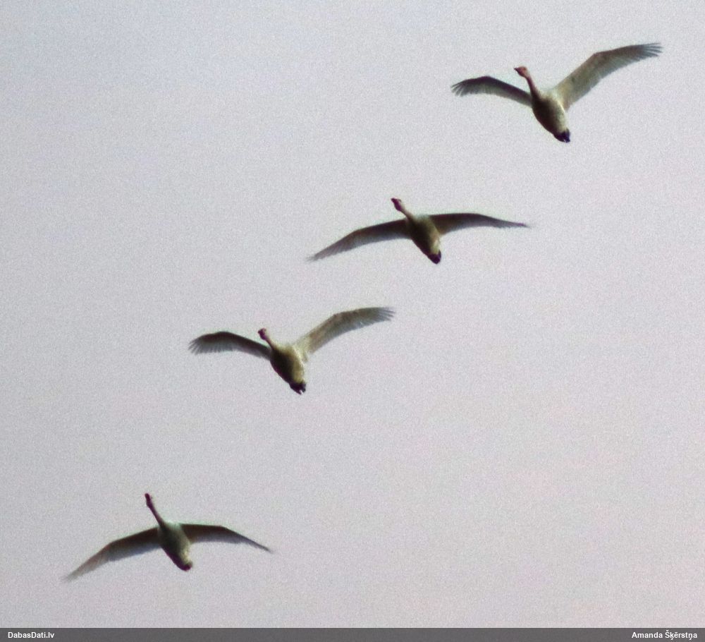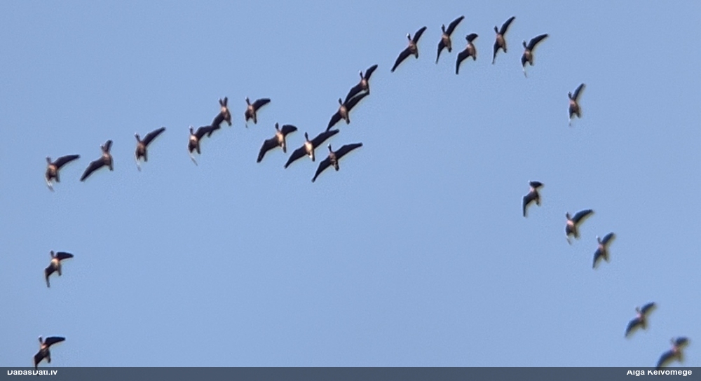 2024. oktobra sākumā pa ceļam uz Lietuvu novērots Sātiņos kopā ar 2 līdzbiedriem (jaunie putni), 2025.g. decembrī arī turpat netālu Lietuvā pie Rusnes.