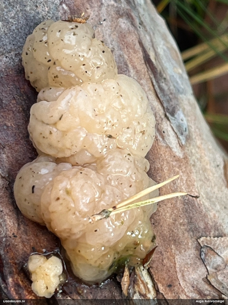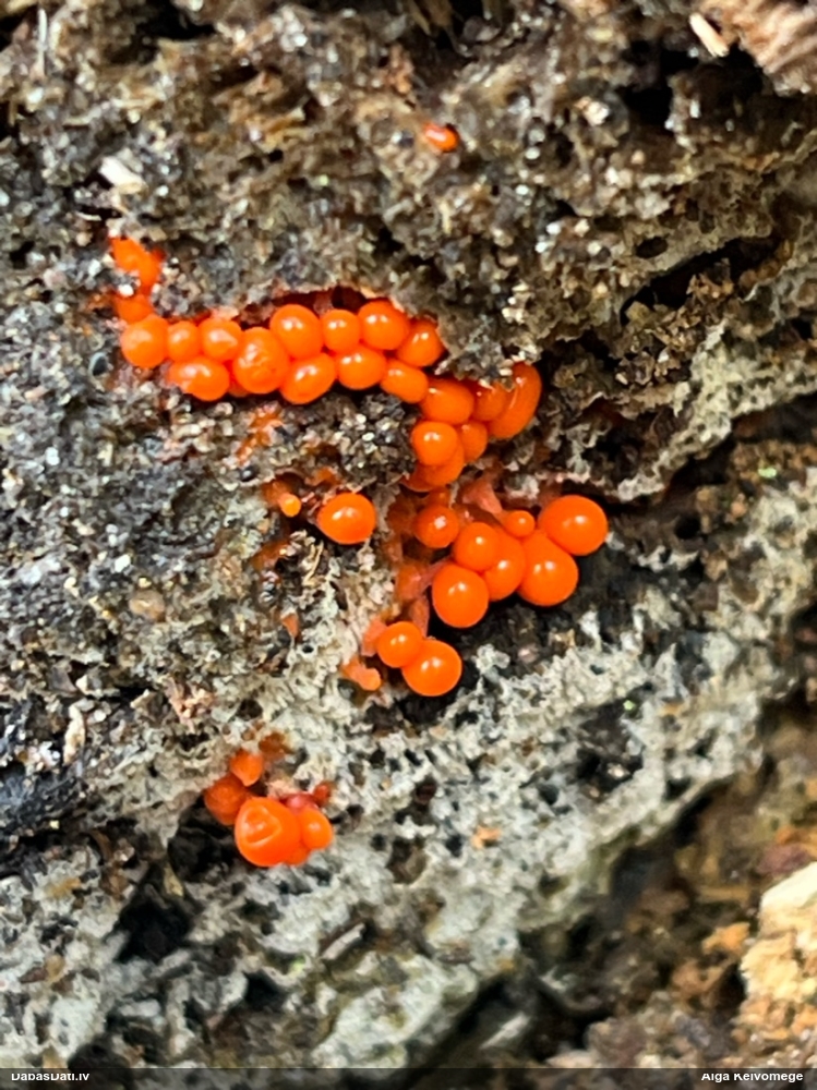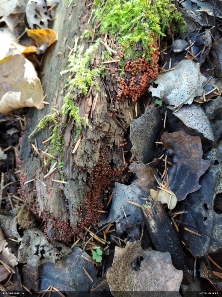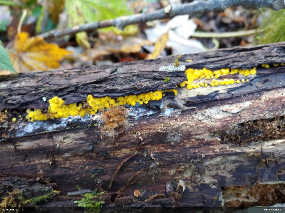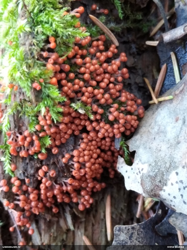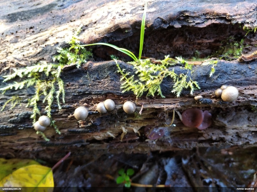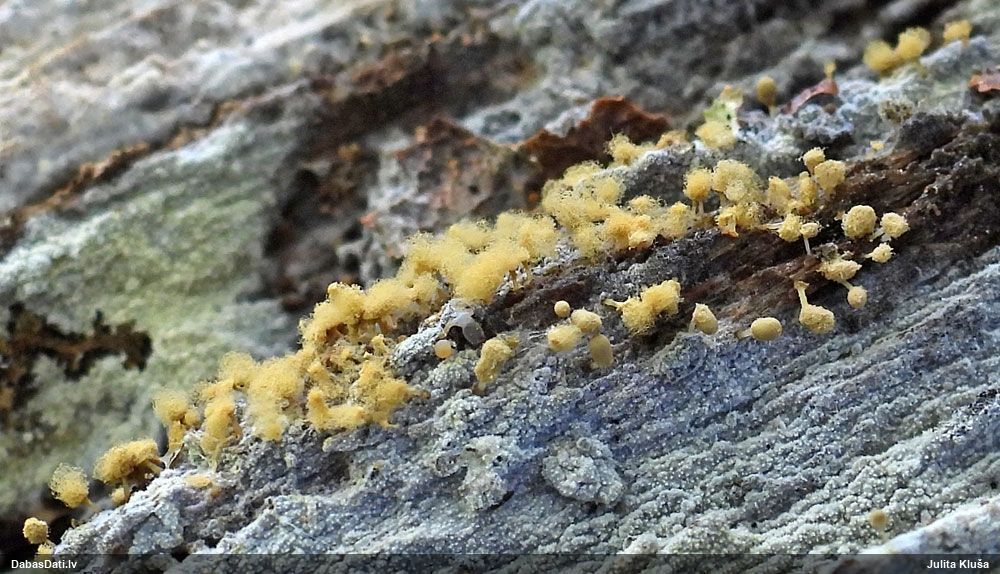 Skatoties uz nelīdzeno virsmu, var būt grubuļainais Fuligo luteonitens, bet droši to varētu pateikt mikroskopijā pēc sporām