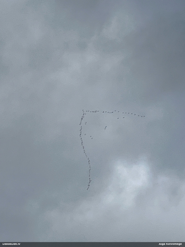 2024. oktobra sākumā pa ceļam uz Lietuvu novērots Sātiņos kopā ar 2 līdzbiedriem (jaunie putni), 2025.g. decembrī arī turpat netālu Lietuvā pie Rusnes.