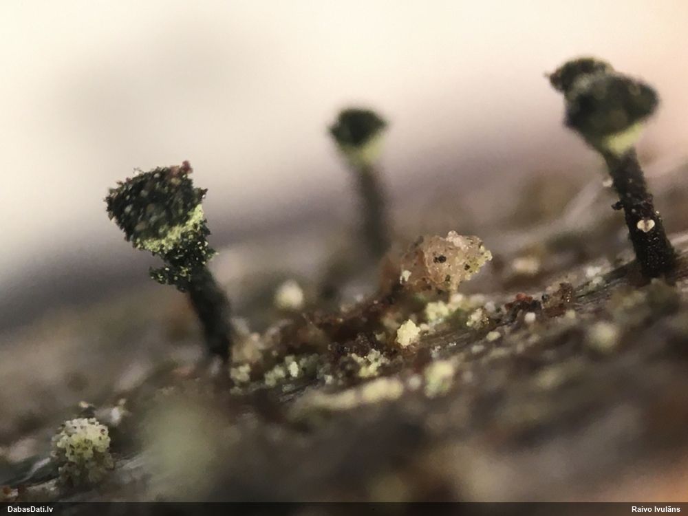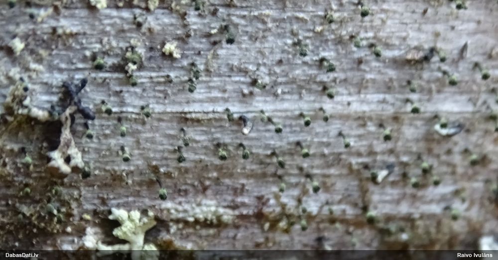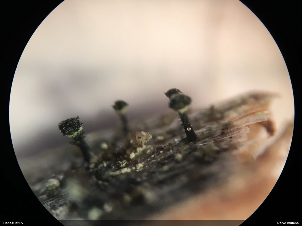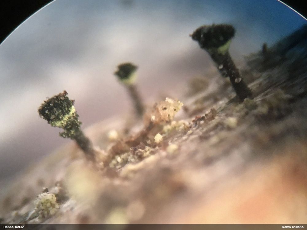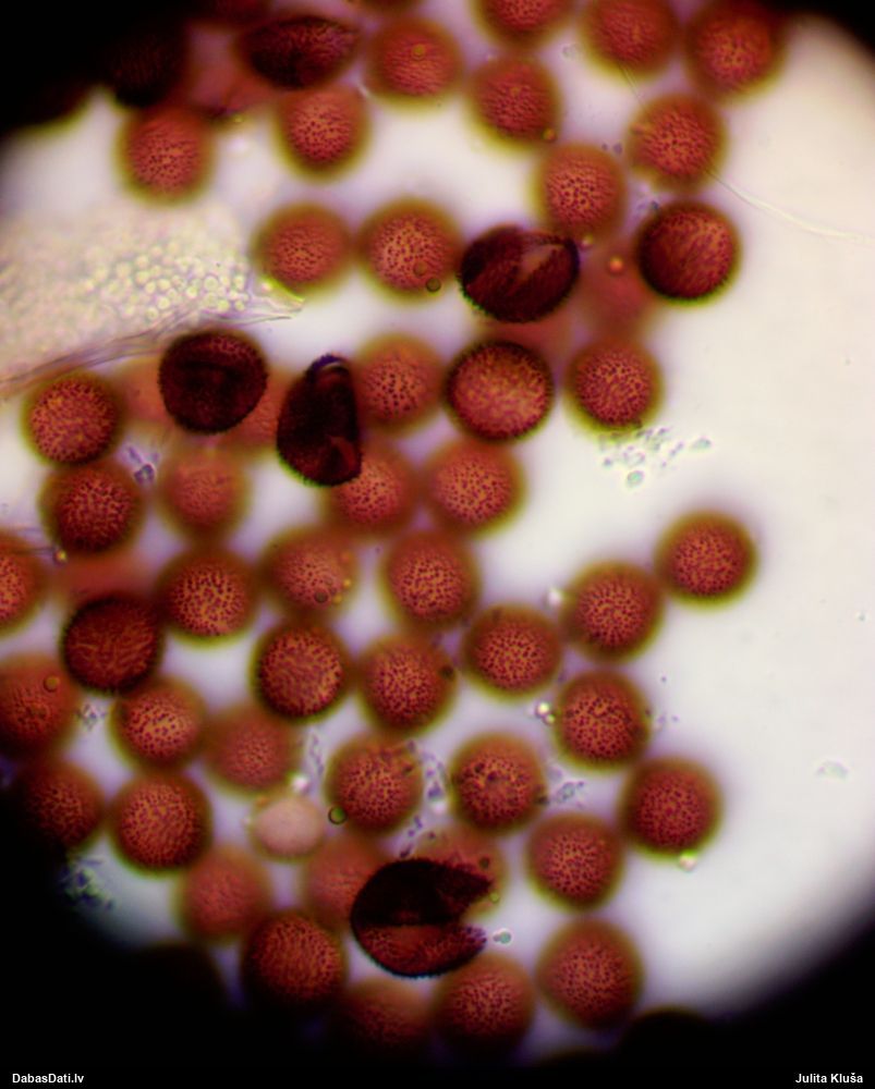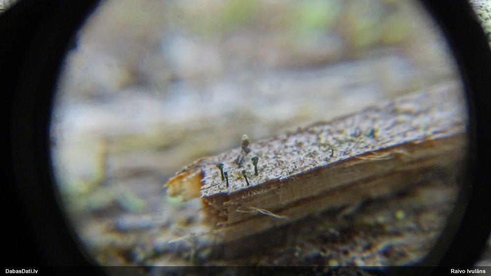Paldies, Raivo! Ar acu gaišumu man arvien sliktāk, bet mikroskops palīdz. Jā, gribēju teikt, ka paraugam, ja vien nav kāda jutīga atradne, kurai drīkst ievākt tikai mazu gabaliņu, vērts ievākt lielāku gabalu, jo gļotsēnēm patīk kompānija. Un mikroskopa mazajos palielinājumos ar sānu papildus apgaismojumu ir vērts rūpīgi "izstaigāt" visu paraugu. Arī ķērpjus un interesantas sīksēnītes tā var atrast, ko dabā nepamanītu. Ar kriksītēm ir dažādi - pirmās es tā arī tikai citu sugu paraugos pamanīju, bet vēlāk redzēju arī dabā kriskīšu plantācijas - ja to ir daudz, tad var pamanīt jau dabā. Uz sūnām gan ir ekstrēms gadījums, dabā droši nepamanītu, arī eksemplāra noņemšana no sūnas nebija pārāk veiksmīga, tāpēc par noteikšanu mazliet šaubos (sporām mazliet cits tonis). Bet pagaidām citas hipotēzes nav (un konkrētā eksemplāra arī vairs ne).