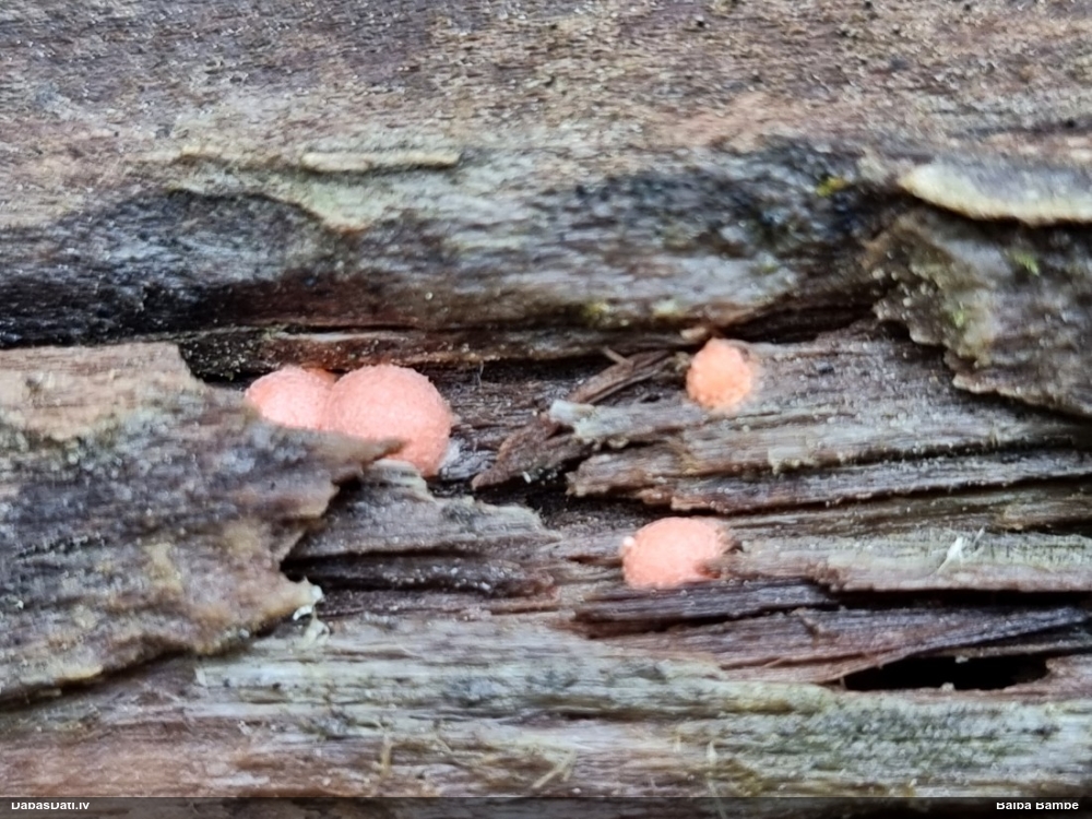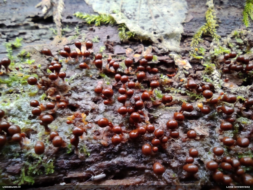 Skatoties uz nelīdzeno virsmu, var būt grubuļainais Fuligo luteonitens, bet droši to varētu pateikt mikroskopijā pēc sporām