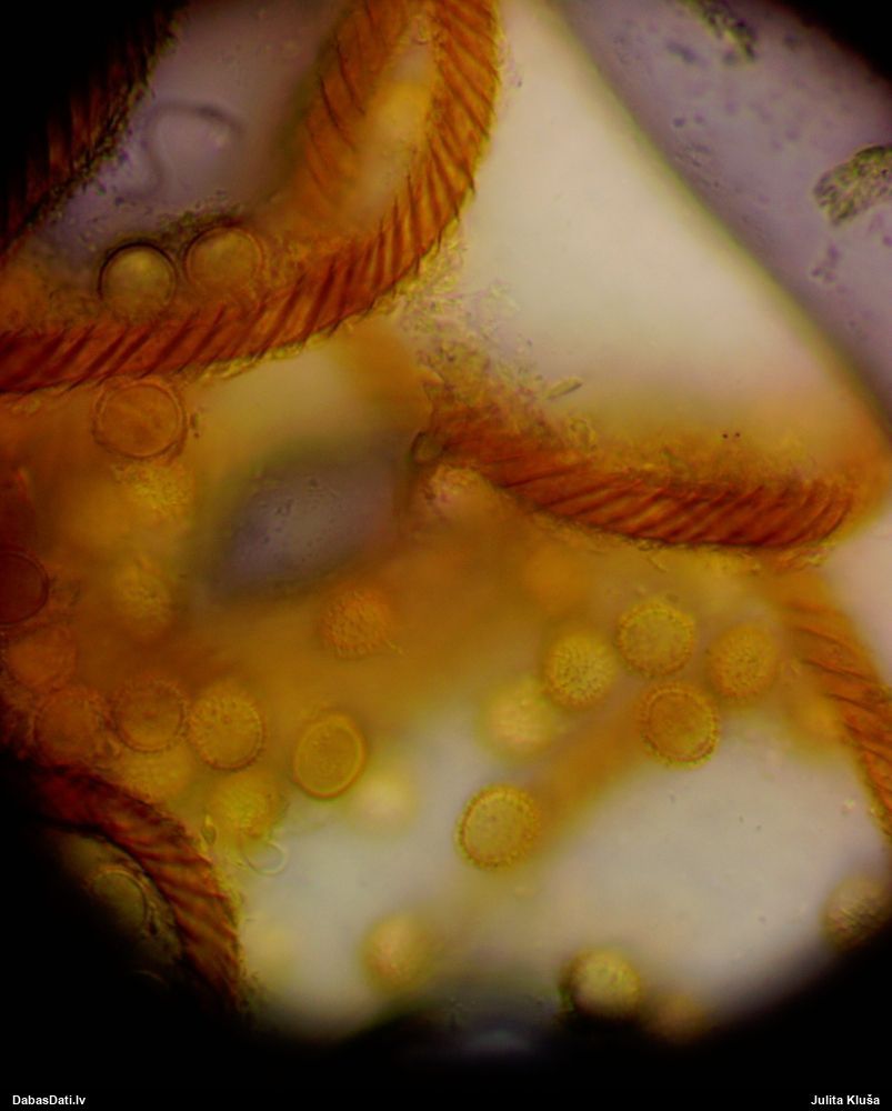 Šo mēs neatpazinām, jo suga atklāta tikai 2022. gadā, bet tās sporas ar apaļajiem "dobumiem" šai sugai ir tik ļoti raksturīgas! Viss pārējais arī kā no topošās grāmatas :))