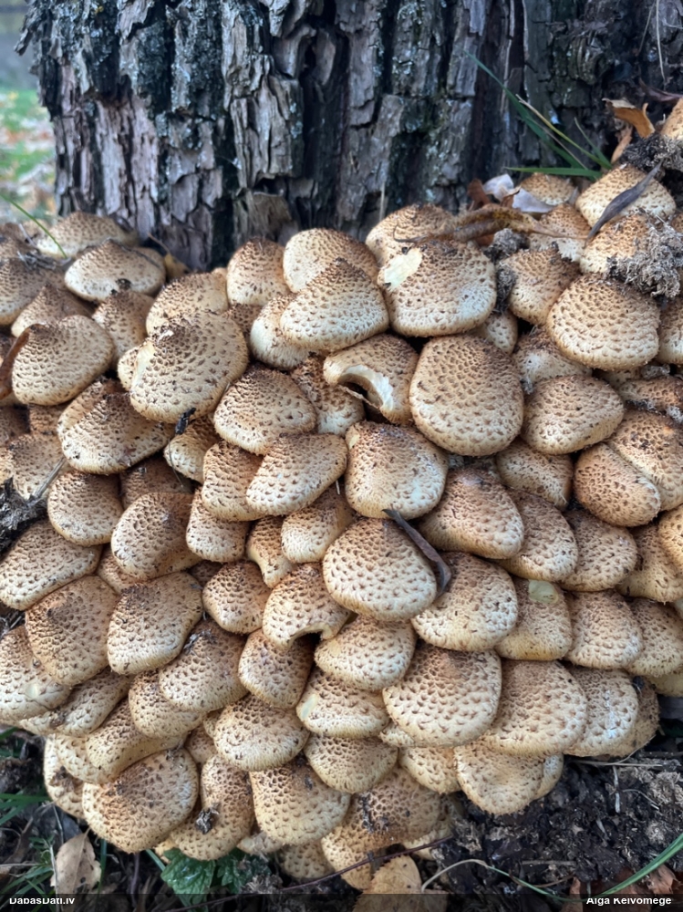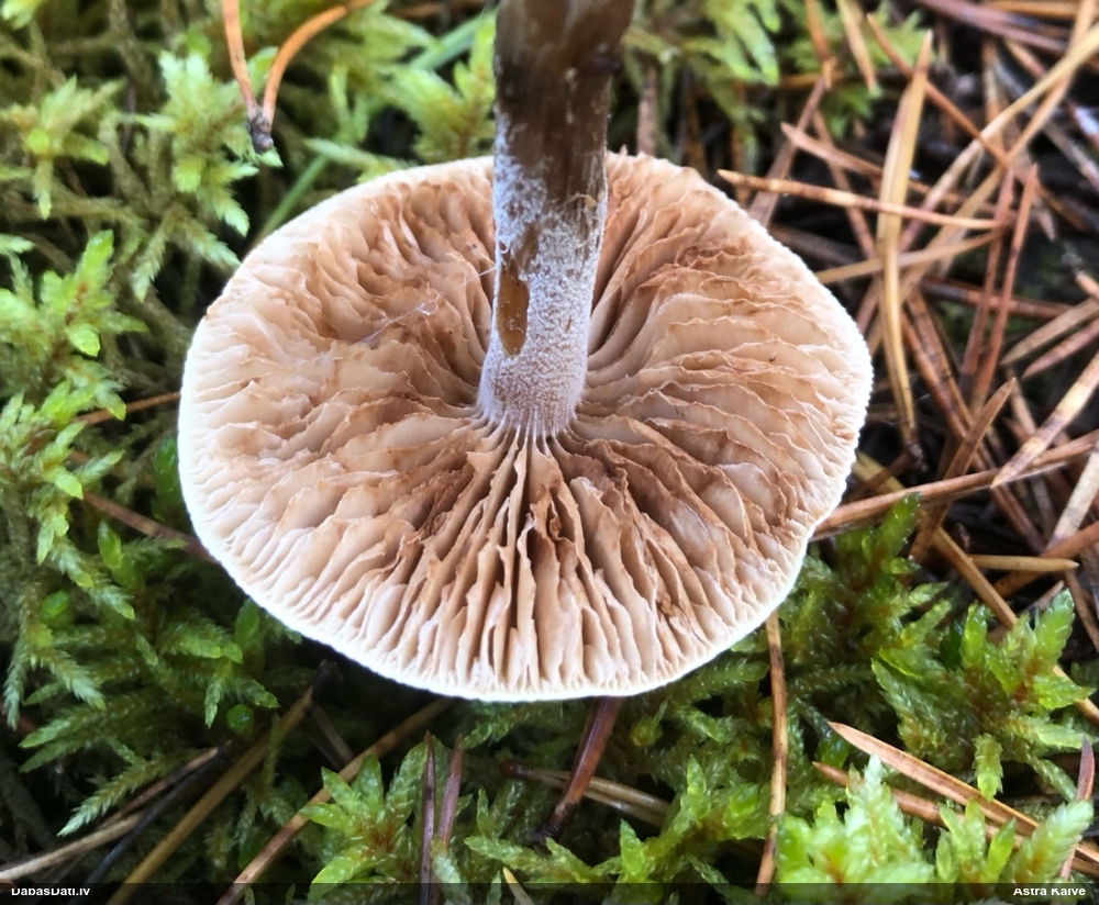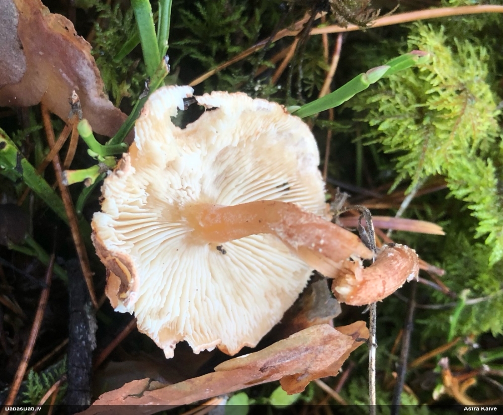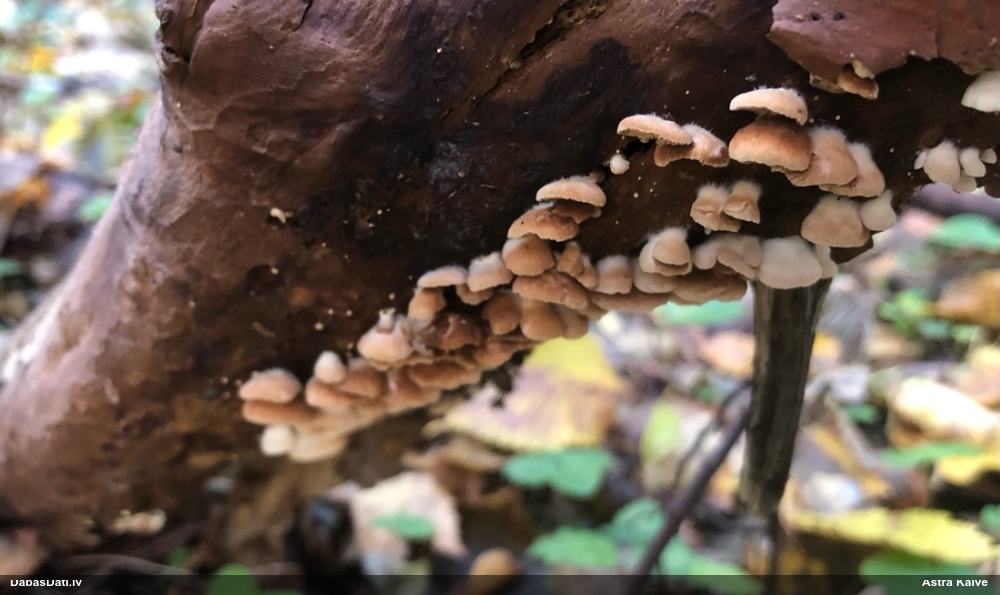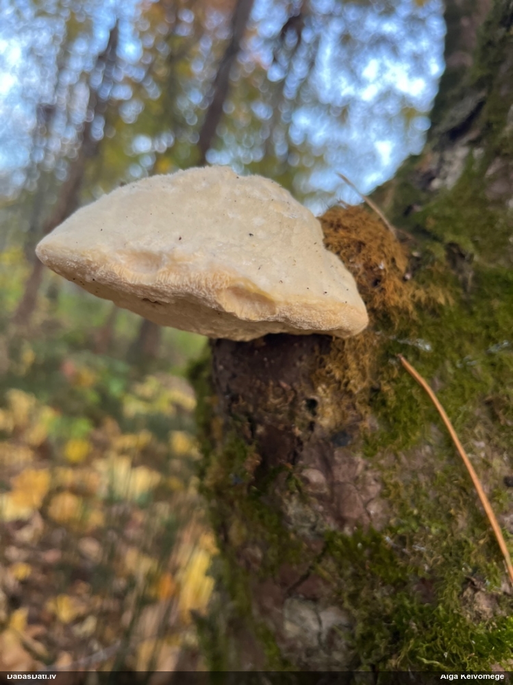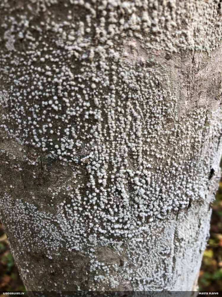 Nevar saprast, uz kā auga - vai tas ir nobirās, vai uz kritalas mizas? Abas hipotēzes ir "pa tēmu", bet man "nepatīk" kopskats, kur skaidri redzams, ka vairāki augļķermeņi ir cieši kopā, bet tas nav raksturīgs ne vienai, ne otrai hipotēzei, kur augļķermeņi tipiski ir nodalīti. Ļoti interesanti, ja ir paraugs, tad kāds tas izskatās tagad, un vispār to vajadzētu mikroskopēt.