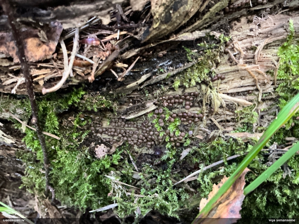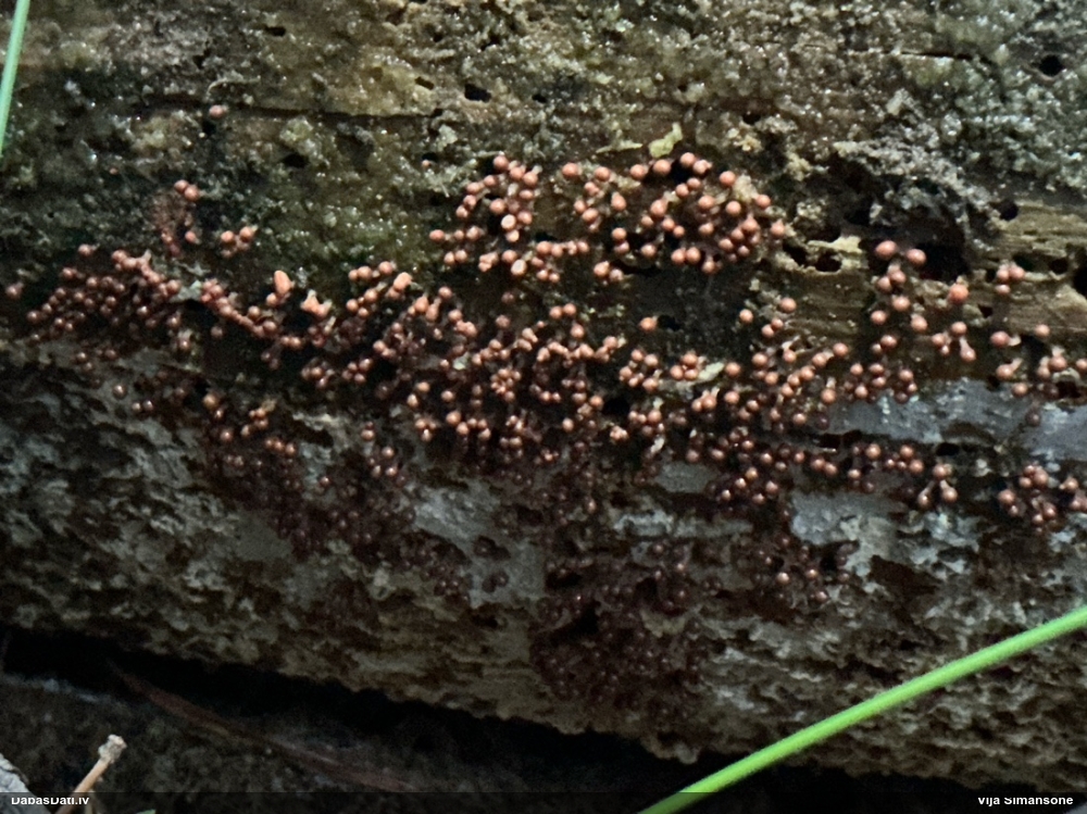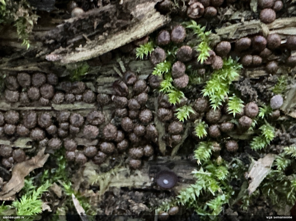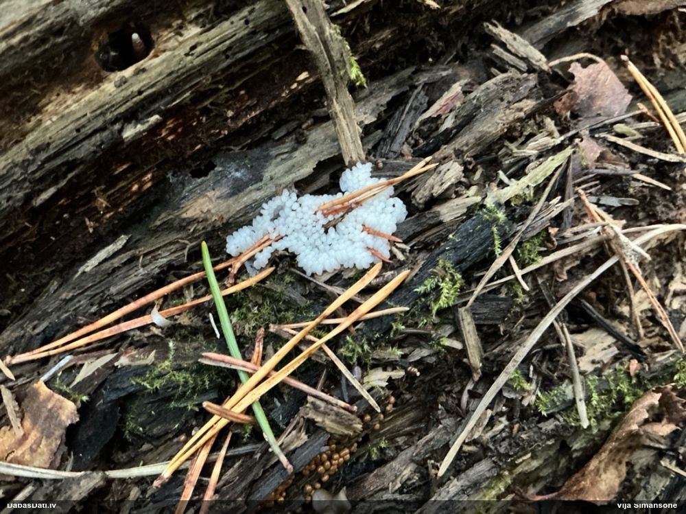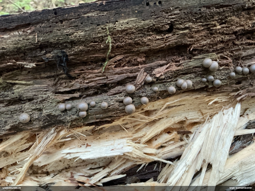 Skatoties uz nelīdzeno virsmu, var būt grubuļainais Fuligo luteonitens, bet droši to varētu pateikt mikroskopijā pēc sporām