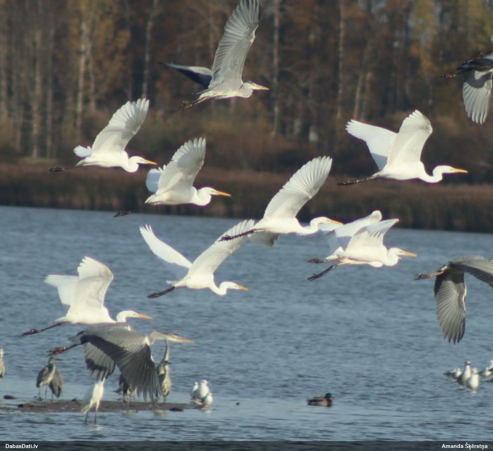 2024. oktobra sākumā pa ceļam uz Lietuvu novērots Sātiņos kopā ar 2 līdzbiedriem (jaunie putni), 2025.g. decembrī arī turpat netālu Lietuvā pie Rusnes.