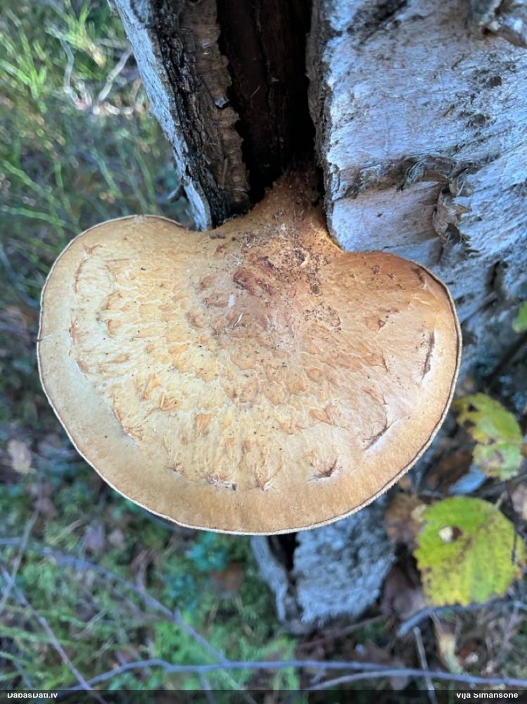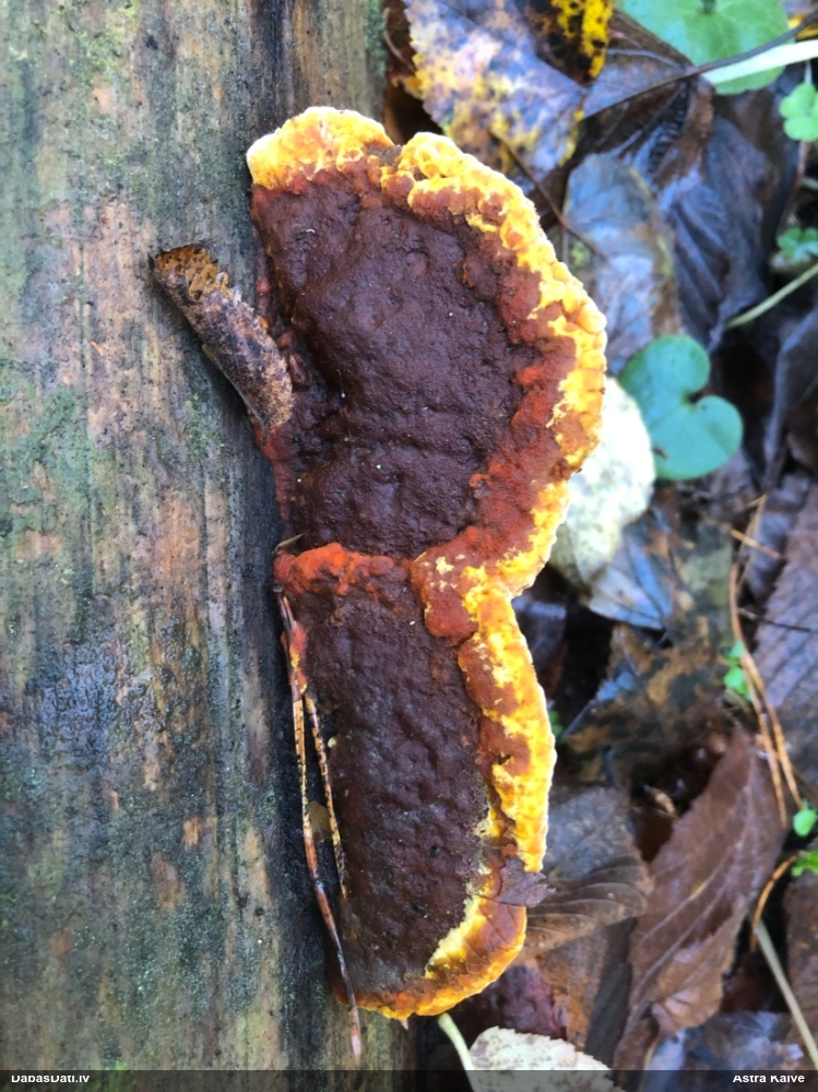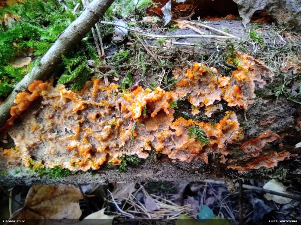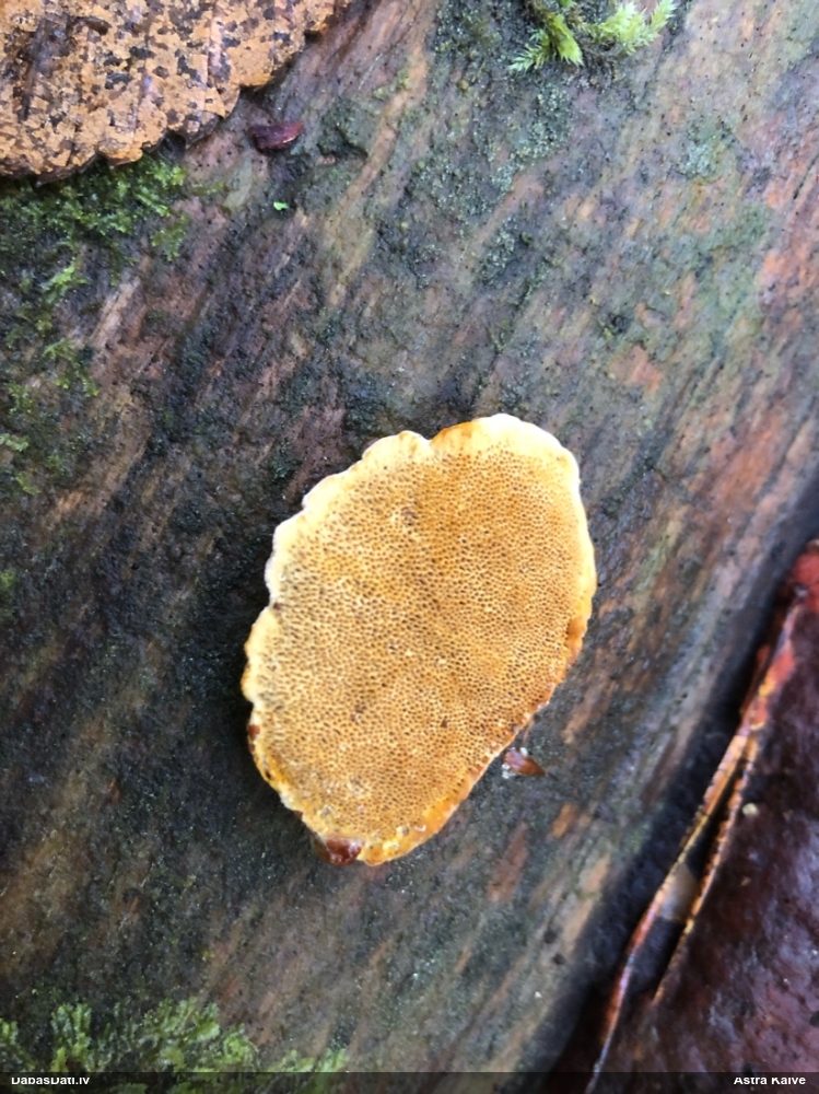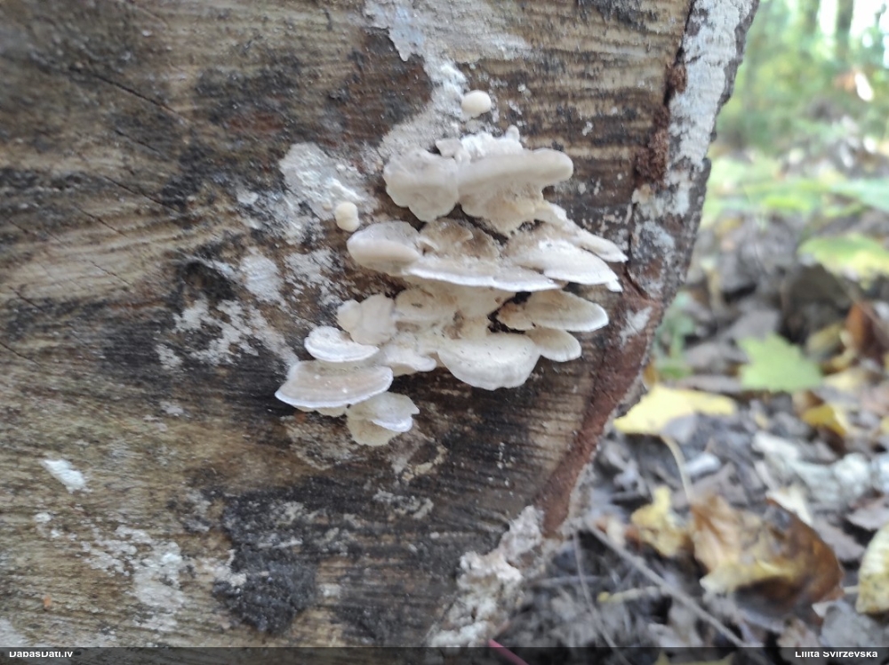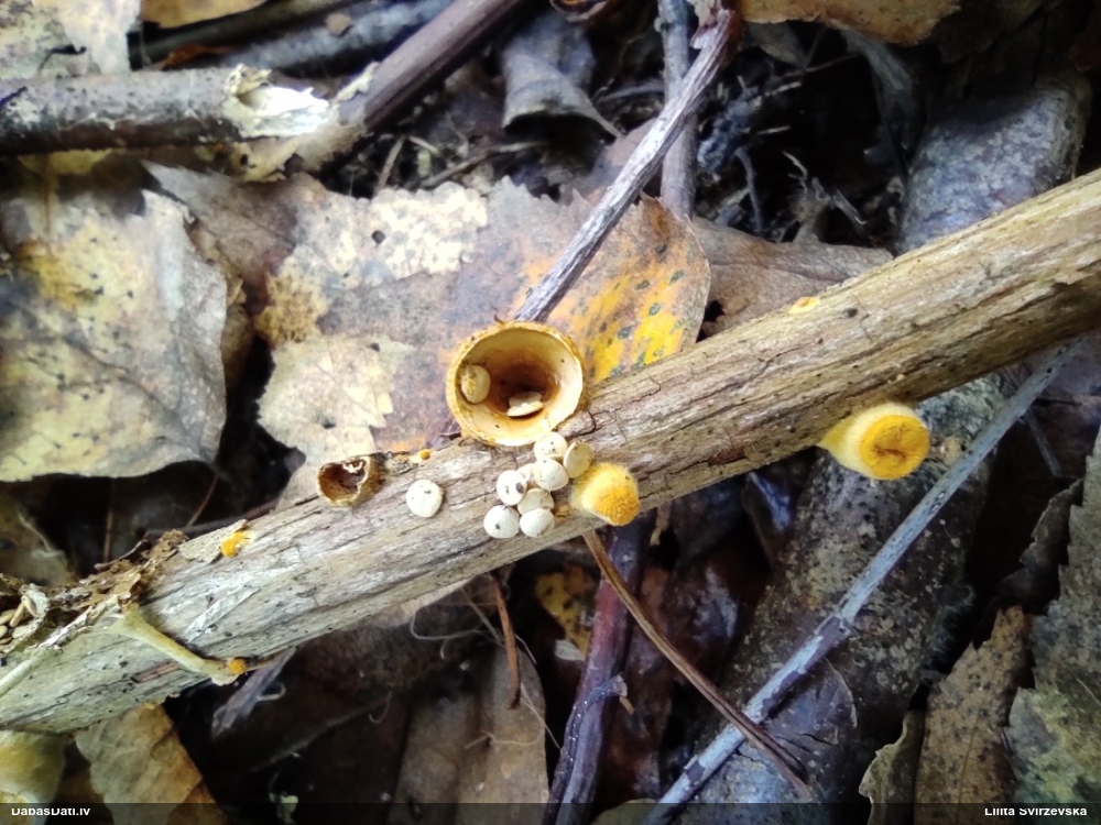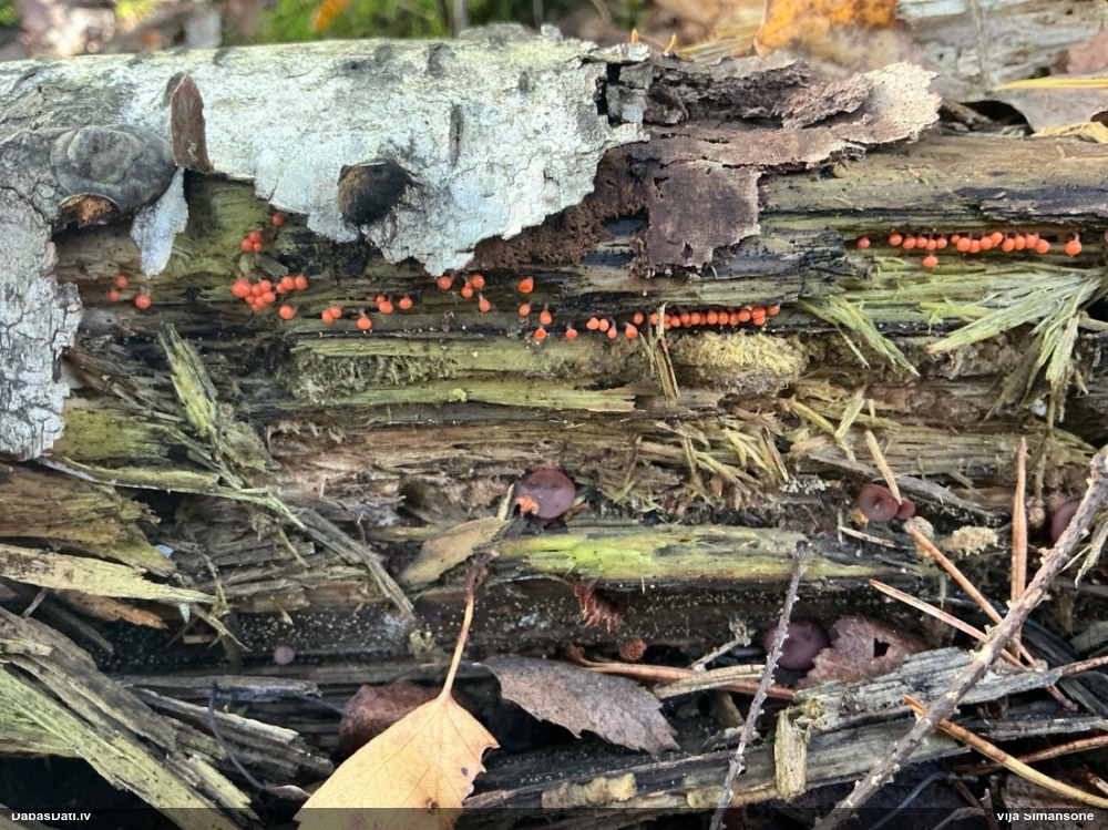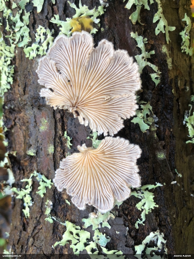 Nevar saprast, uz kā auga - vai tas ir nobirās, vai uz kritalas mizas? Abas hipotēzes ir "pa tēmu", bet man "nepatīk" kopskats, kur skaidri redzams, ka vairāki augļķermeņi ir cieši kopā, bet tas nav raksturīgs ne vienai, ne otrai hipotēzei, kur augļķermeņi tipiski ir nodalīti. Ļoti interesanti, ja ir paraugs, tad kāds tas izskatās tagad, un vispār to vajadzētu mikroskopēt.