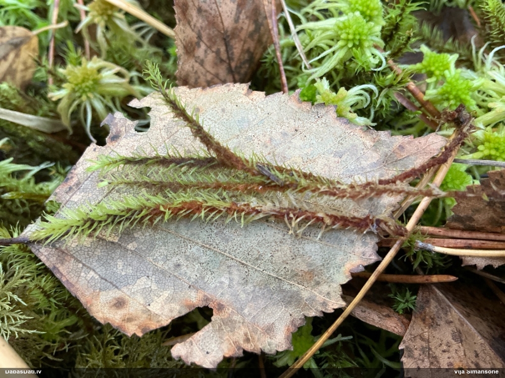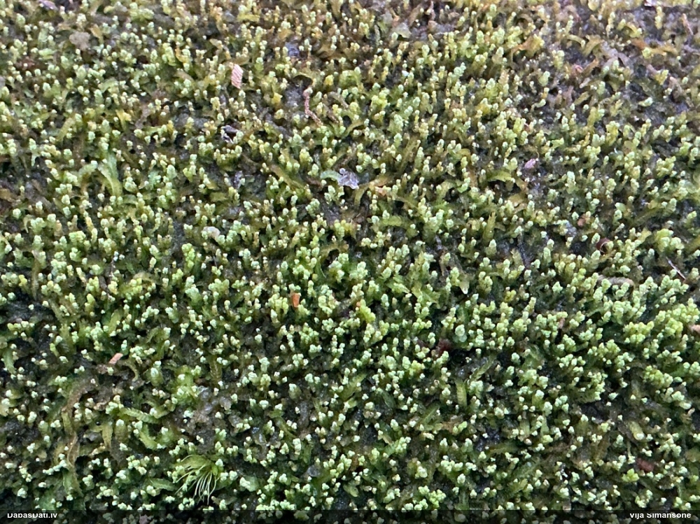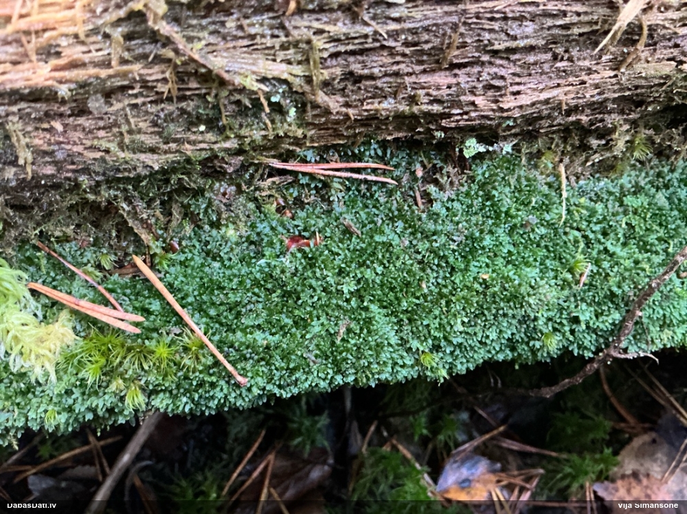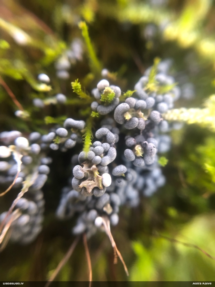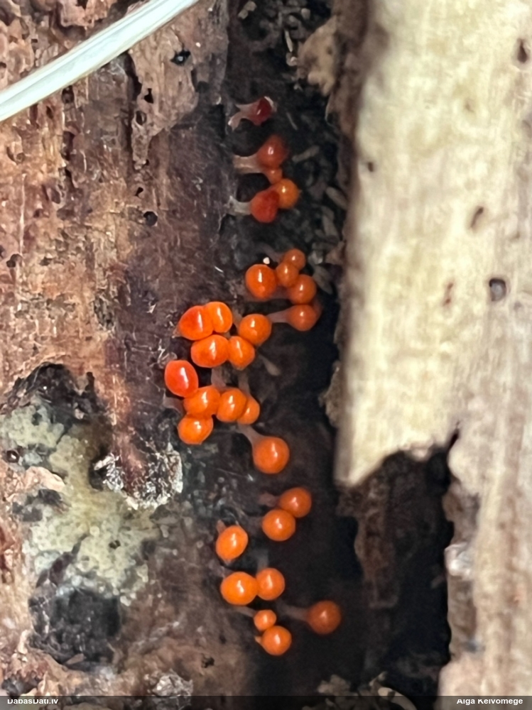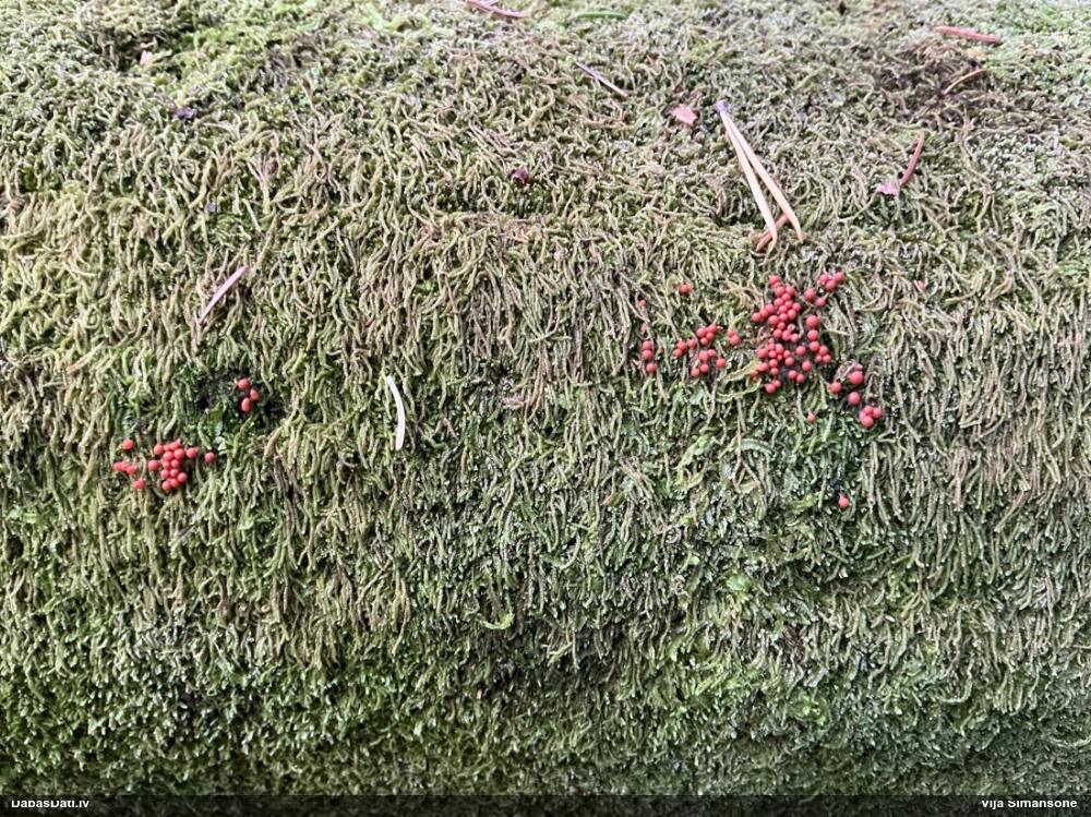 Paldies, Raivo! Ar acu gaišumu man arvien sliktāk, bet mikroskops palīdz. Jā, gribēju teikt, ka paraugam, ja vien nav kāda jutīga atradne, kurai drīkst ievākt tikai mazu gabaliņu, vērts ievākt lielāku gabalu, jo gļotsēnēm patīk kompānija. Un mikroskopa mazajos palielinājumos ar sānu papildus apgaismojumu ir vērts rūpīgi "izstaigāt" visu paraugu. Arī ķērpjus un interesantas sīksēnītes tā var atrast, ko dabā nepamanītu. Ar kriksītēm ir dažādi - pirmās es tā arī tikai citu sugu paraugos pamanīju, bet vēlāk redzēju arī dabā kriskīšu plantācijas - ja to ir daudz, tad var pamanīt jau dabā. Uz sūnām gan ir ekstrēms gadījums, dabā droši nepamanītu, arī eksemplāra noņemšana no sūnas nebija pārāk veiksmīga, tāpēc par noteikšanu mazliet šaubos (sporām mazliet cits tonis). Bet pagaidām citas hipotēzes nav (un konkrētā eksemplāra arī vairs ne).