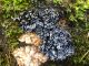 Šis interesants. Uz sausām priedes kritalām rozā mazi līdzīga izskata augļķermeņi maijā aug divām citādi atšķirīgām sugām (dažādās dzimtās) - melnajai plaispikai Amaurochaete atra un trauslajam gļotpūpēdim Reticularia jurana. Pēc sīkām mikropazīmēm (foto nav redzama pat ne sīka balta pakāje ap augļķermeni, un uz virsmas ar lielu piepūli var ja ne saskatīt, tad iztēloties tīklotu virsmas rakstu) izšķīros par biežāko no abām - melno plaispiku, kas tipiski aug samērā atklātās, skrajās vietās, t.sk. nesenos izcirtumos.