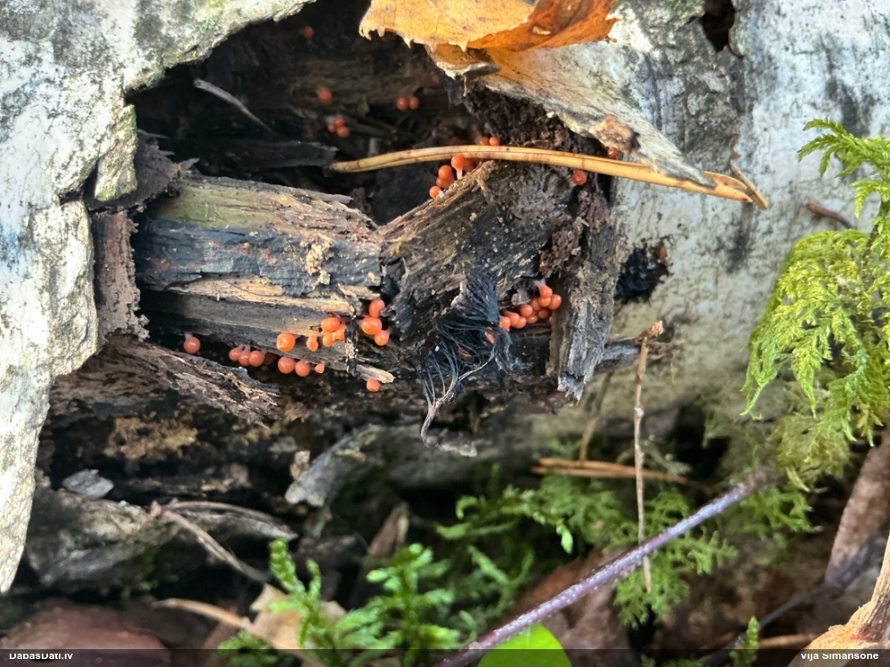 Skatoties uz nelīdzeno virsmu, var būt grubuļainais Fuligo luteonitens, bet droši to varētu pateikt mikroskopijā pēc sporām