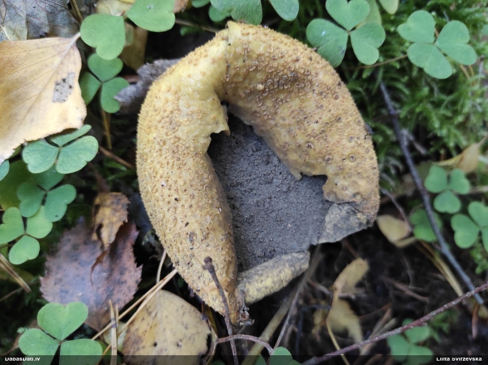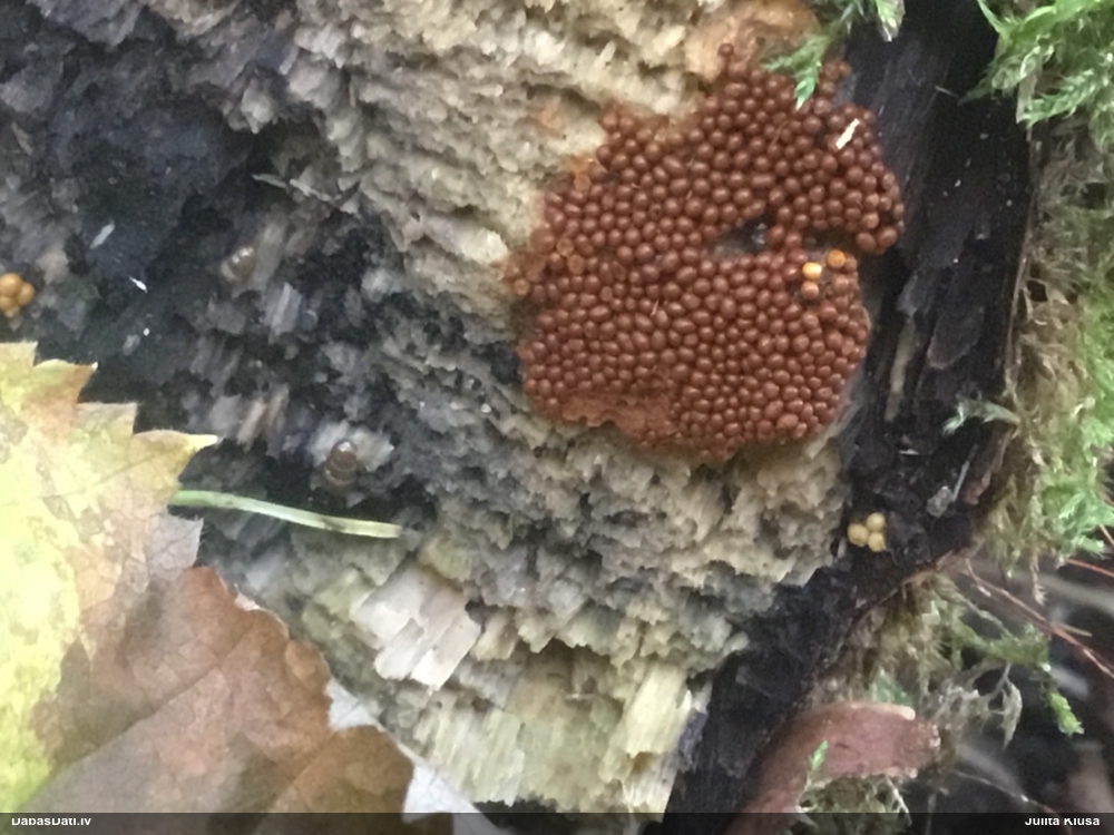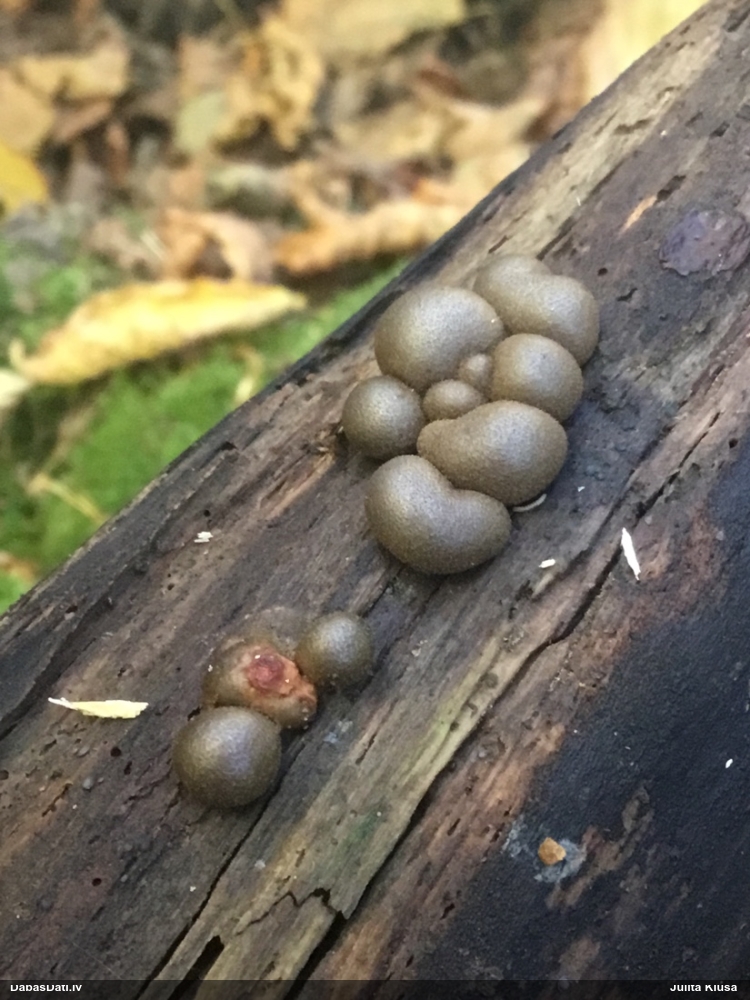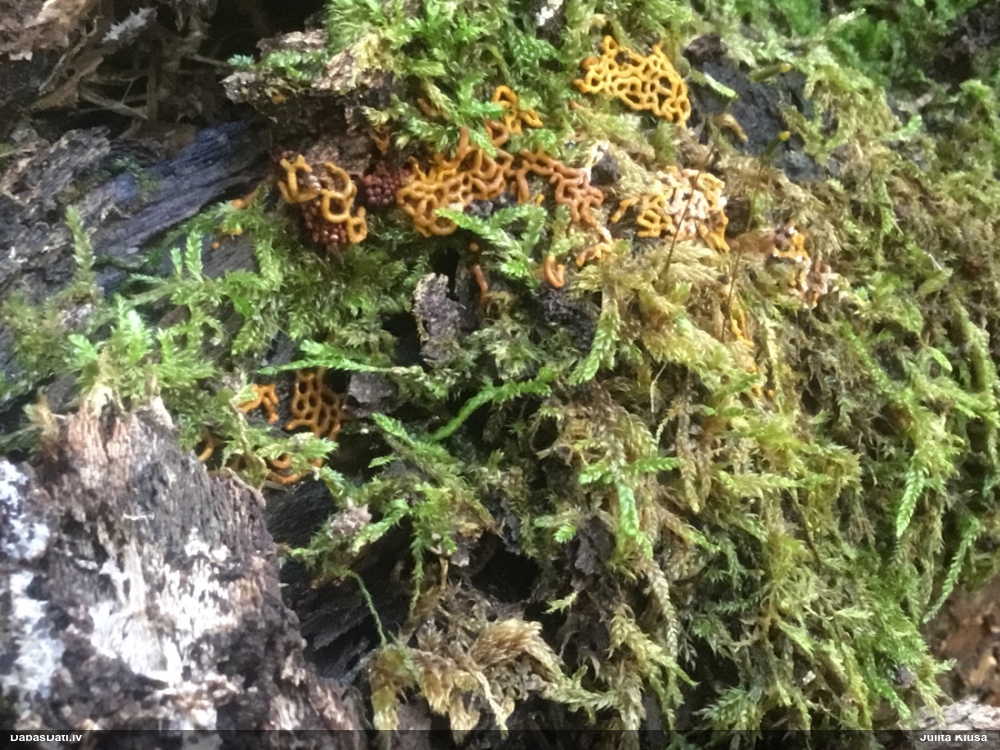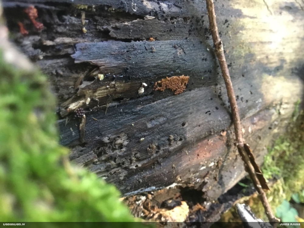 Skatoties uz nelīdzeno virsmu, var būt grubuļainais Fuligo luteonitens, bet droši to varētu pateikt mikroskopijā pēc sporām