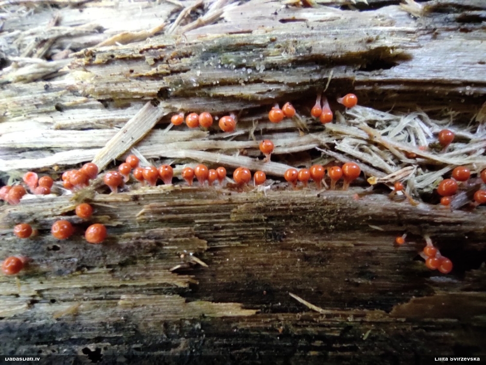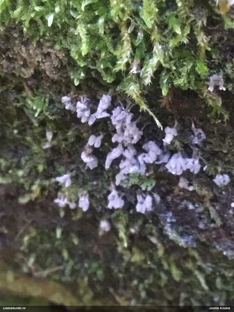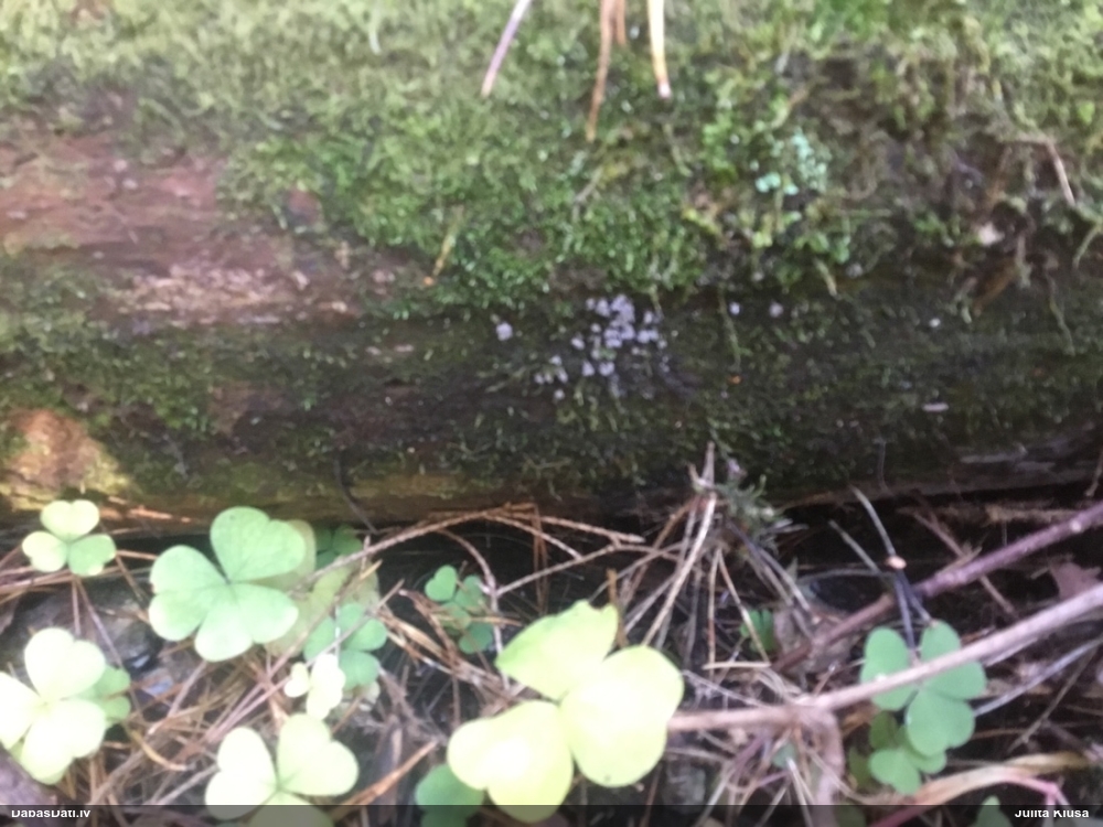 Paldies, Raivo! Ar acu gaišumu man arvien sliktāk, bet mikroskops palīdz. Jā, gribēju teikt, ka paraugam, ja vien nav kāda jutīga atradne, kurai drīkst ievākt tikai mazu gabaliņu, vērts ievākt lielāku gabalu, jo gļotsēnēm patīk kompānija. Un mikroskopa mazajos palielinājumos ar sānu papildus apgaismojumu ir vērts rūpīgi "izstaigāt" visu paraugu. Arī ķērpjus un interesantas sīksēnītes tā var atrast, ko dabā nepamanītu. Ar kriksītēm ir dažādi - pirmās es tā arī tikai citu sugu paraugos pamanīju, bet vēlāk redzēju arī dabā kriskīšu plantācijas - ja to ir daudz, tad var pamanīt jau dabā. Uz sūnām gan ir ekstrēms gadījums, dabā droši nepamanītu, arī eksemplāra noņemšana no sūnas nebija pārāk veiksmīga, tāpēc par noteikšanu mazliet šaubos (sporām mazliet cits tonis). Bet pagaidām citas hipotēzes nav (un konkrētā eksemplāra arī vairs ne).