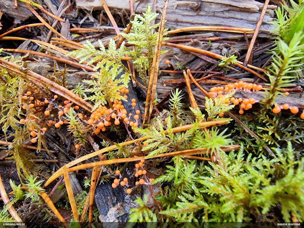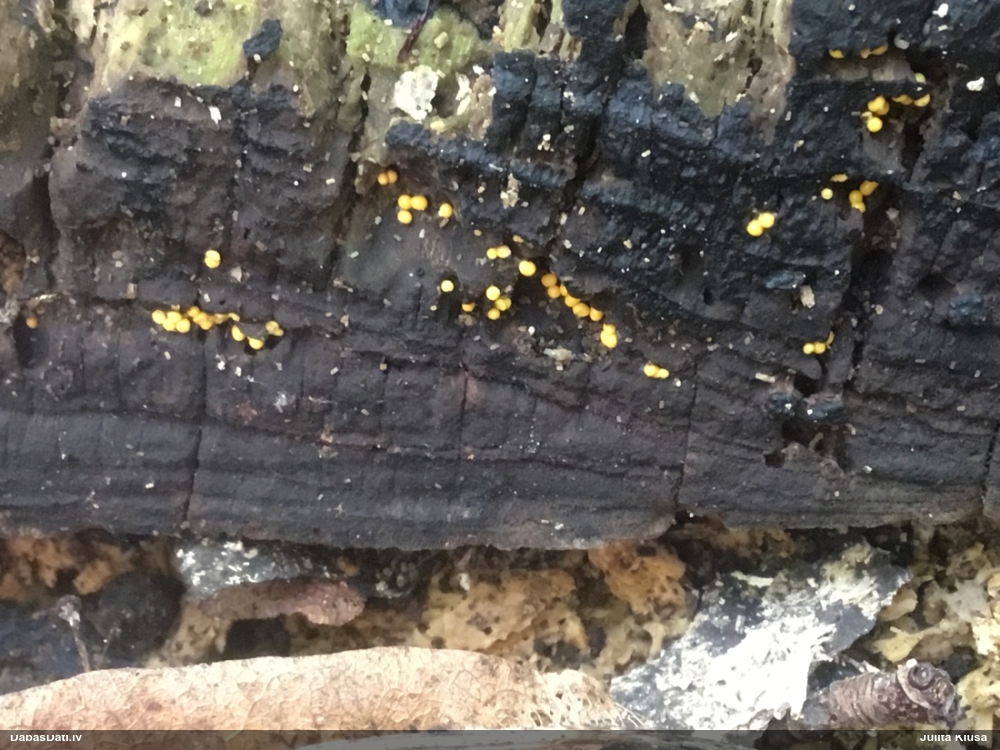 Skatoties uz nelīdzeno virsmu, var būt grubuļainais Fuligo luteonitens, bet droši to varētu pateikt mikroskopijā pēc sporām
