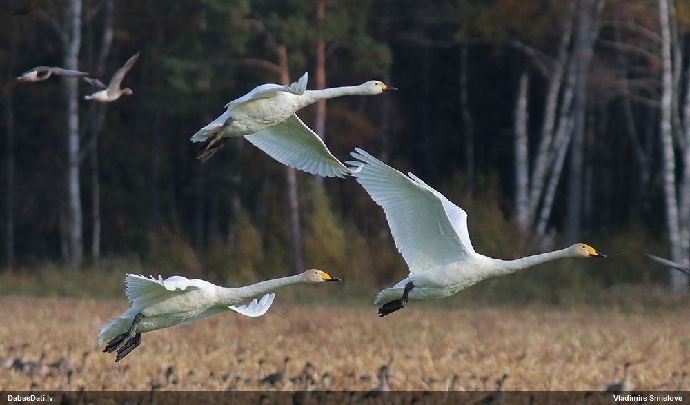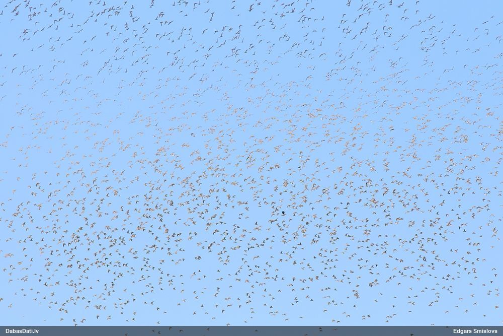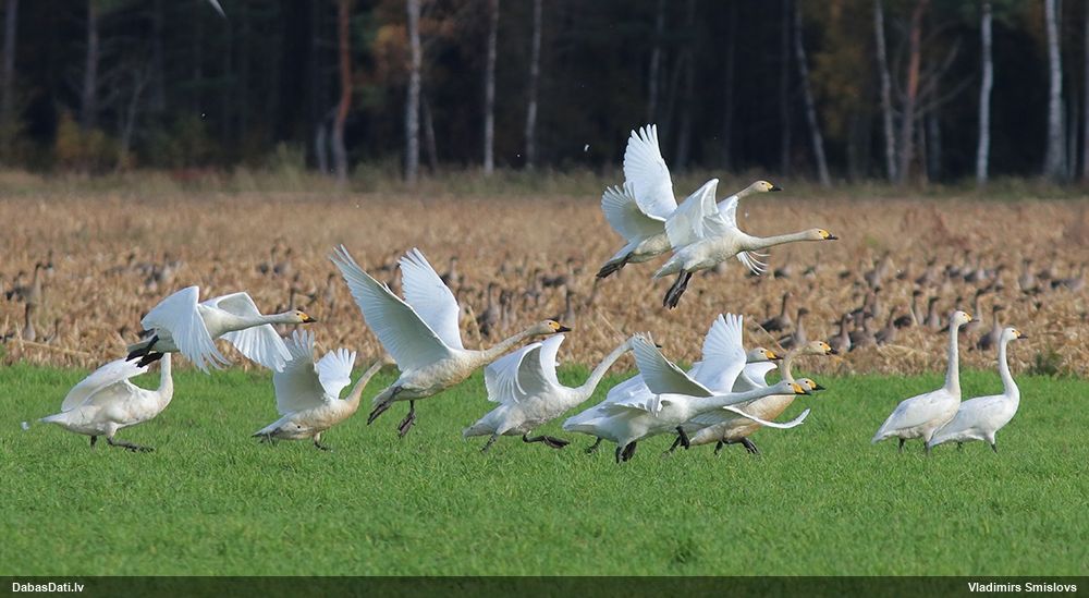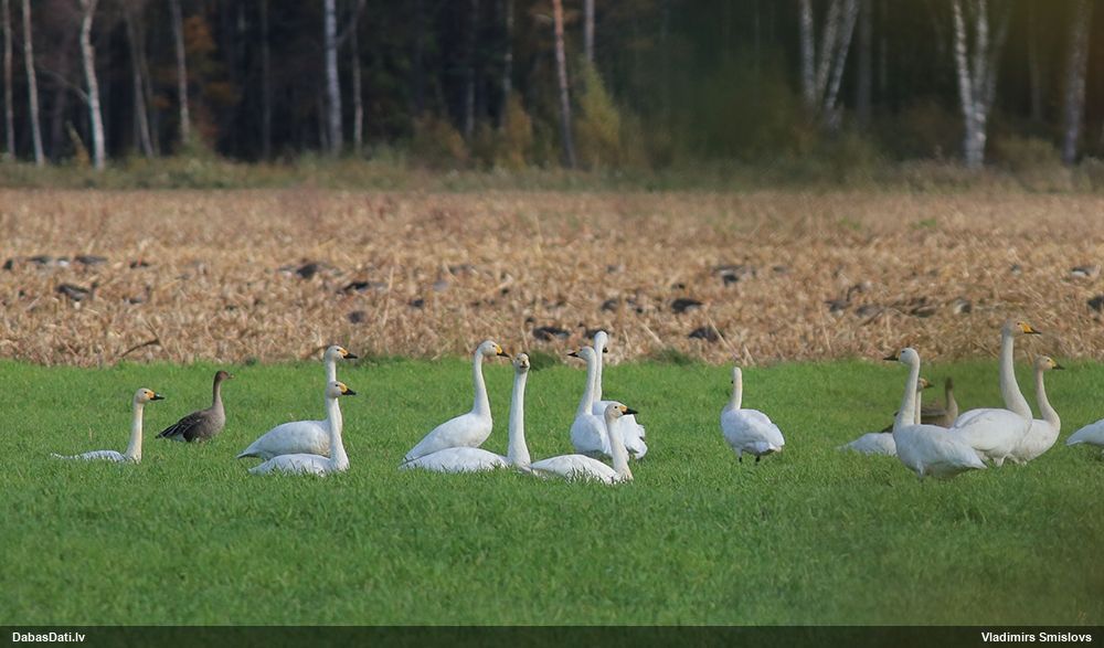 2024. oktobra sākumā pa ceļam uz Lietuvu novērots Sātiņos kopā ar 2 līdzbiedriem (jaunie putni), 2025.g. decembrī arī turpat netālu Lietuvā pie Rusnes.
