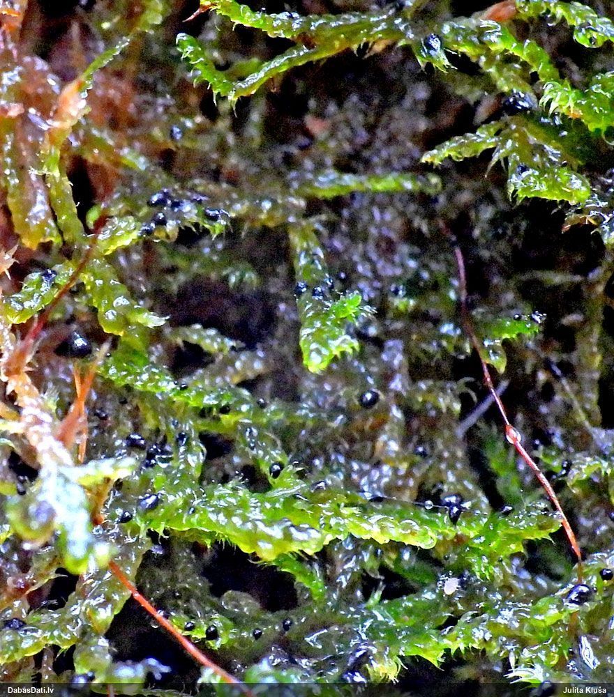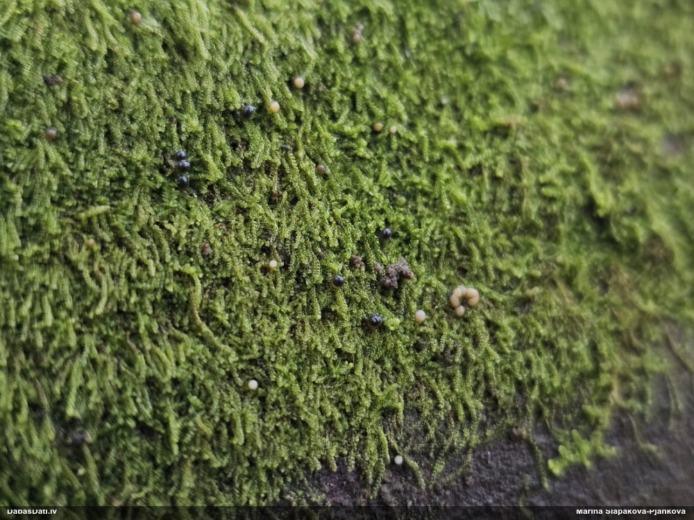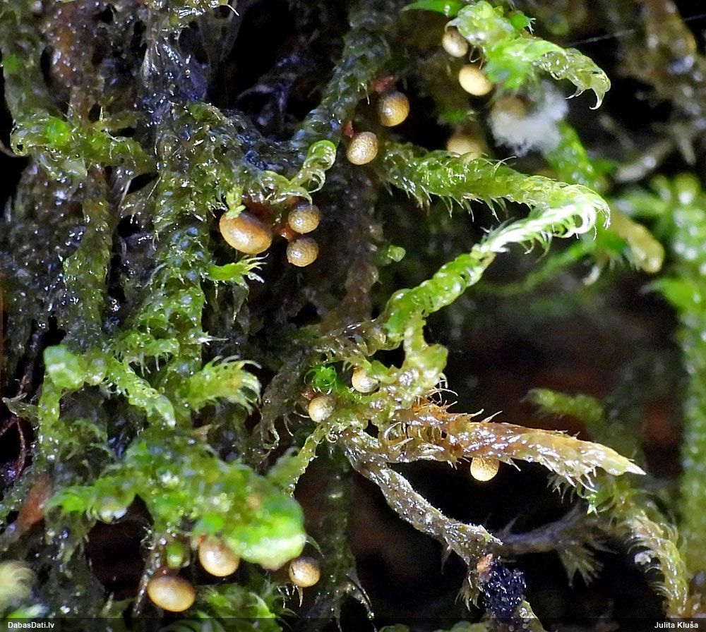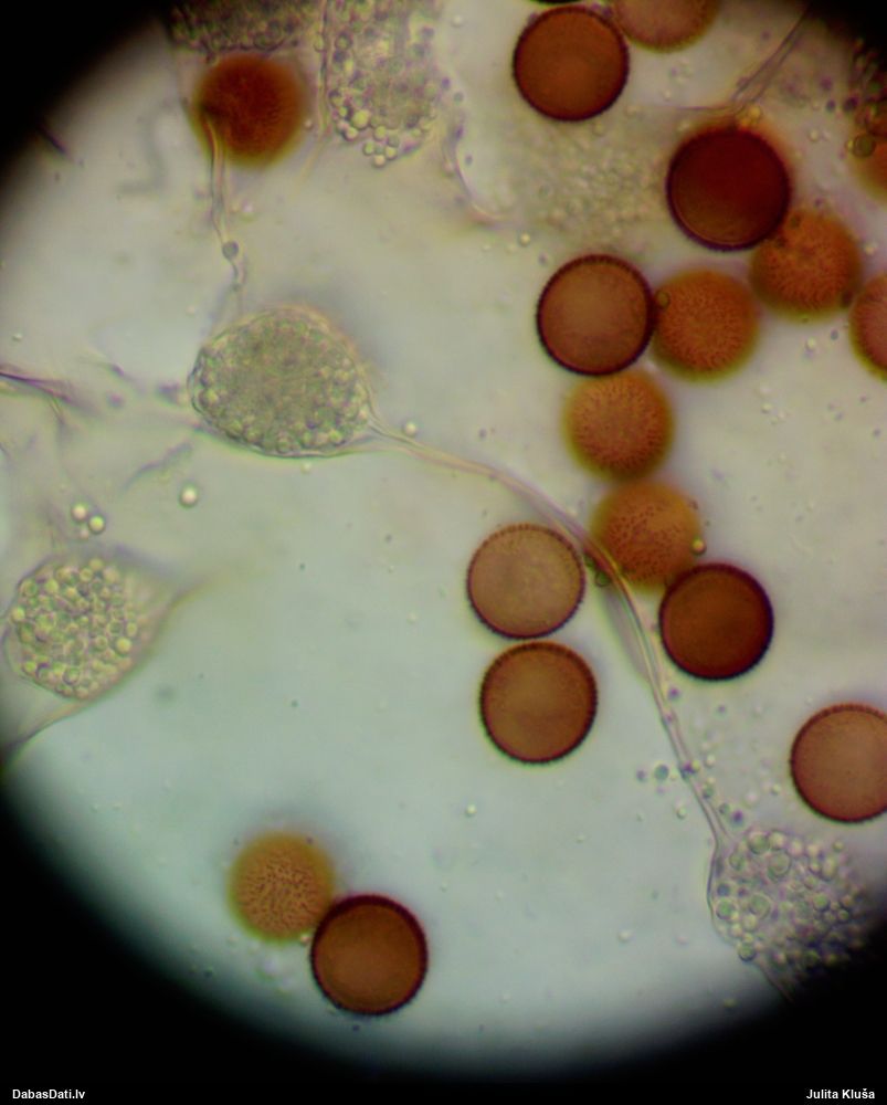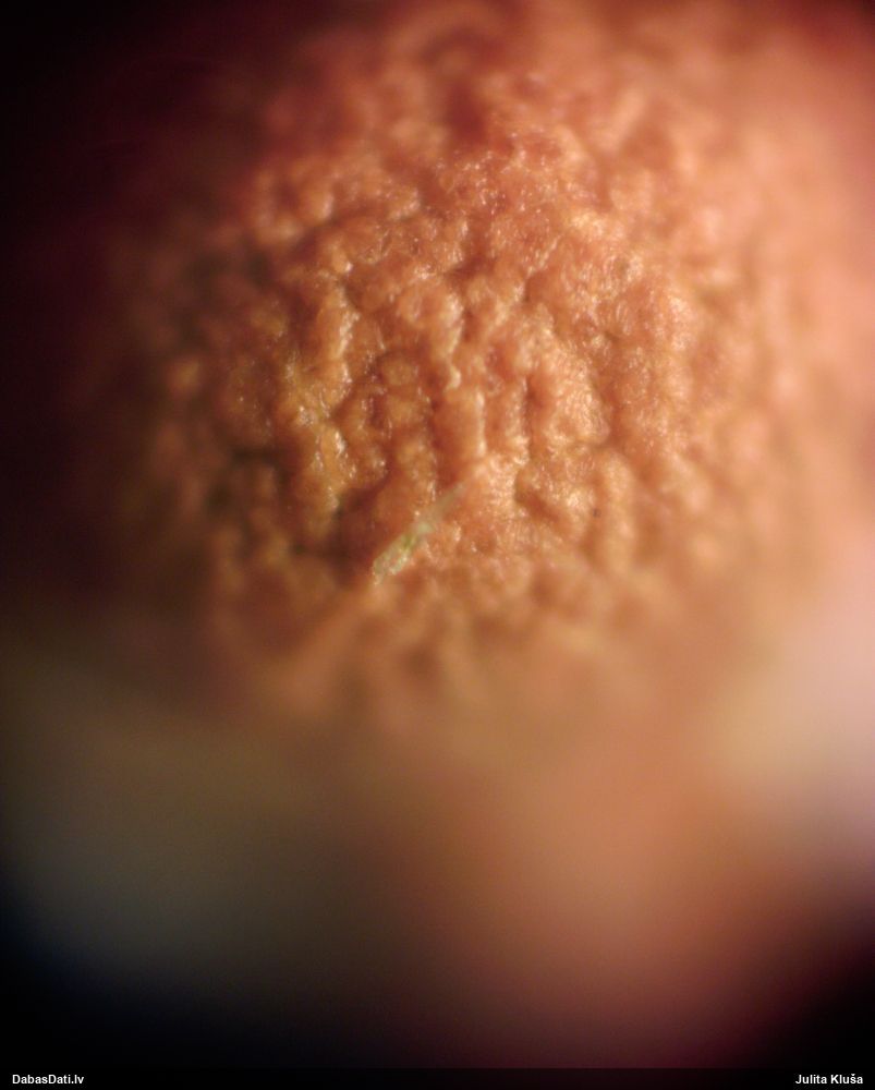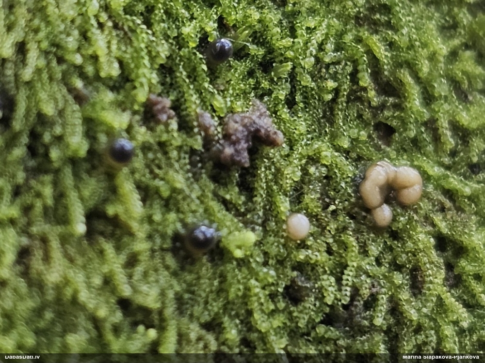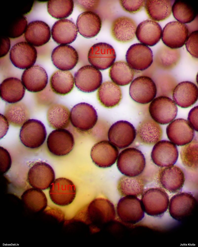 Paldies, Raivo! Ar acu gaišumu man arvien sliktāk, bet mikroskops palīdz. Jā, gribēju teikt, ka paraugam, ja vien nav kāda jutīga atradne, kurai drīkst ievākt tikai mazu gabaliņu, vērts ievākt lielāku gabalu, jo gļotsēnēm patīk kompānija. Un mikroskopa mazajos palielinājumos ar sānu papildus apgaismojumu ir vērts rūpīgi "izstaigāt" visu paraugu. Arī ķērpjus un interesantas sīksēnītes tā var atrast, ko dabā nepamanītu. Ar kriksītēm ir dažādi - pirmās es tā arī tikai citu sugu paraugos pamanīju, bet vēlāk redzēju arī dabā kriskīšu plantācijas - ja to ir daudz, tad var pamanīt jau dabā. Uz sūnām gan ir ekstrēms gadījums, dabā droši nepamanītu, arī eksemplāra noņemšana no sūnas nebija pārāk veiksmīga, tāpēc par noteikšanu mazliet šaubos (sporām mazliet cits tonis). Bet pagaidām citas hipotēzes nav (un konkrētā eksemplāra arī vairs ne).