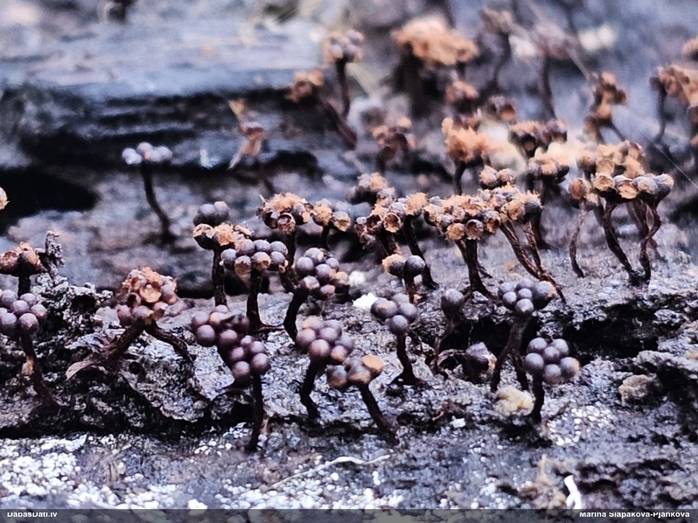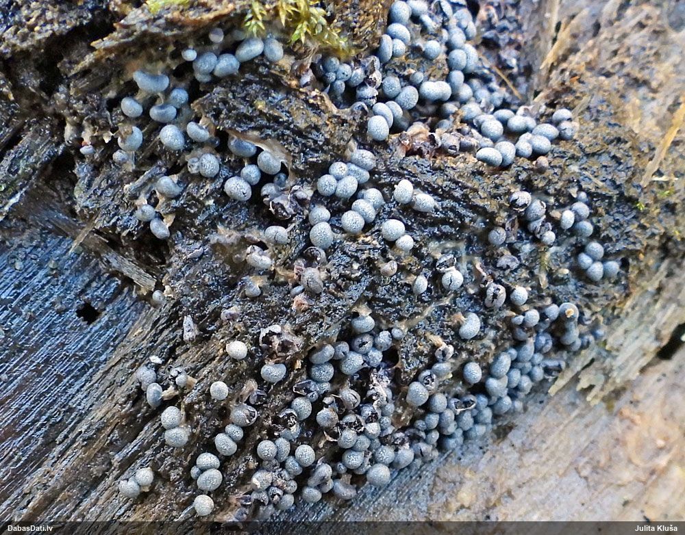 Skatoties uz nelīdzeno virsmu, var būt grubuļainais Fuligo luteonitens, bet droši to varētu pateikt mikroskopijā pēc sporām