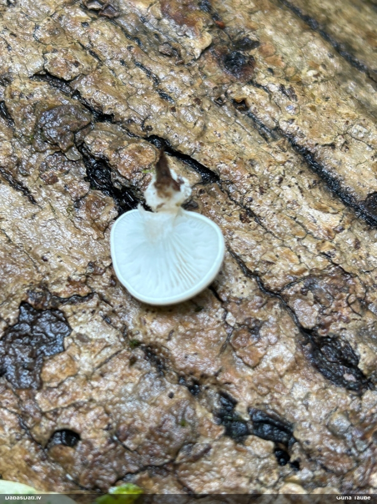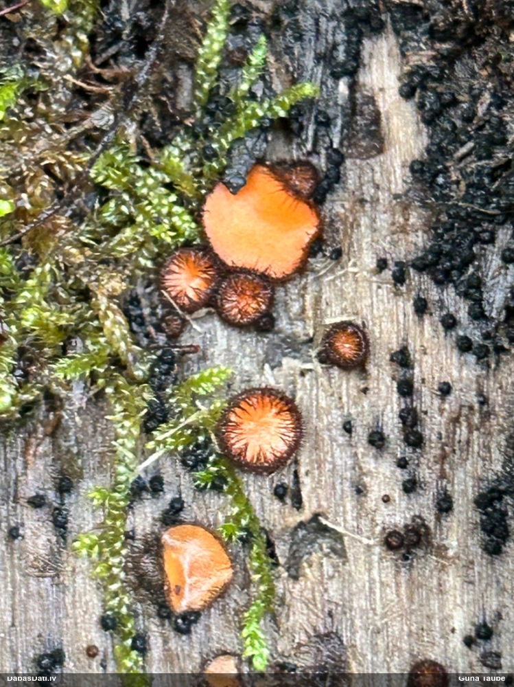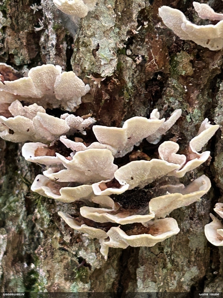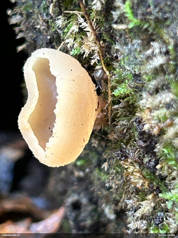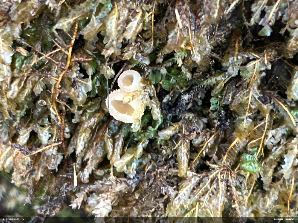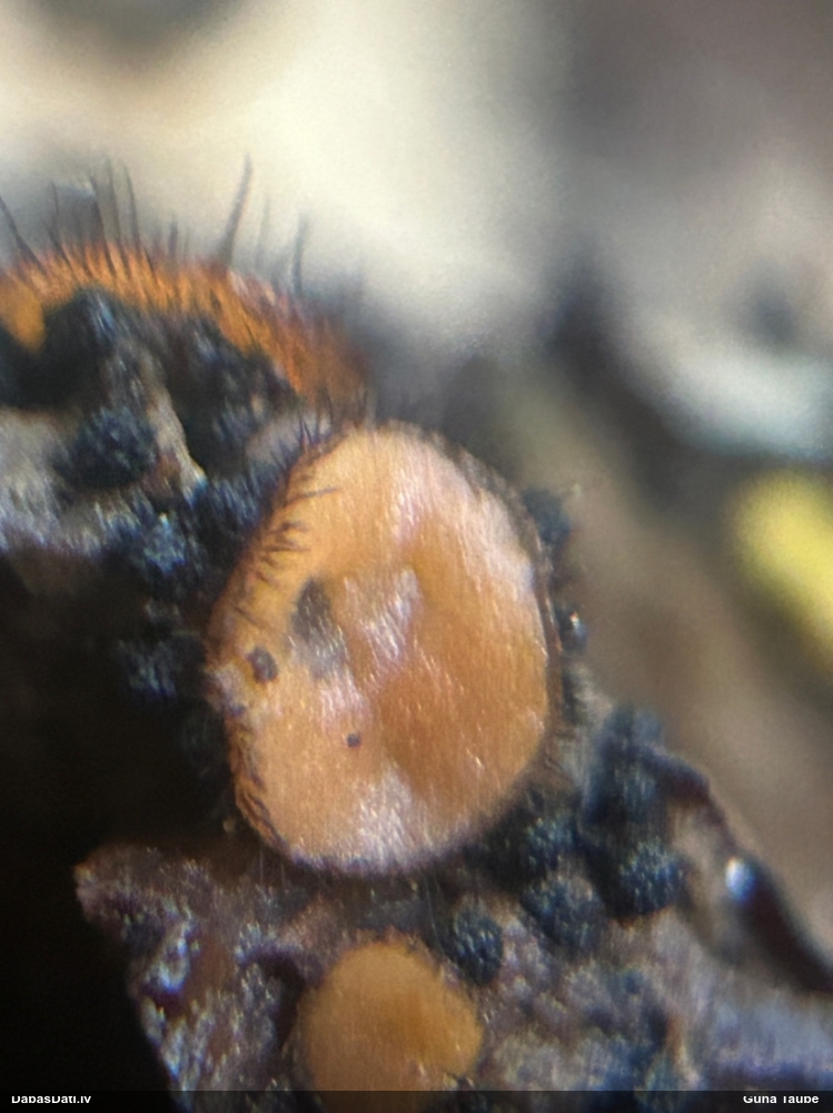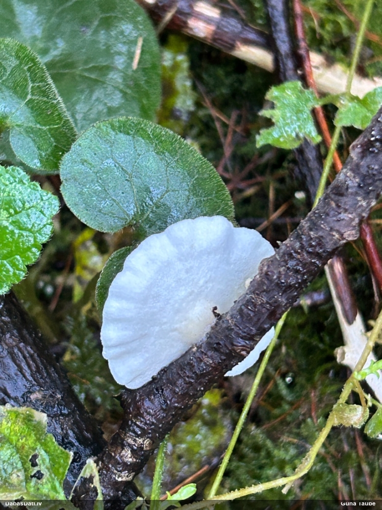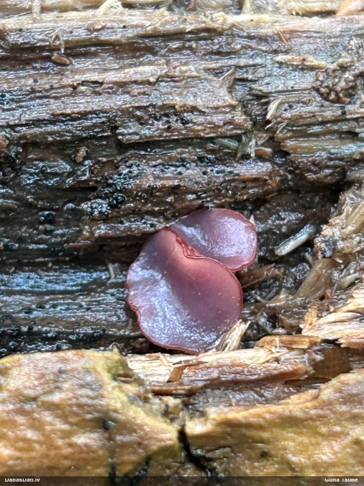 Nevar saprast, uz kā auga - vai tas ir nobirās, vai uz kritalas mizas? Abas hipotēzes ir "pa tēmu", bet man "nepatīk" kopskats, kur skaidri redzams, ka vairāki augļķermeņi ir cieši kopā, bet tas nav raksturīgs ne vienai, ne otrai hipotēzei, kur augļķermeņi tipiski ir nodalīti. Ļoti interesanti, ja ir paraugs, tad kāds tas izskatās tagad, un vispār to vajadzētu mikroskopēt.