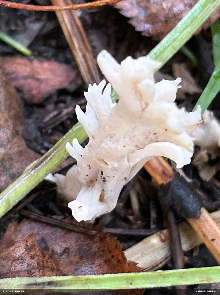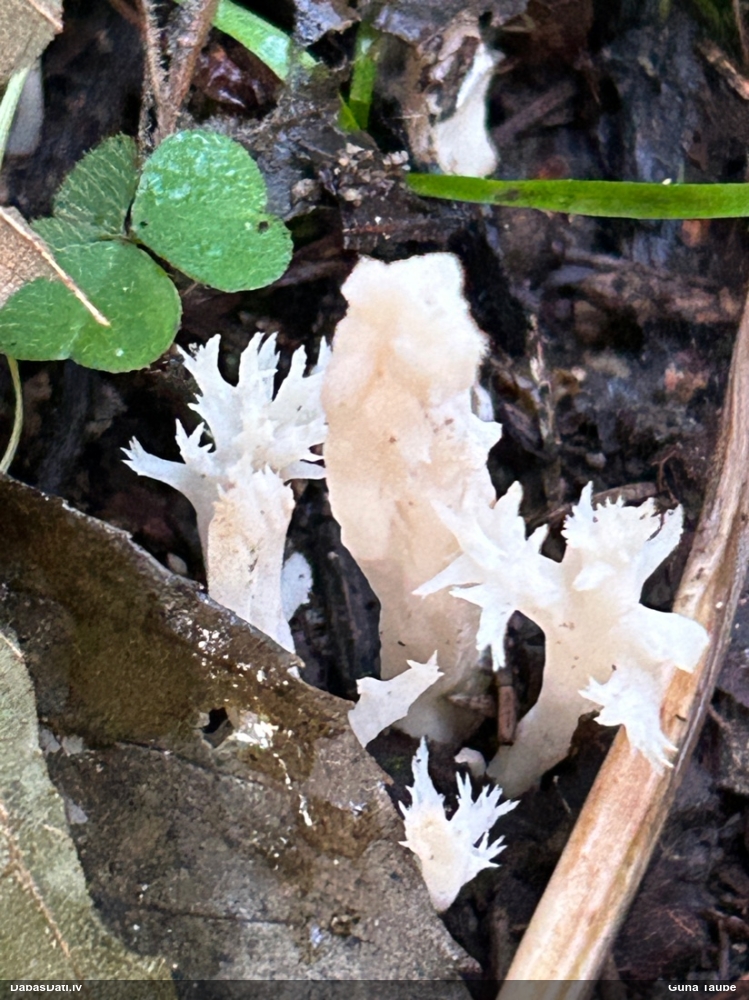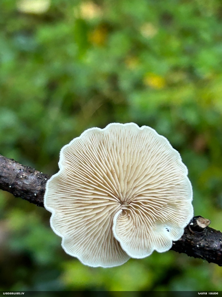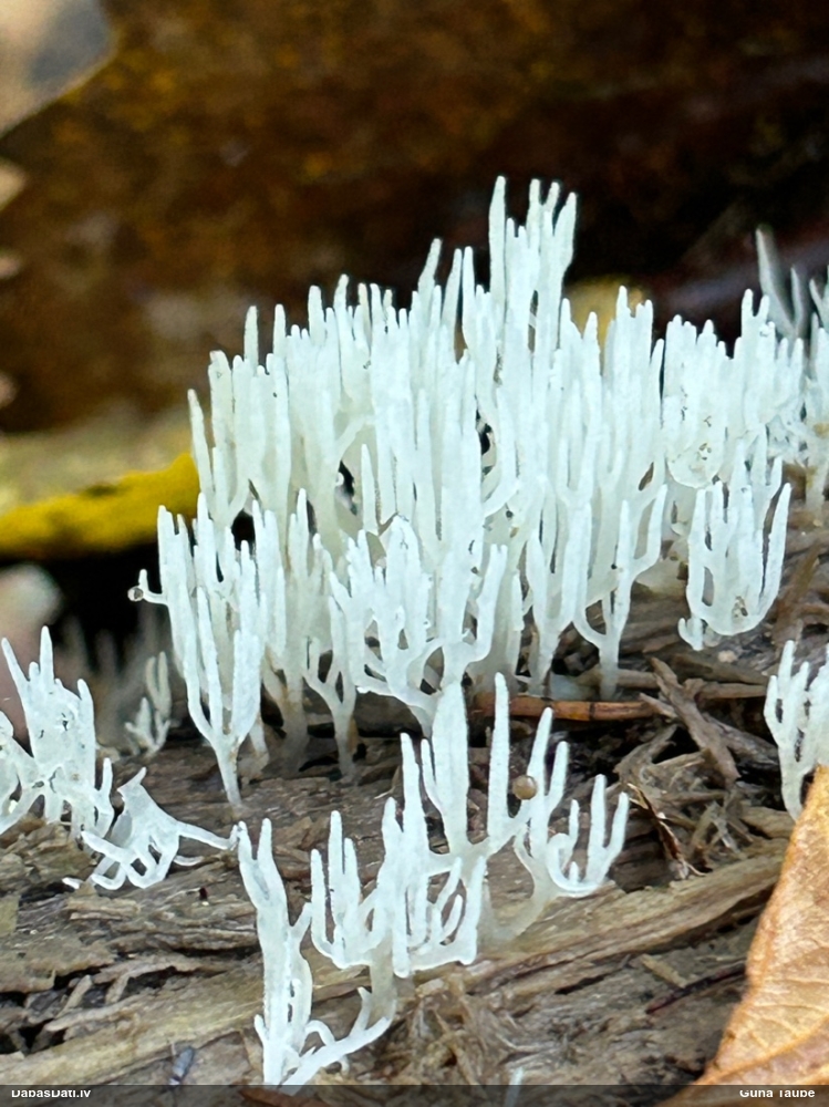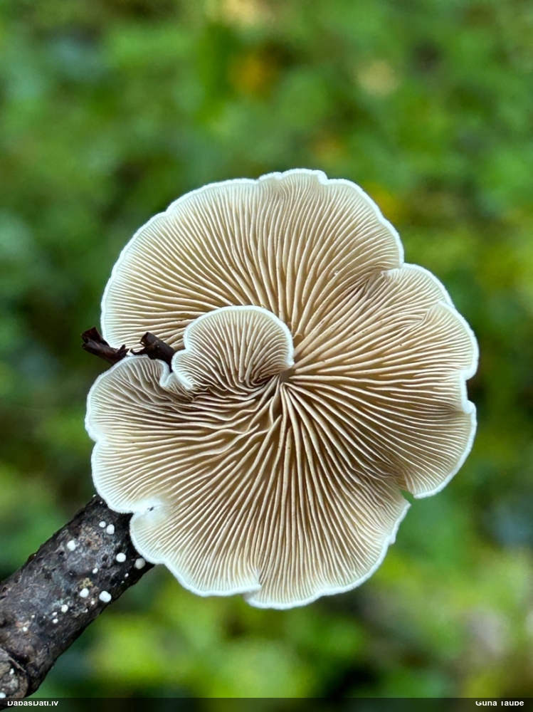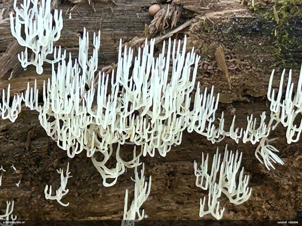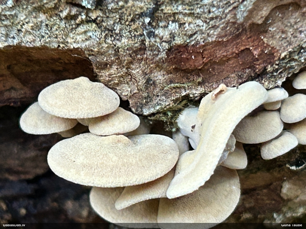 Nevar saprast, uz kā auga - vai tas ir nobirās, vai uz kritalas mizas? Abas hipotēzes ir "pa tēmu", bet man "nepatīk" kopskats, kur skaidri redzams, ka vairāki augļķermeņi ir cieši kopā, bet tas nav raksturīgs ne vienai, ne otrai hipotēzei, kur augļķermeņi tipiski ir nodalīti. Ļoti interesanti, ja ir paraugs, tad kāds tas izskatās tagad, un vispār to vajadzētu mikroskopēt.