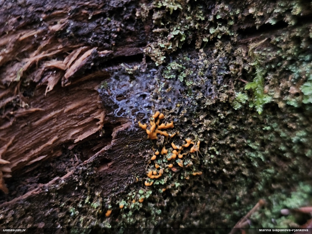 Domāju to Sorocybe resinae, ja tā, tad esmu soli tuvāk mērķim, nu zinu, kā izskatās un kur meklēt. Gļotsēnītes klāt gan nebija.