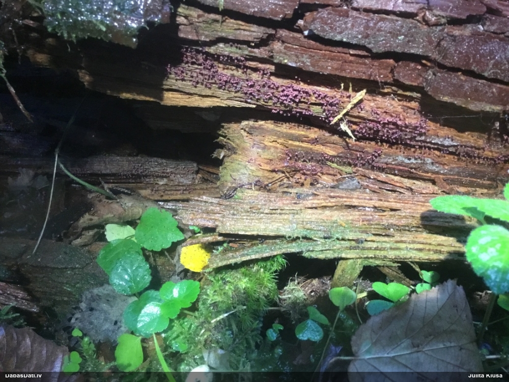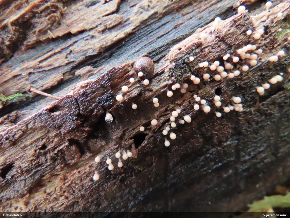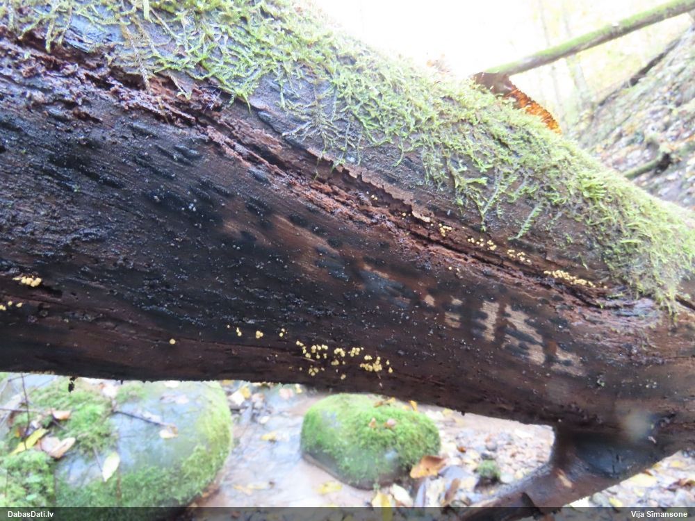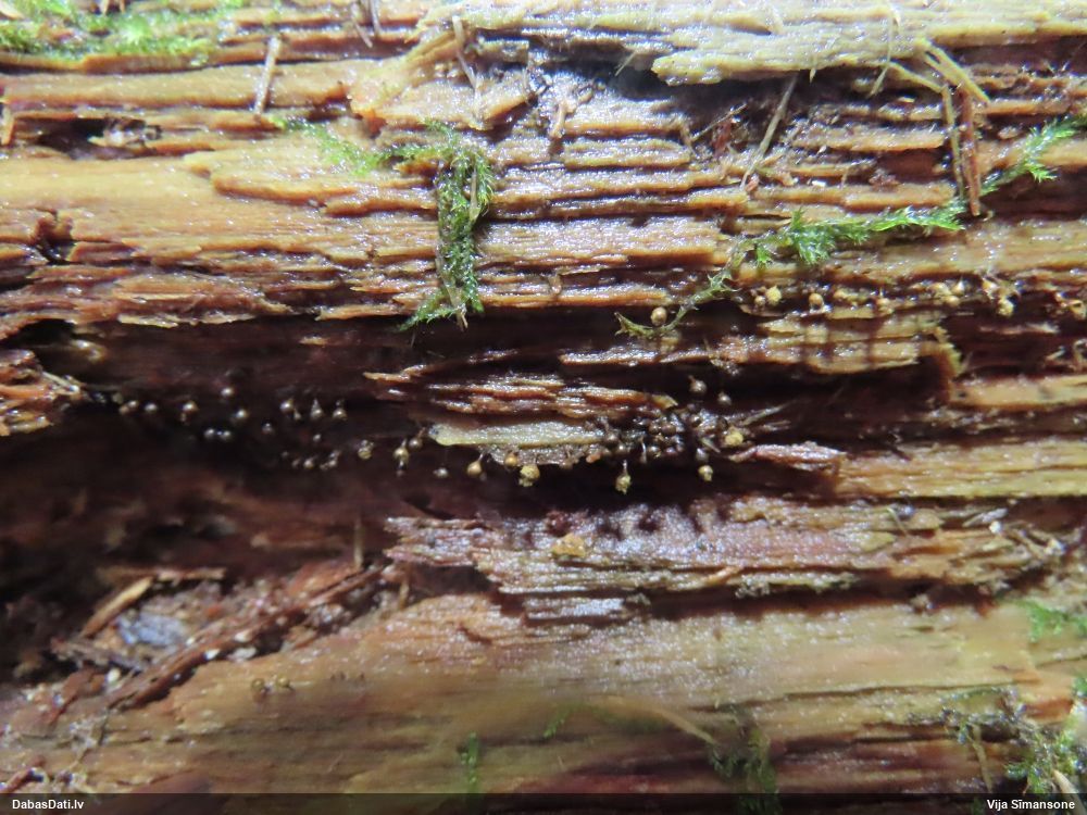 Domāju to Sorocybe resinae, ja tā, tad esmu soli tuvāk mērķim, nu zinu, kā izskatās un kur meklēt. Gļotsēnītes klāt gan nebija.