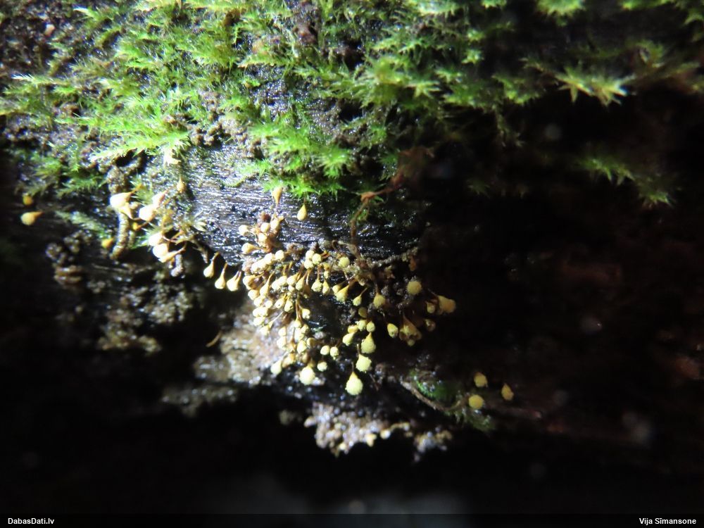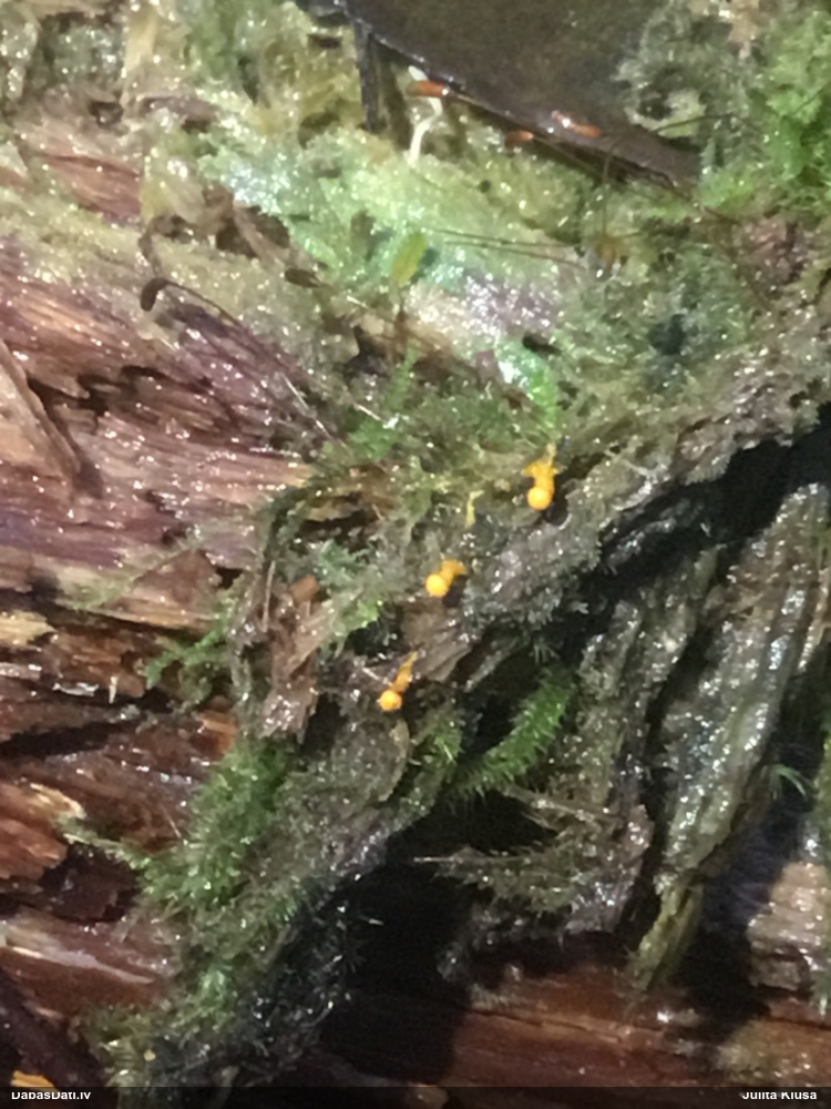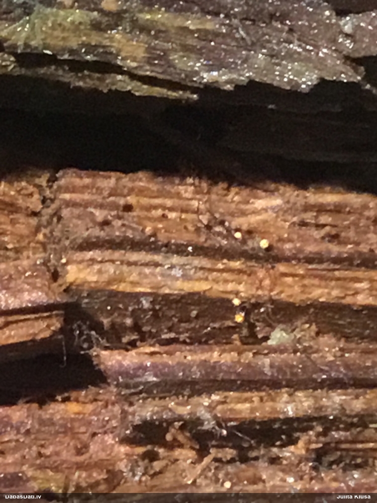 Julitas, šai paņemts paraugs, diezgan izsporojies. Un tai otrai līdzīgajai, kam ieziņots novērojums, arī. Pārliecinājos, ka tiešām egles kritalas. Bet tādu gļotsēņu diezgan daudz, vai uz katras egles kritalas, daudzās vietās stumbram, tagad dzeltenos sporu mākoņus labi redz.