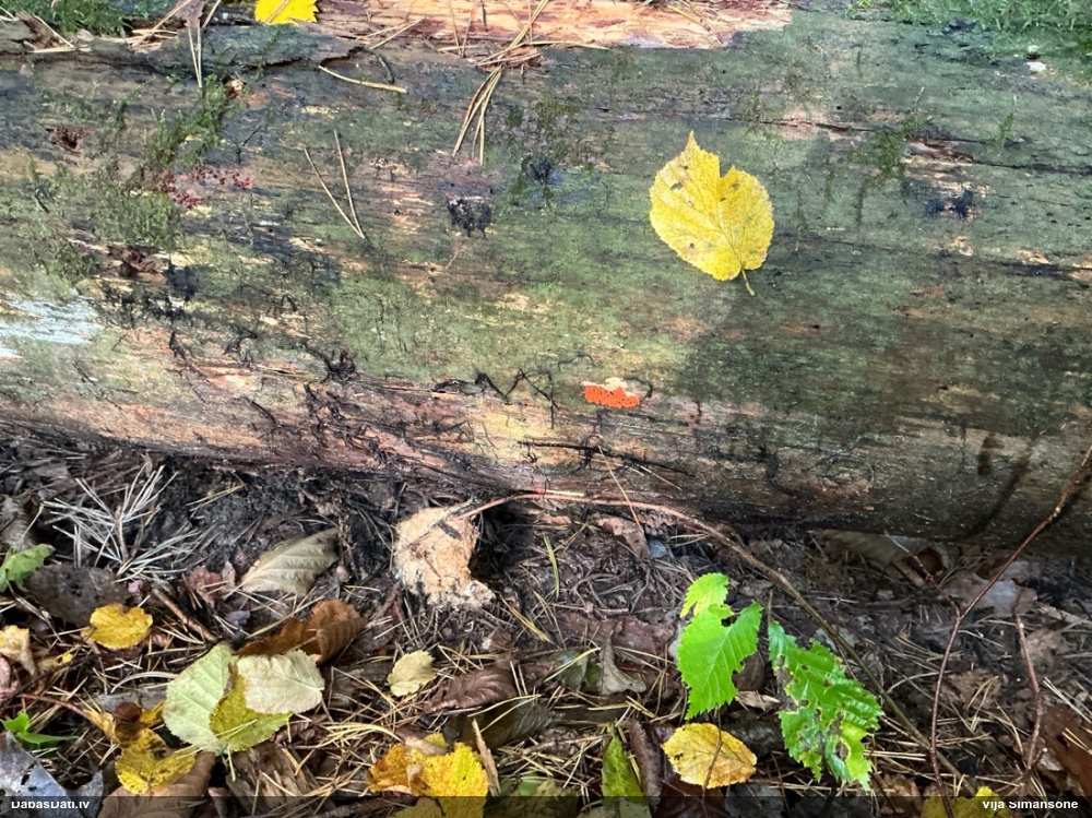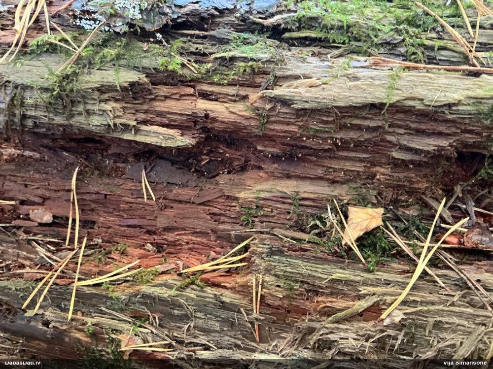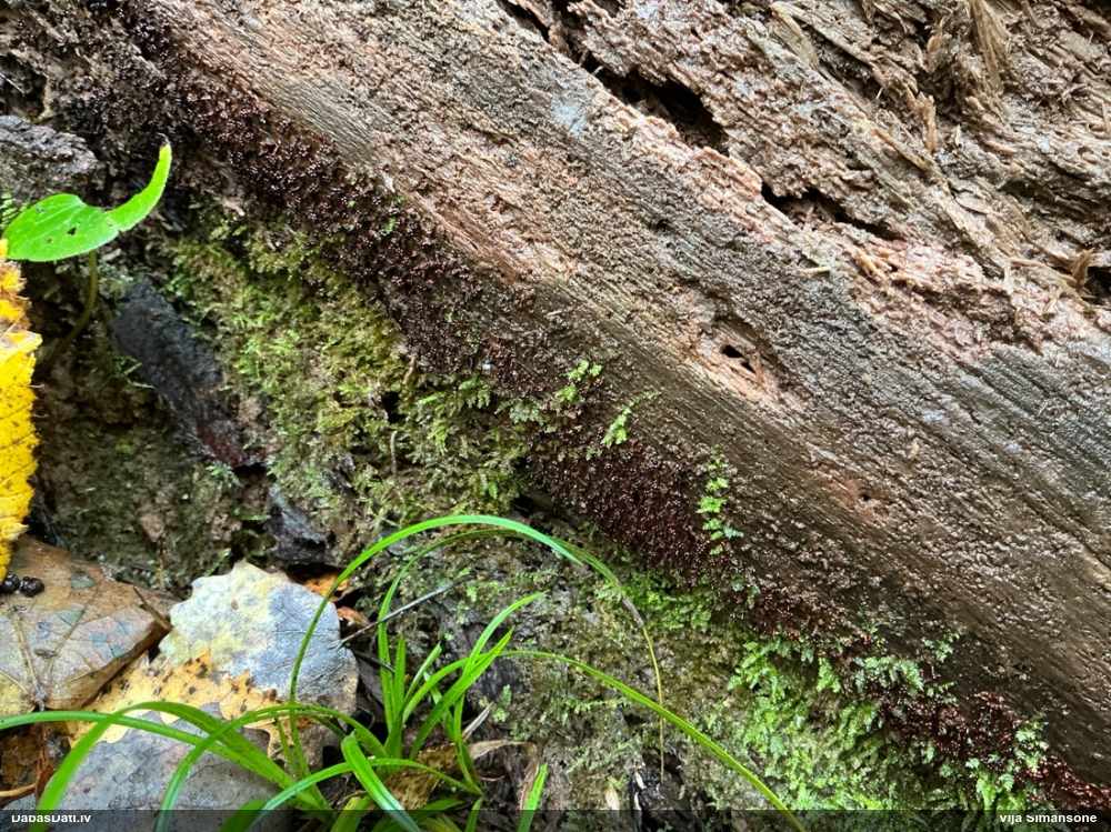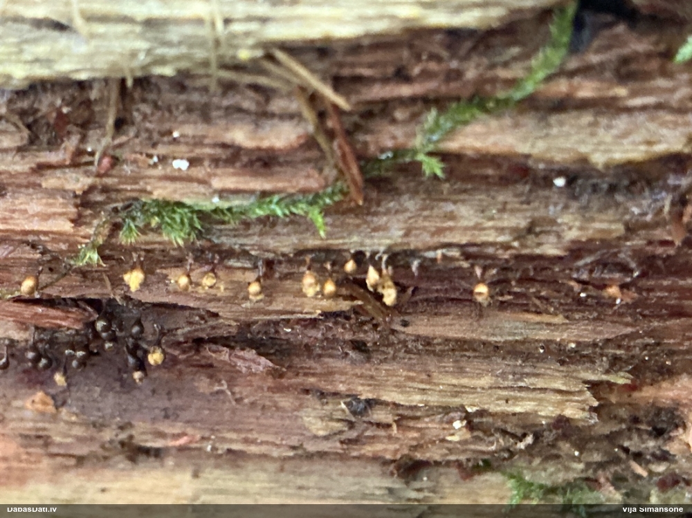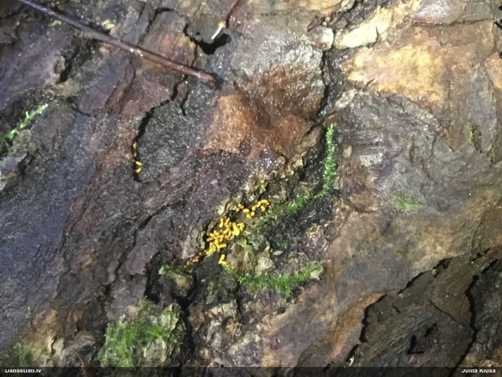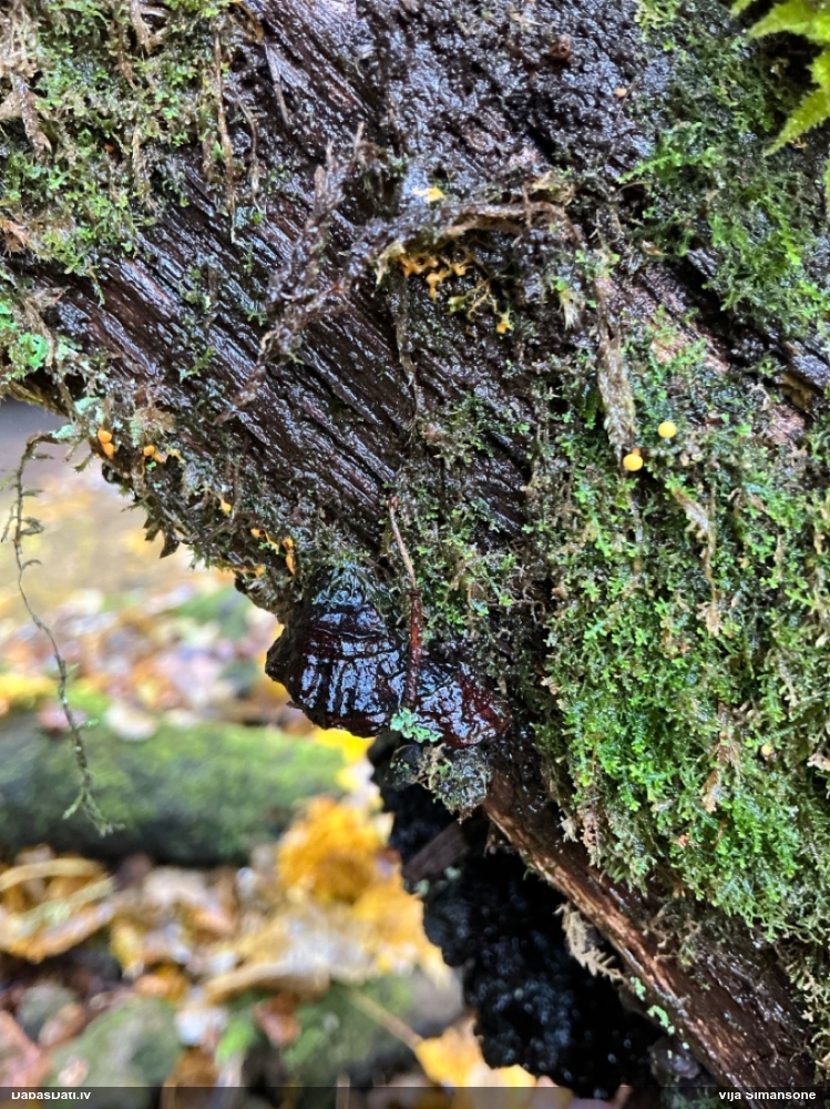 Domāju to Sorocybe resinae, ja tā, tad esmu soli tuvāk mērķim, nu zinu, kā izskatās un kur meklēt. Gļotsēnītes klāt gan nebija.