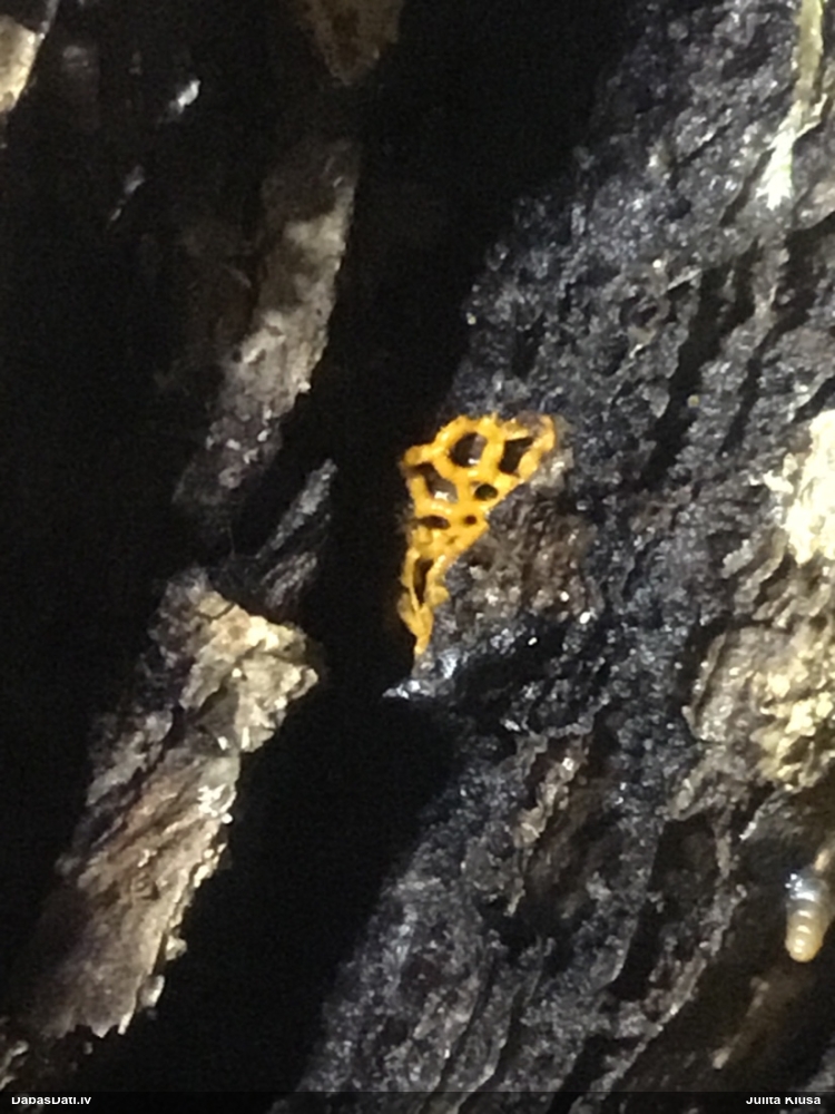 Kaut kāda kūniņa, bet grūti saprast - jāredz tuvāk. Katrā ziņā ne tīkllapsenes kūniņa. Kur atradās? Zem mizas?