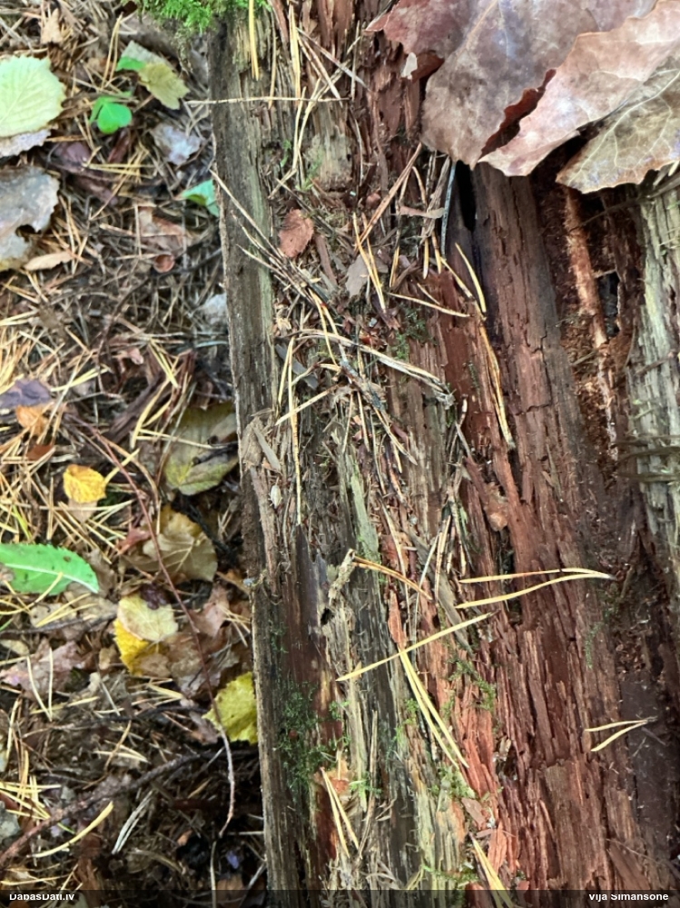 Jā, zem mizas uz nokaltušas priedes.