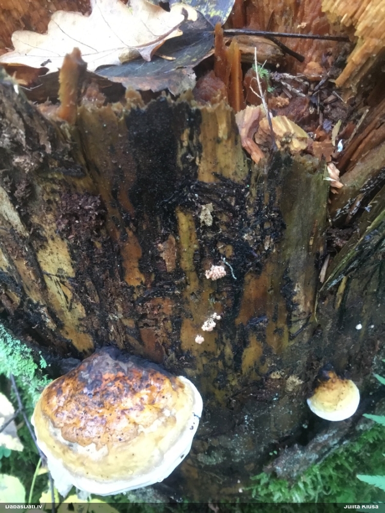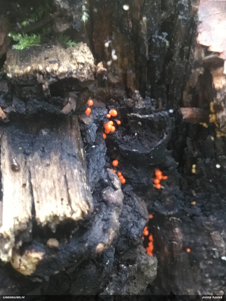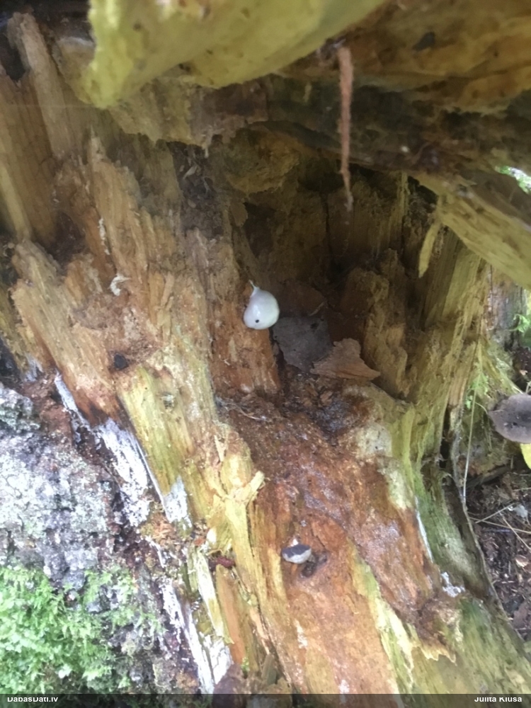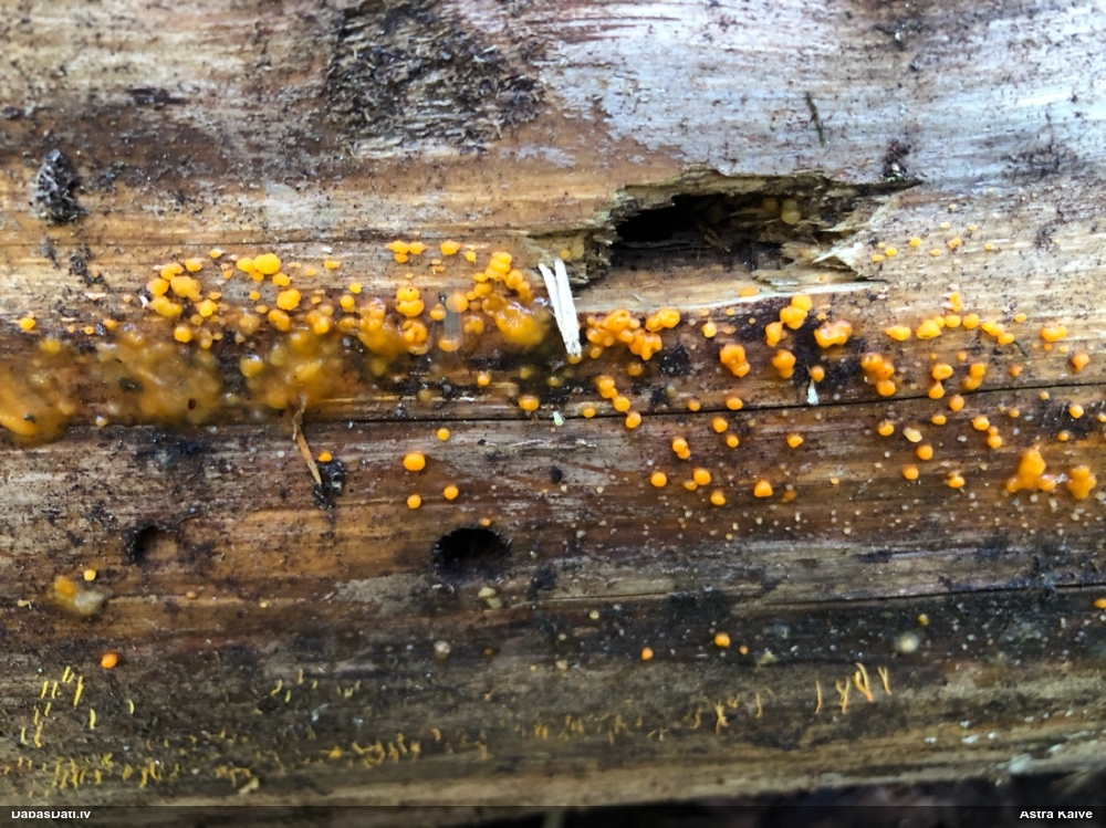 Domāju to Sorocybe resinae, ja tā, tad esmu soli tuvāk mērķim, nu zinu, kā izskatās un kur meklēt. Gļotsēnītes klāt gan nebija.