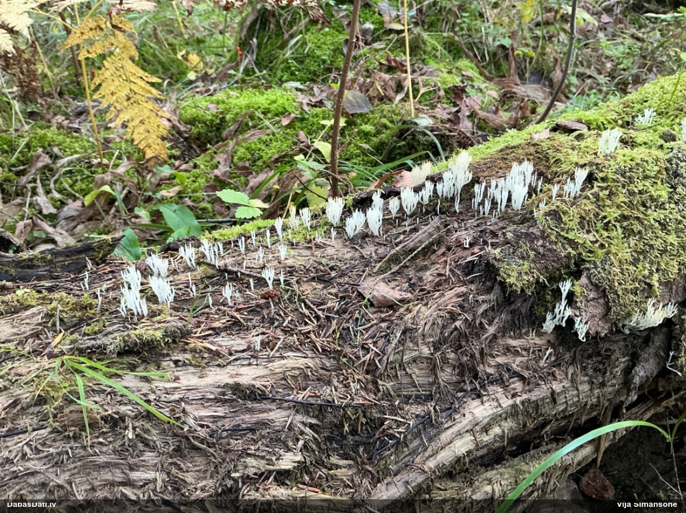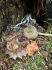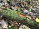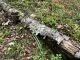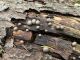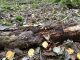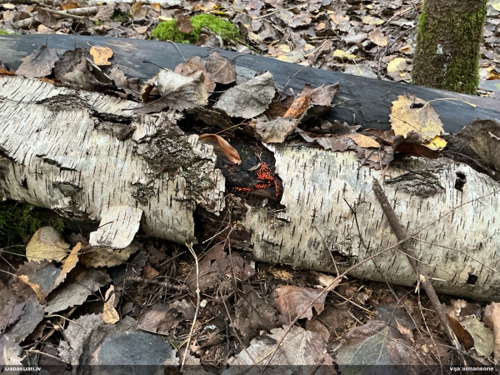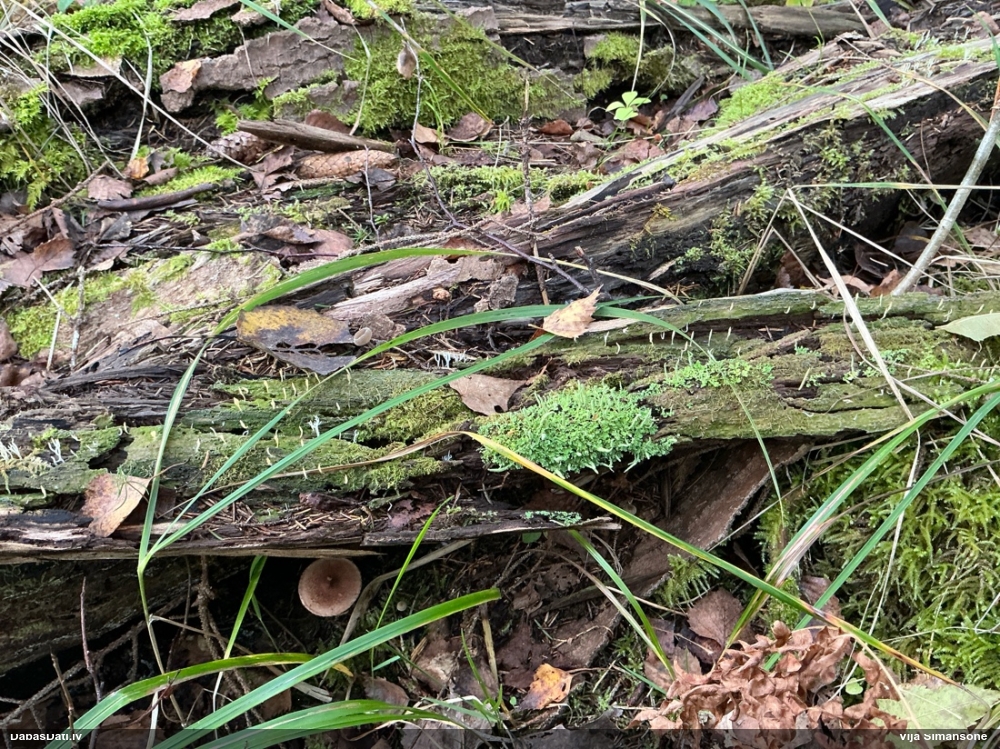 Satrūdējusi kritala mežā, nav dēļi. Iespējams, egle, jauktu koku mežs.