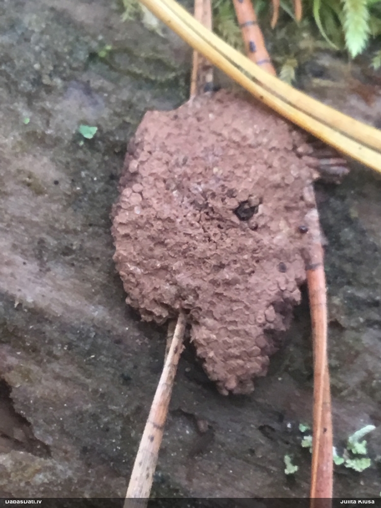 Kaut kāda kūniņa, bet grūti saprast - jāredz tuvāk. Katrā ziņā ne tīkllapsenes kūniņa. Kur atradās? Zem mizas?