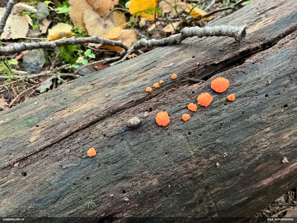 Šobrīd divas versijas - Physarum psittacinum un P.braunianum. Bez paraudziņa te skaidrīzā netiks, bet biotops interesants