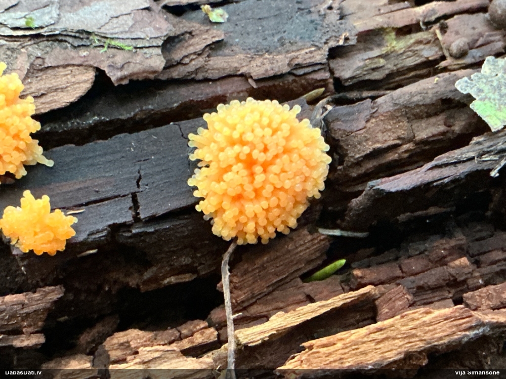 Jā, varbūt zeltmatu Physarum flavicomum