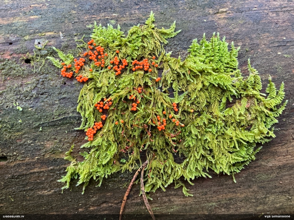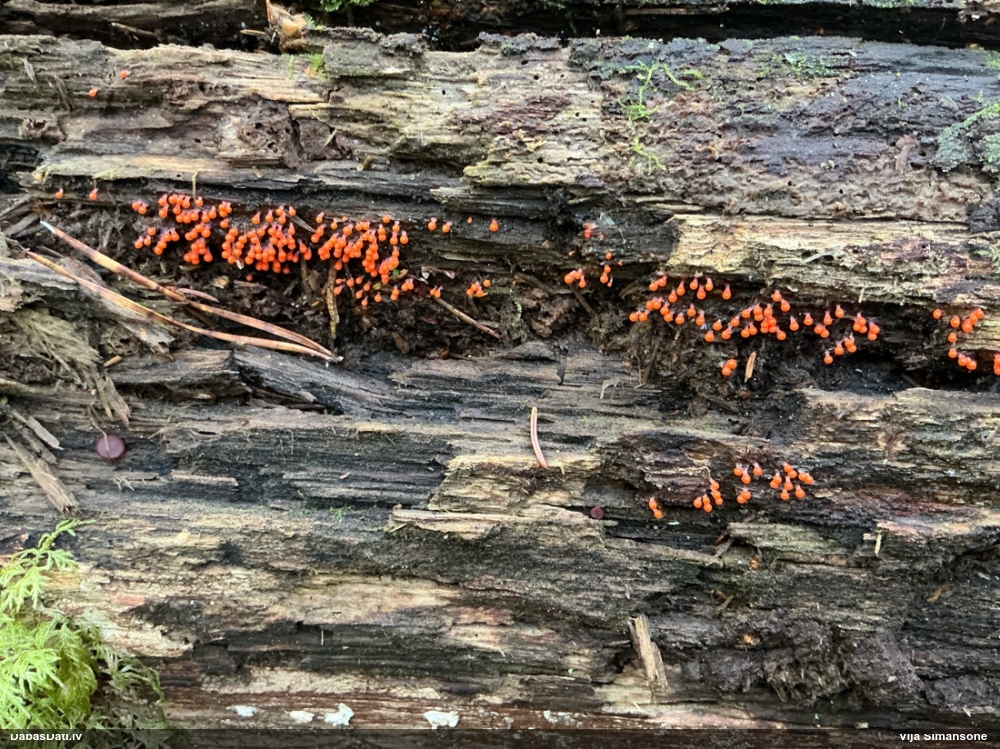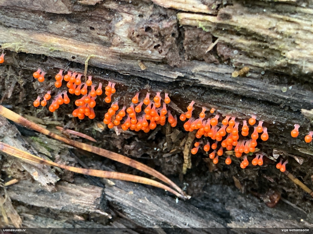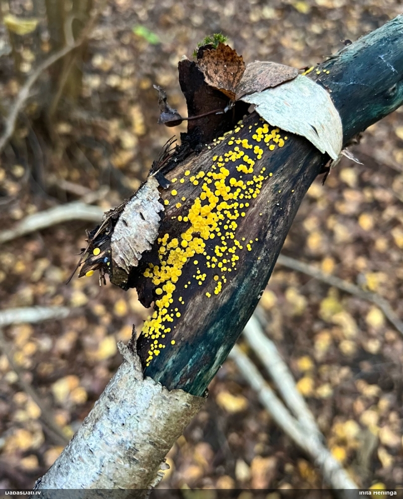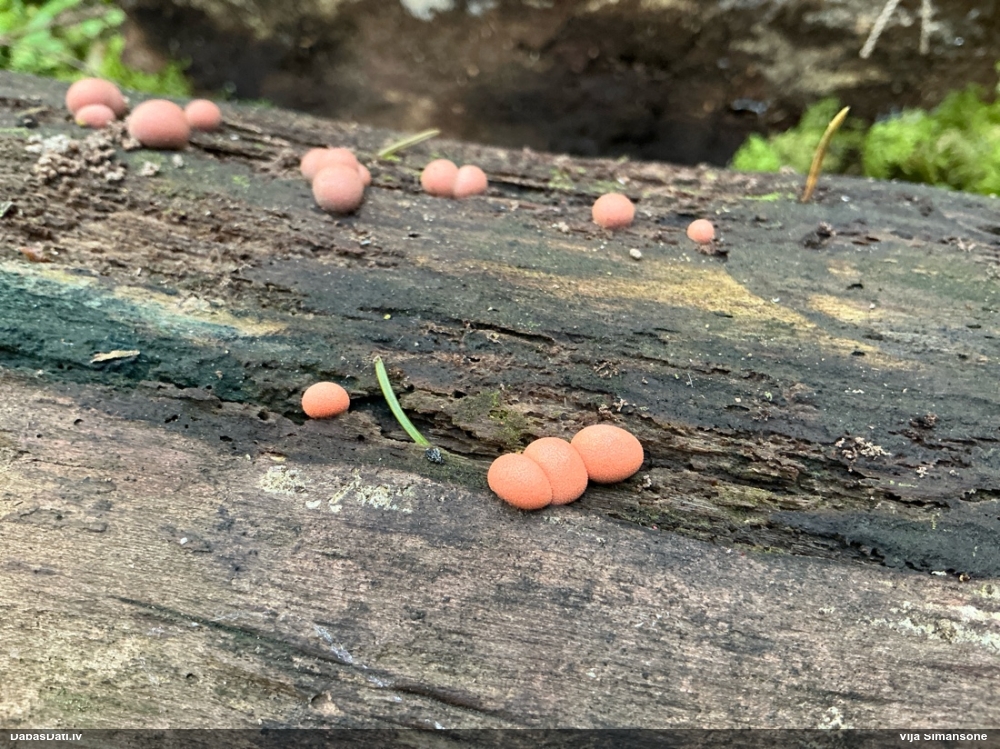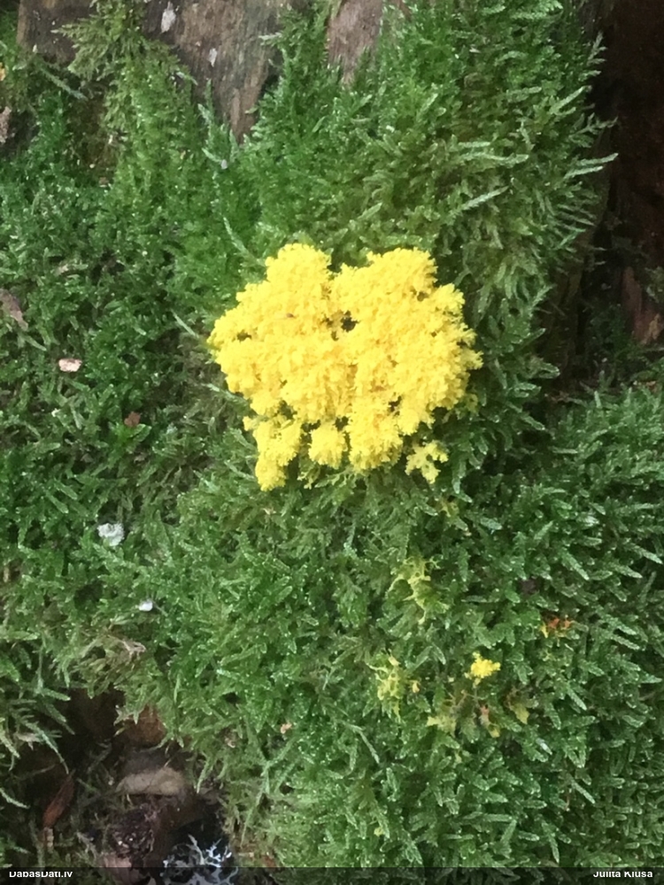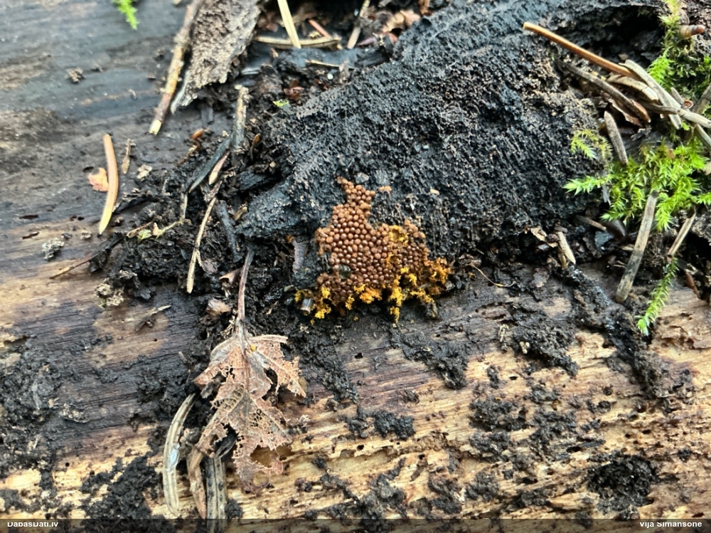 Šobrīd divas versijas - Physarum psittacinum un P.braunianum. Bez paraudziņa te skaidrīzā netiks, bet biotops interesants