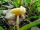 Man pēkšņi radās ideja - vai tur bija nu ļoti mitrs mikroklimats, egle ar melnalksni? Hipotētiski tādas dzeltenas var būt Diachea muscorum. Te bilde ir mazliet līdzīga: https://fr.wikipedia.org/wiki/Fichier:Craterium_muscorum,_Trawscoed,_North_Wales,_Aug_2016_-_Flickr_-_janetgraham84.jpg