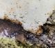Šobrīd varu iedomāties 2 variantus - melnā plaispika Amaurochaete atra vai parastais gļotpūpēdis Reticularia lycoperdon. Pēc izmēra, augšanas laika un augšanas uz apstrādāta koka atbilst abas.