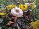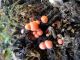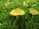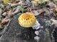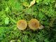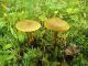 Man pēkšņi radās ideja - vai tur bija nu ļoti mitrs mikroklimats, egle ar melnalksni? Hipotētiski tādas dzeltenas var būt Diachea muscorum. Te bilde ir mazliet līdzīga: https://fr.wikipedia.org/wiki/Fichier:Craterium_muscorum,_Trawscoed,_North_Wales,_Aug_2016_-_Flickr_-_janetgraham84.jpg