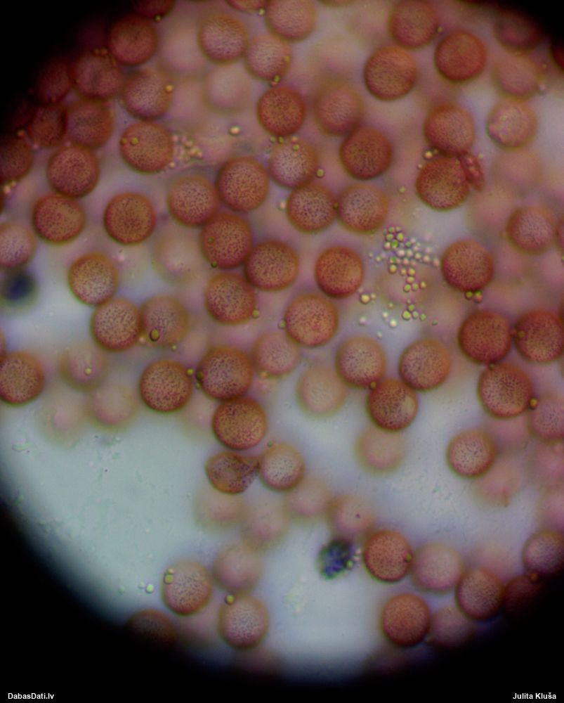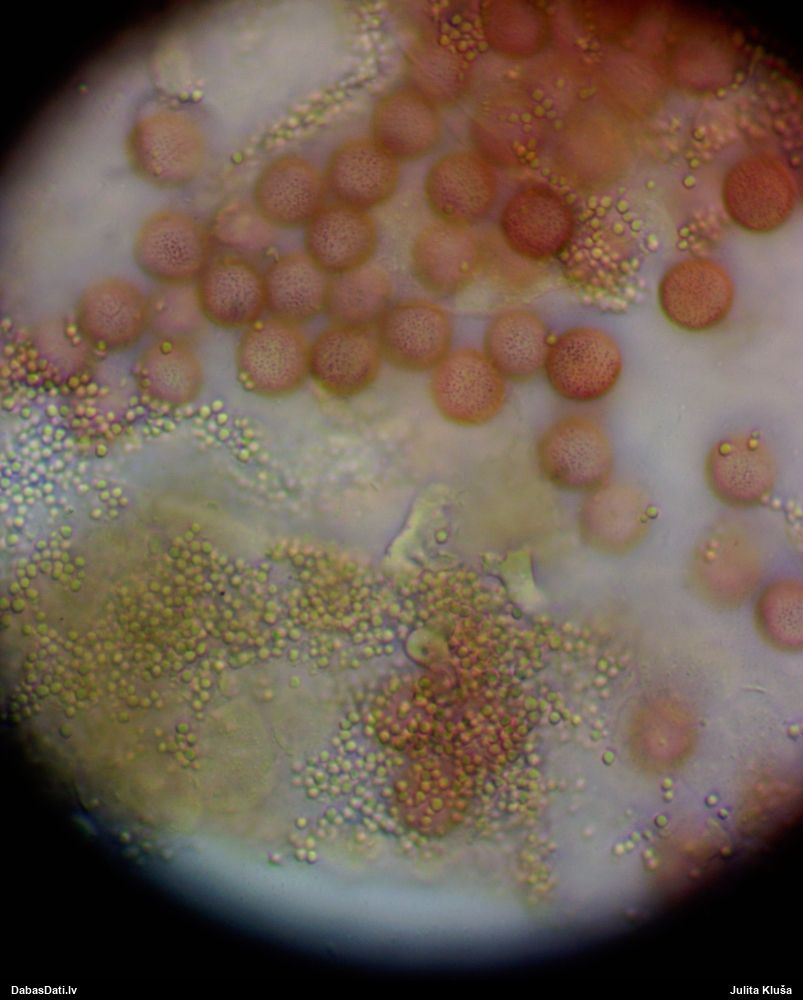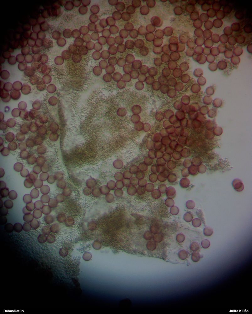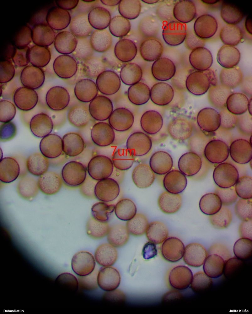 Sporas izskatās ļoti gaišas, varbūt nenobriedušas. Es laikam pēc kāda laiciņa mēģinātu vēlreiz mikroskopēt. Tajā pašā laikā sporu izmēri priekš T.contorta ir pamazi (ja tipiski ir 11-14 mkm, te ir knapi 11 mkm)