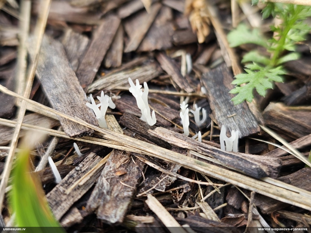 Vai tik nebūs medainā bumbulīte? Augļķermeņi vertikāli izstiepti, sporu mākonis ciešā klājienā.