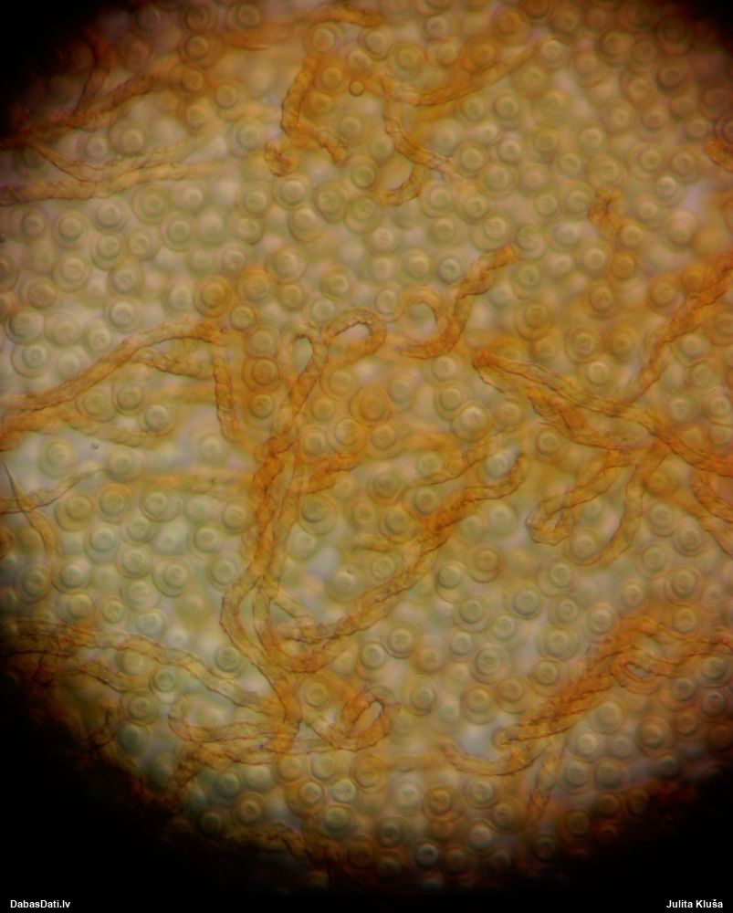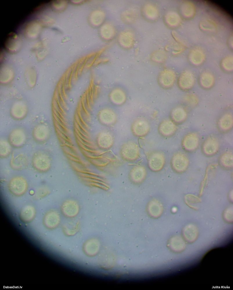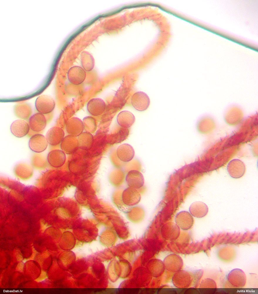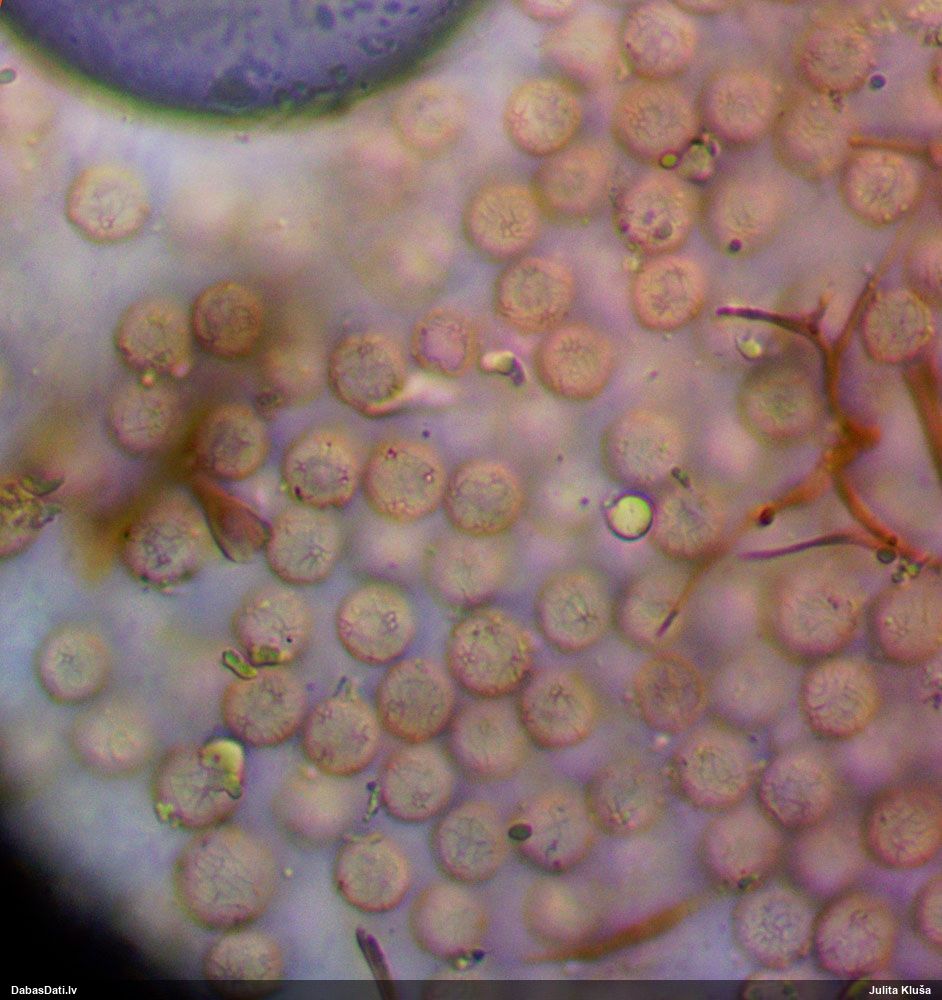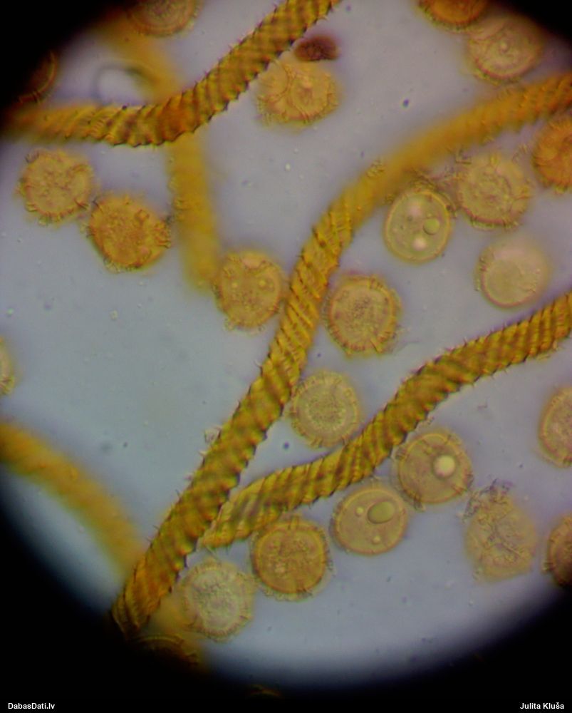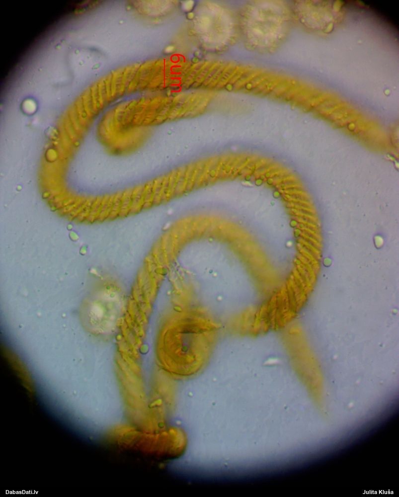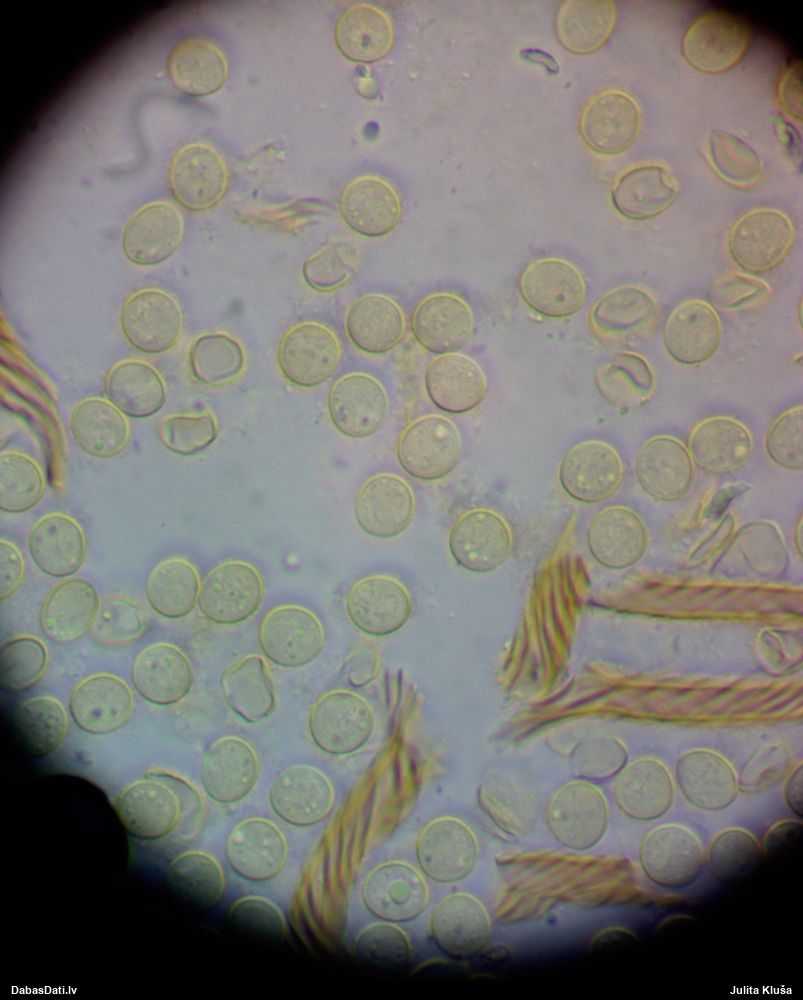 Sporas izskatās ļoti gaišas, varbūt nenobriedušas. Es laikam pēc kāda laiciņa mēģinātu vēlreiz mikroskopēt. Tajā pašā laikā sporu izmēri priekš T.contorta ir pamazi (ja tipiski ir 11-14 mkm, te ir knapi 11 mkm)